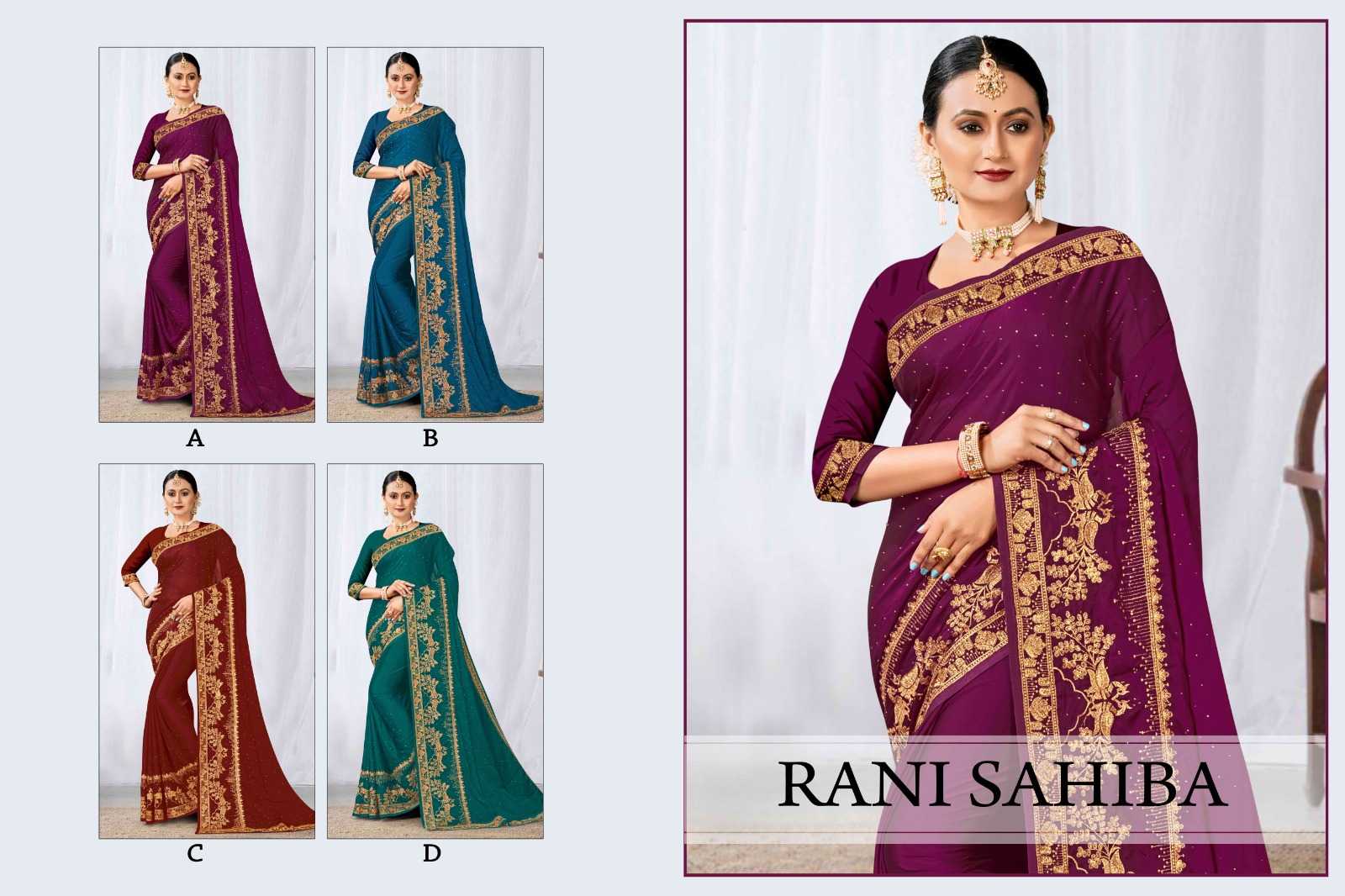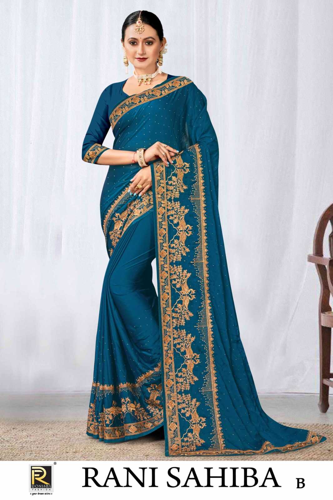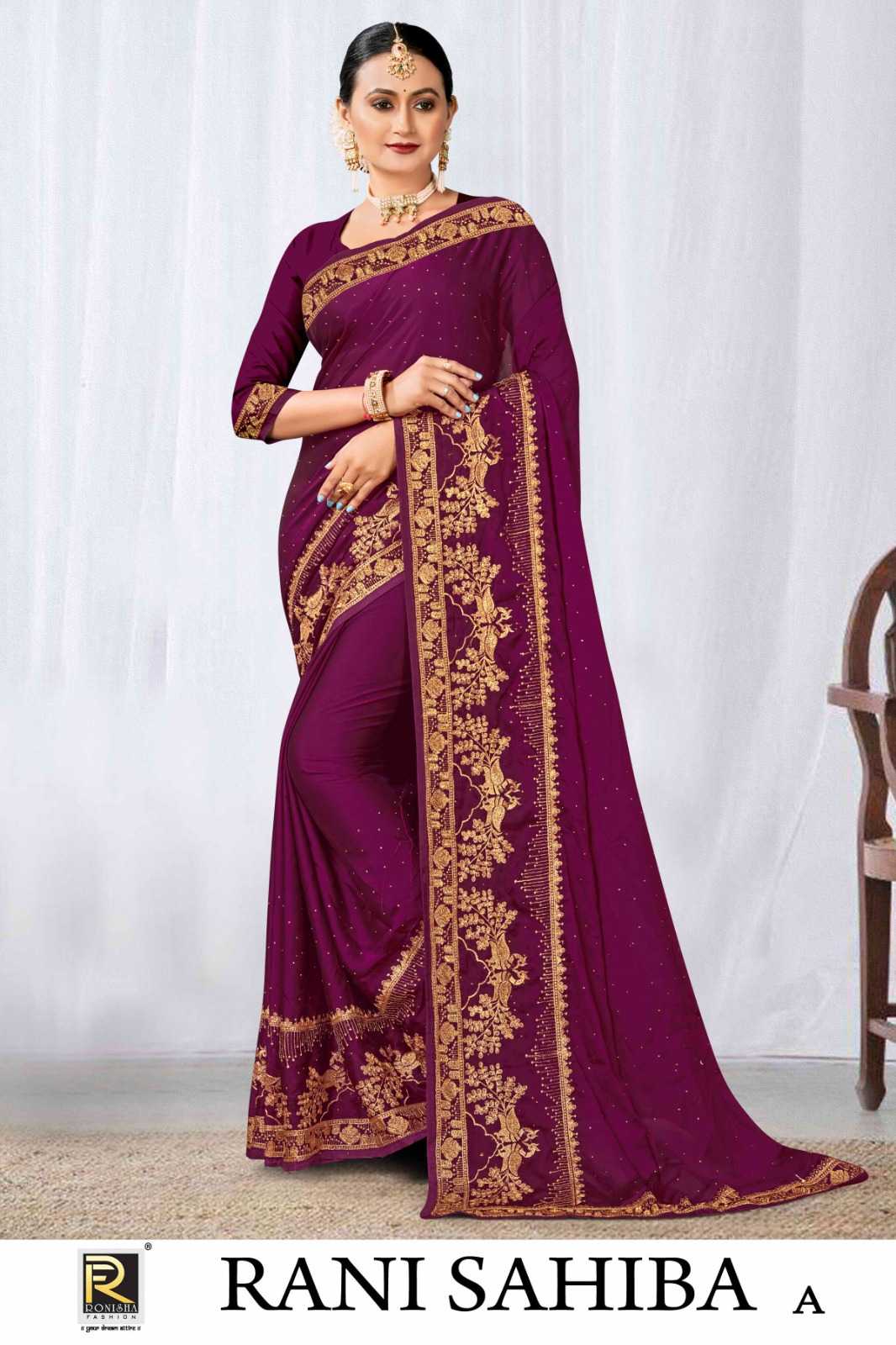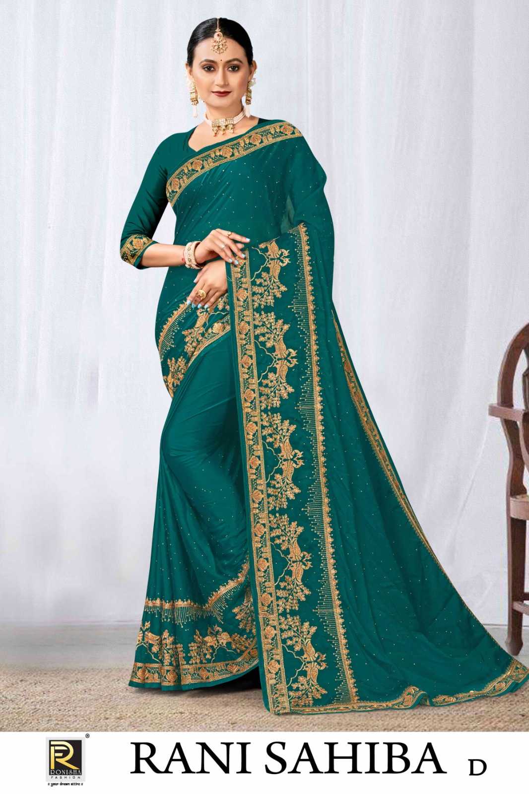 RANI SAHIBA BY RANJNA SAREE FANCY FABRICS EMBROIDERY BORDER SIROSKI WORK SUPER HIT COLLECTION