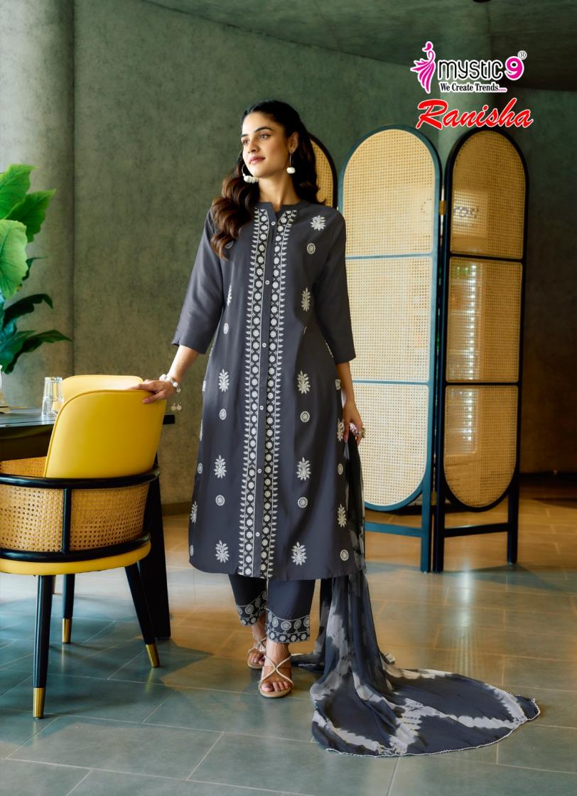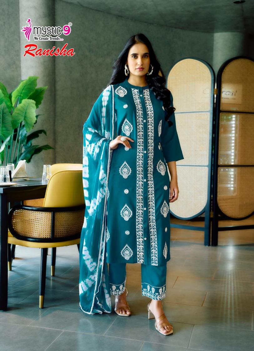 ranisha vol 1 by mystic9 dyed rayon readymade classic salwar kameez