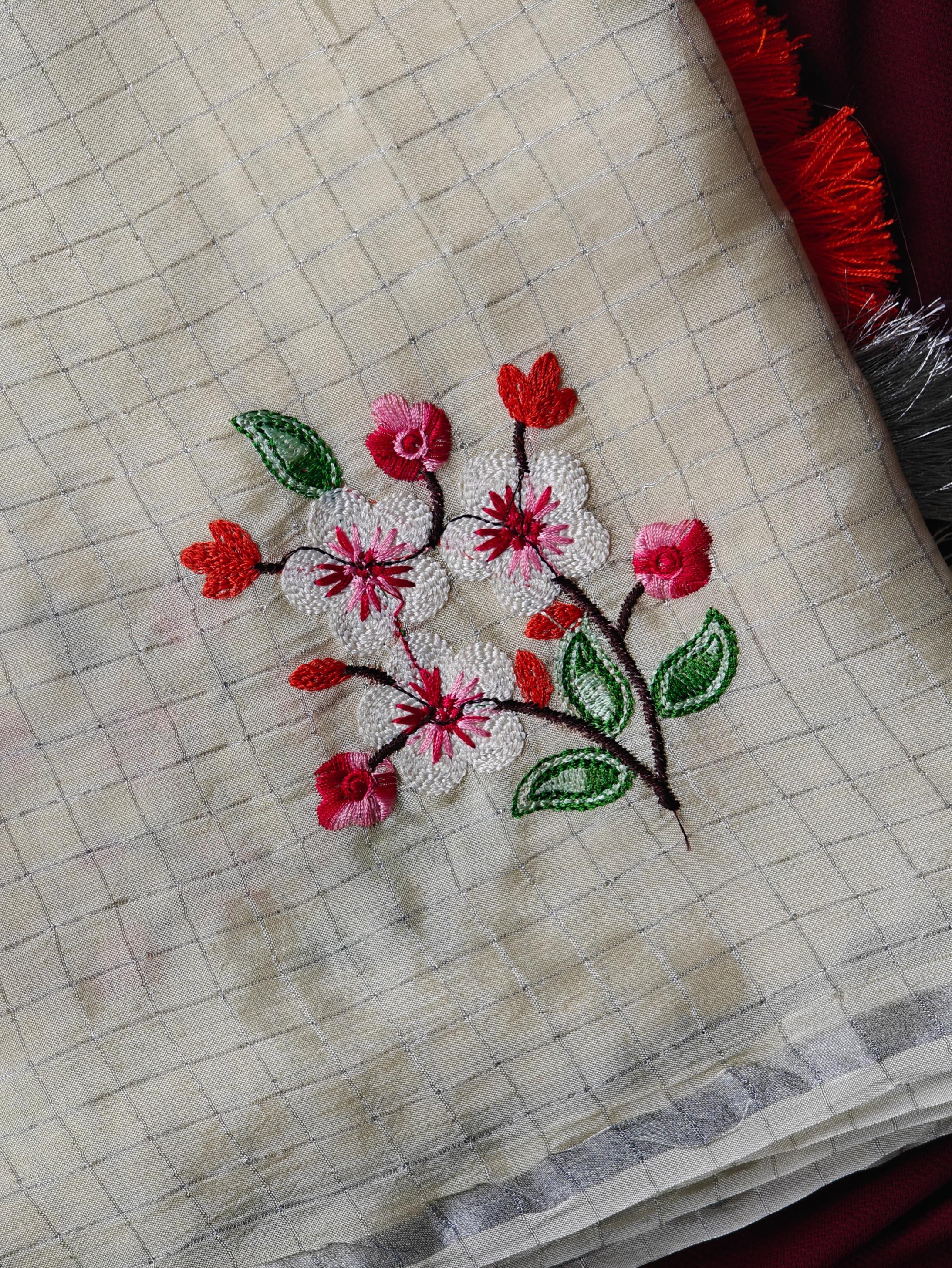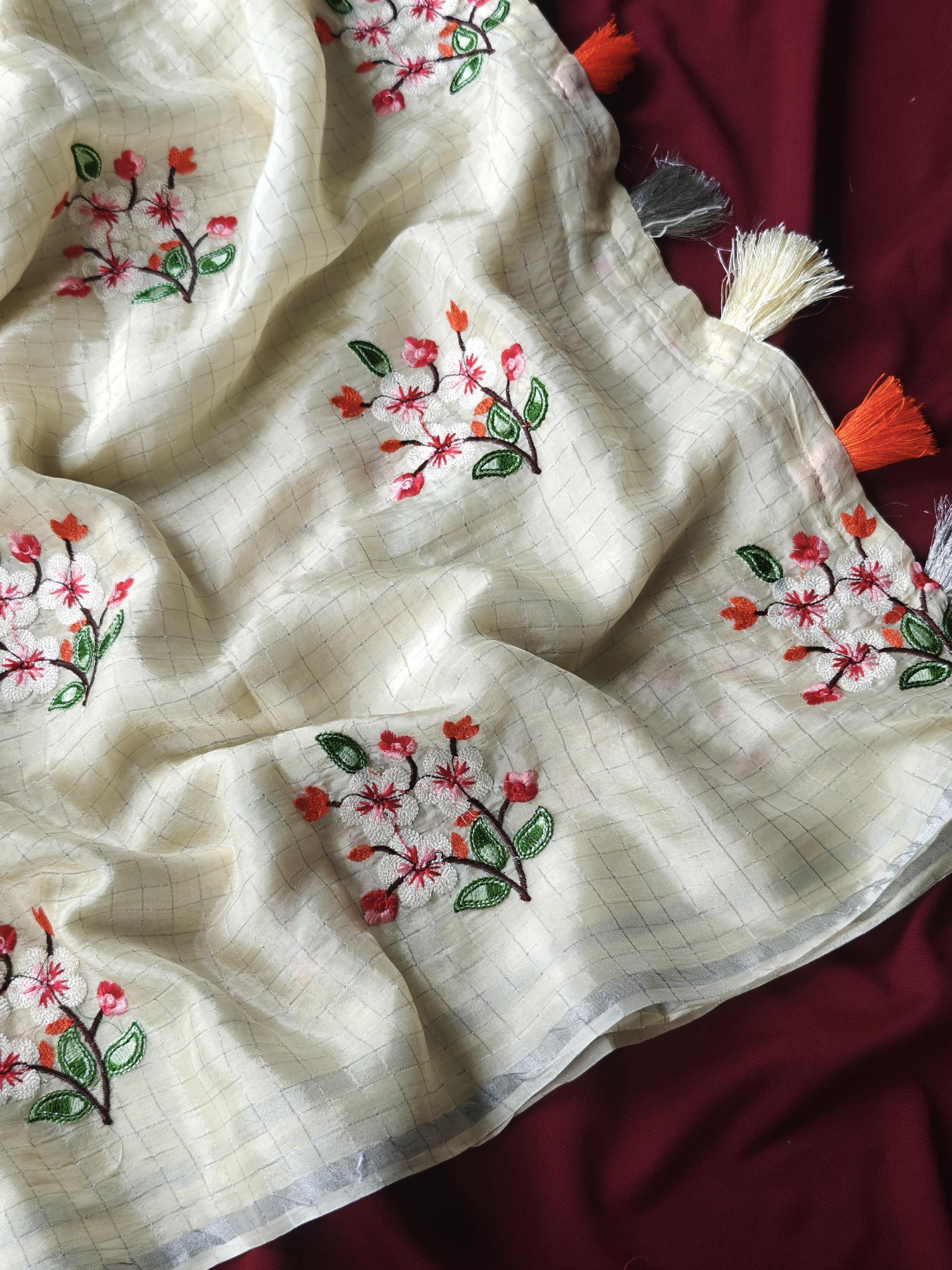 New Catalogue 😍 Catalog : Ranjana Premium Collection 🥻👉🏻 Premium glass german chiffon chex sarees with intricate thread embroidery , besil tassels,intricate pattern and silver zari border all over. With a beautiful contrast benarasi silk blouse with embroidery. Speciality - DESIGNER WEAR SAREES EXCLUSIVELY FOR YOUR WARDROBE. ❤️ Just 1550/- 😍 Ready to ship 🚢🚢🚢 |