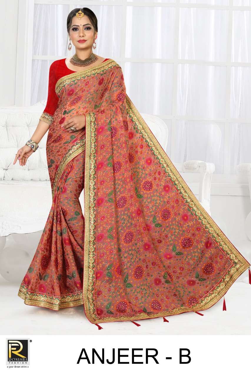 Ranjna Saree Anjeer Brasso Traditional Wear Party Wear Saree Collection