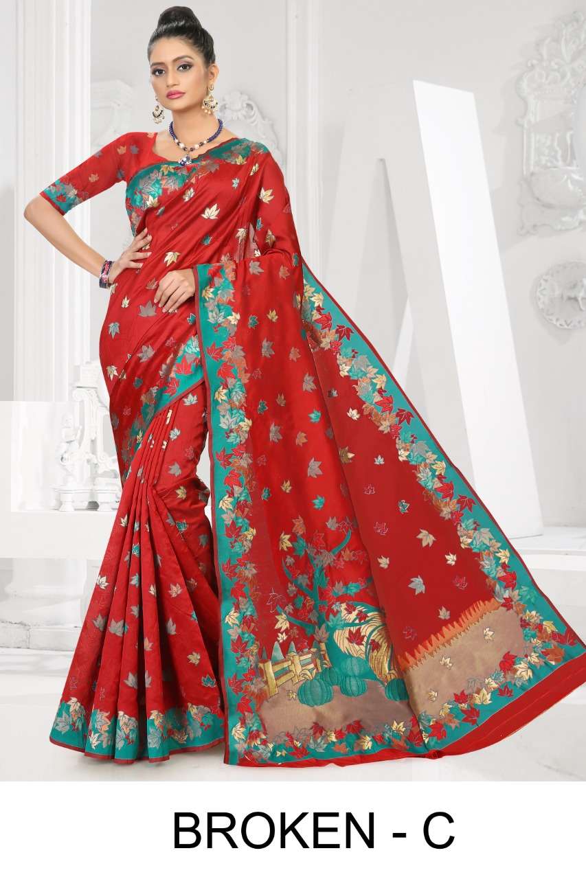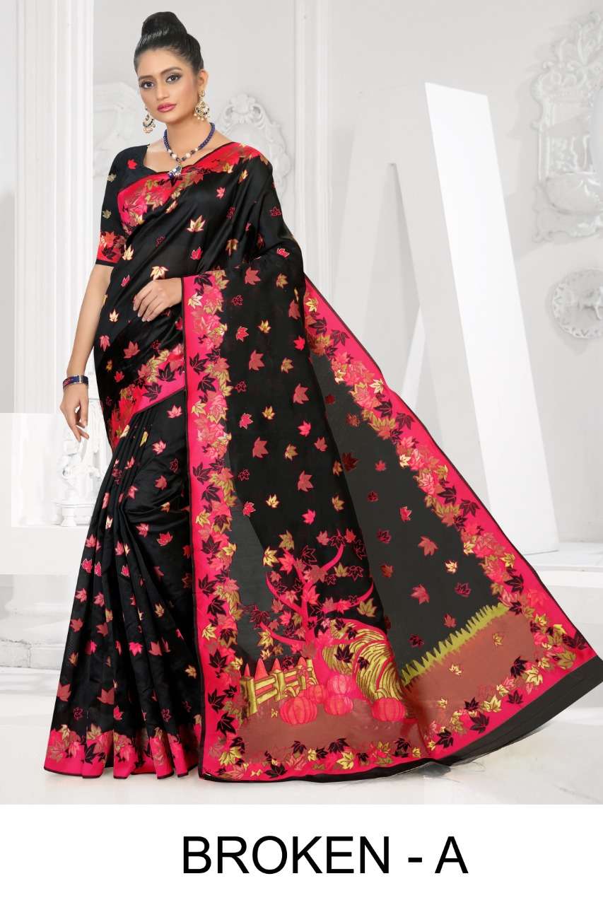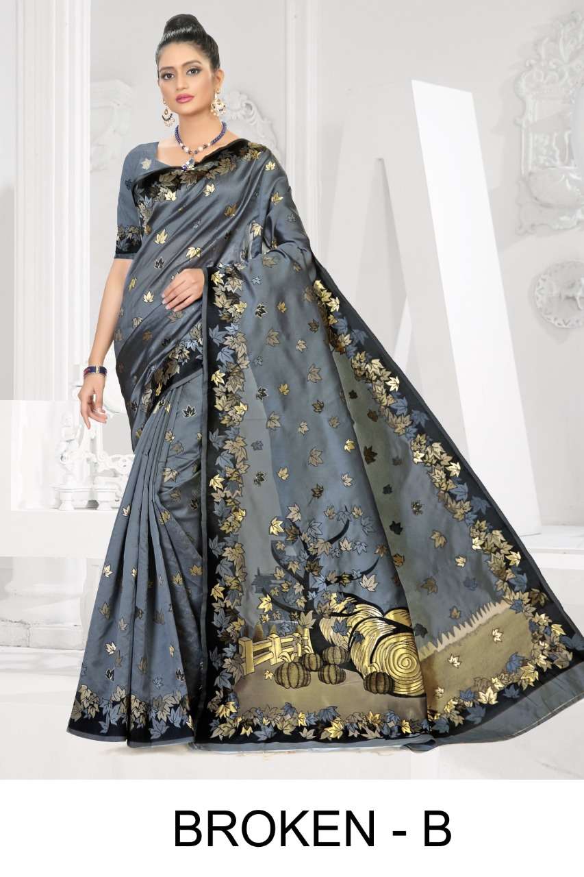 Dear Customer, We are launching our new Saree Catalog *Brand â Ranjna Sarees* *Catalog Name : BROKEN* Fabrics â PREMIUM SILK FORMAL WEAR SAREE COLLECTIONÂ Cut - 6.30 Mtr * Set to set * *Rate 595/-* Pc â 06 GST 5 Percent Extra. Book your order now . |