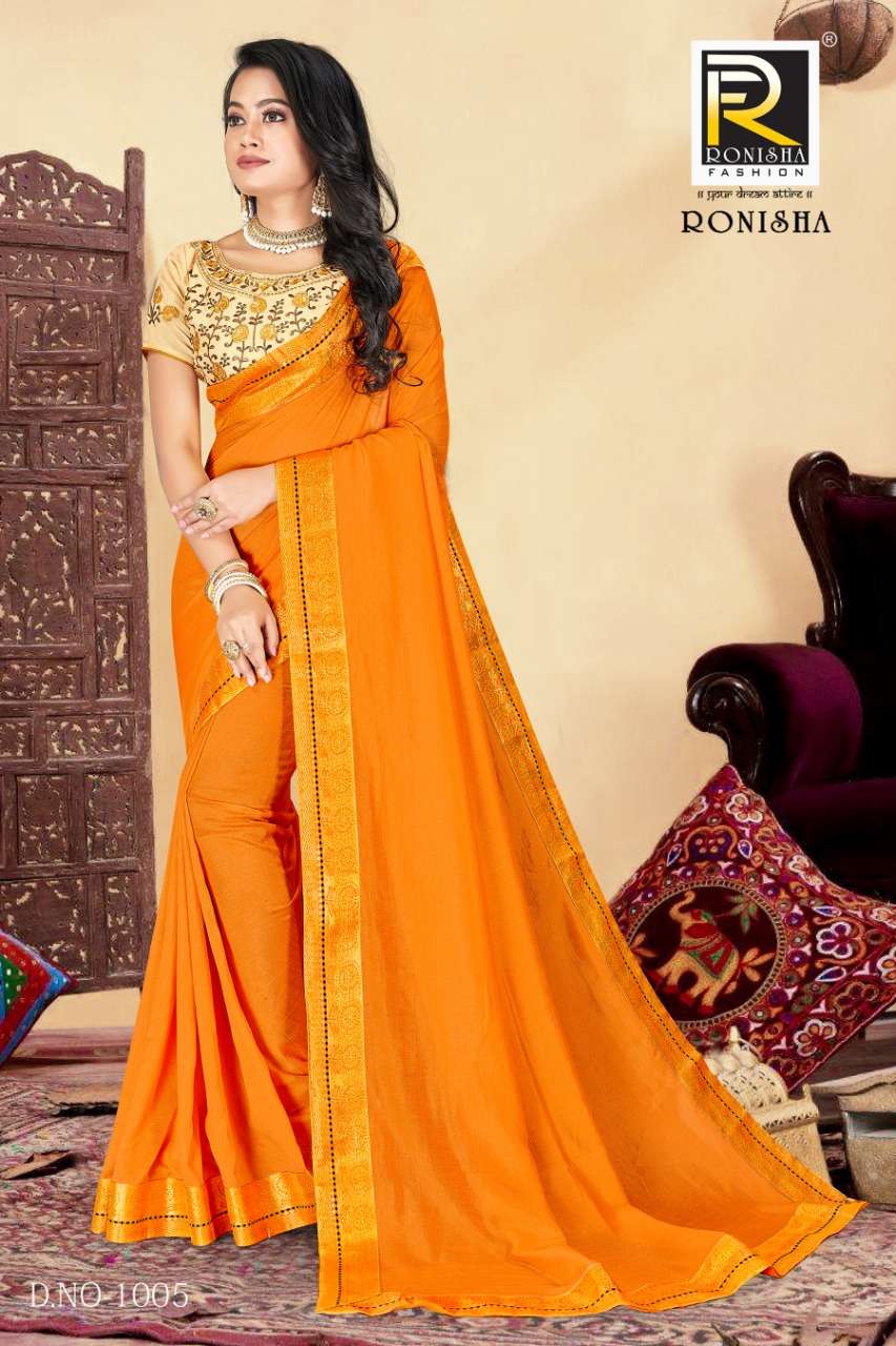 Dear Customer, We are launching our new Saree Catalog *Brand â RONISHA FASHION* *Catalog Name- CLASSY Fabrics â VICHITRA SILK Cut - 6.30 Mtr * Set to set * *Rate 415/-* Pcsâ08 GST 5 Percent Extra. Book your order now |
