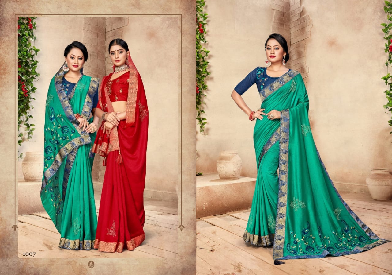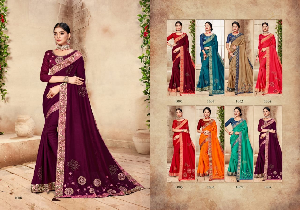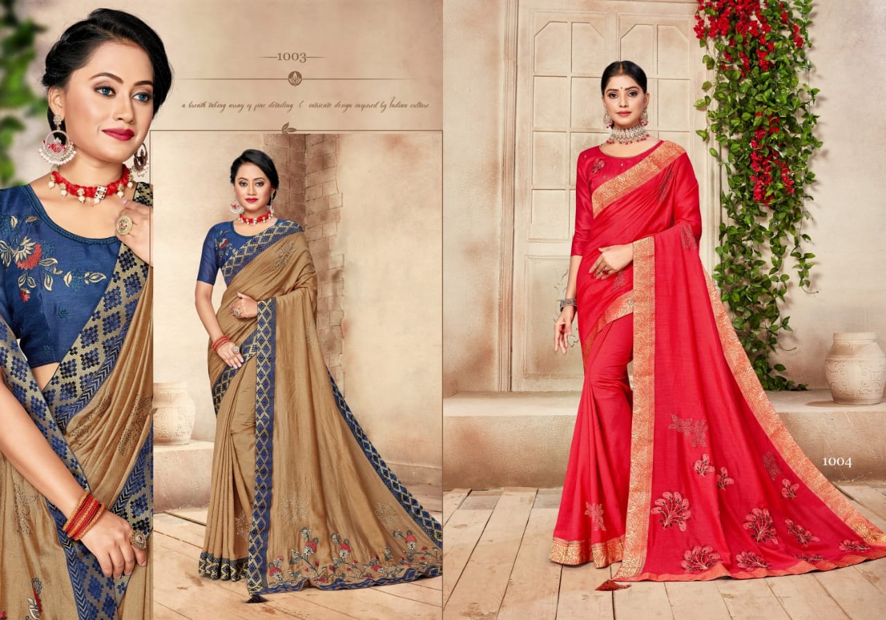 We are launching our new Saree Catalog Brand – Ranjna Sarees Catalog Name : ANANTAA Fabrics – Vichitra Silk Cut - 6.30 Mtr * Set to set * Rate 575/- Pc – 08 GST 5 Percent Extra. Book your order now . |