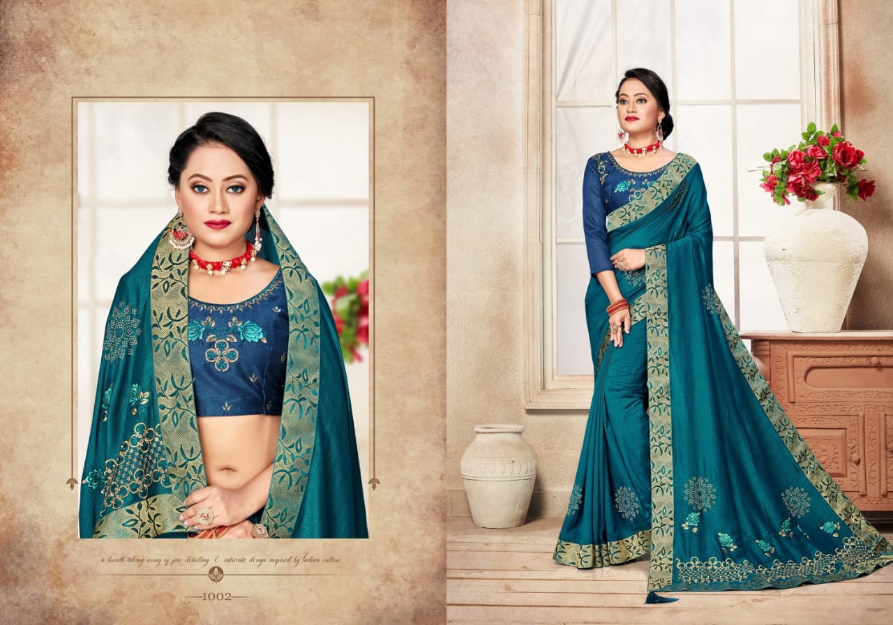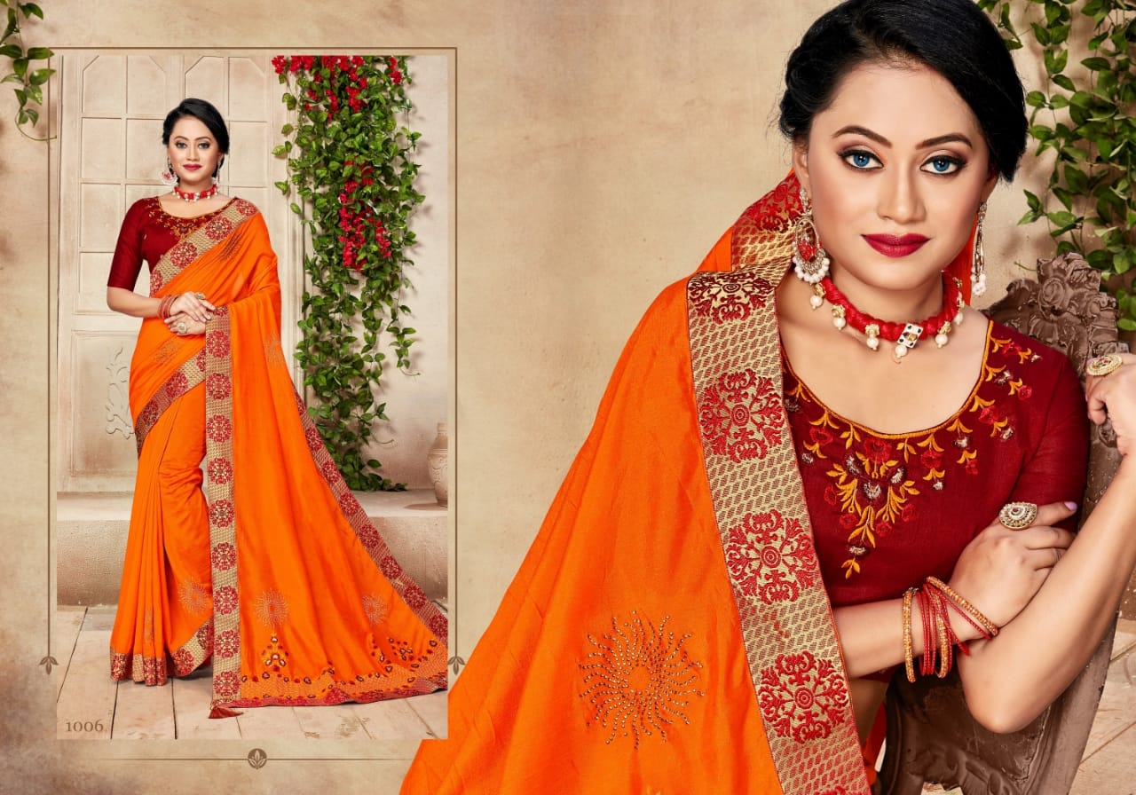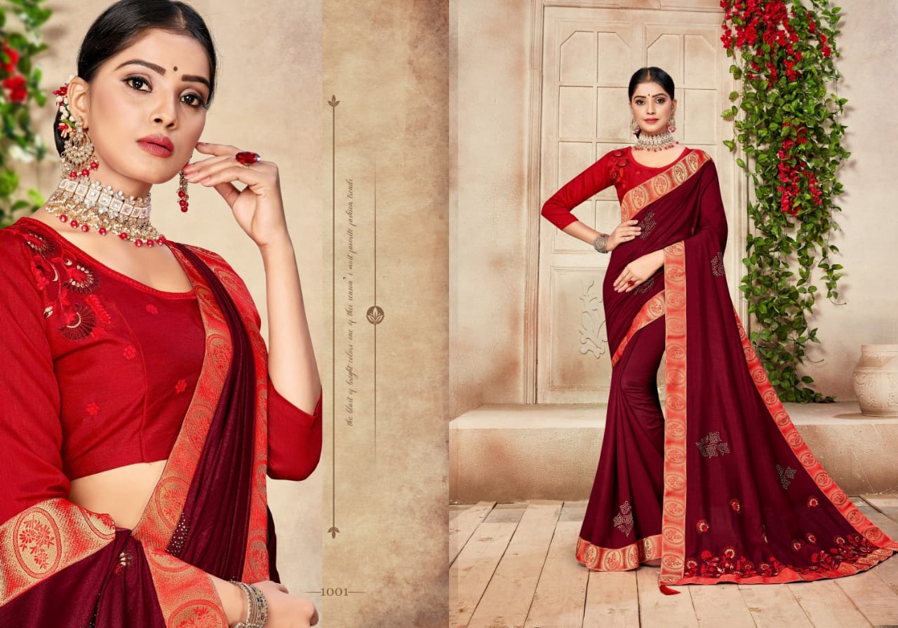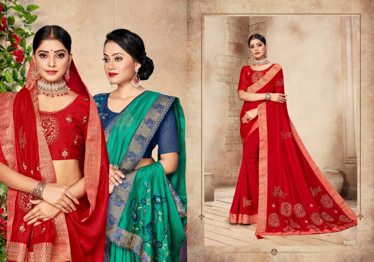 We are launching our new Saree Catalog Brand – Ranjna Sarees Catalog Name : ANANTAA Fabrics – Vichitra Silk Cut - 6.30 Mtr * Set to set * Rate 575/- Pc – 08 GST 5 Percent Extra. Book your order now . |
