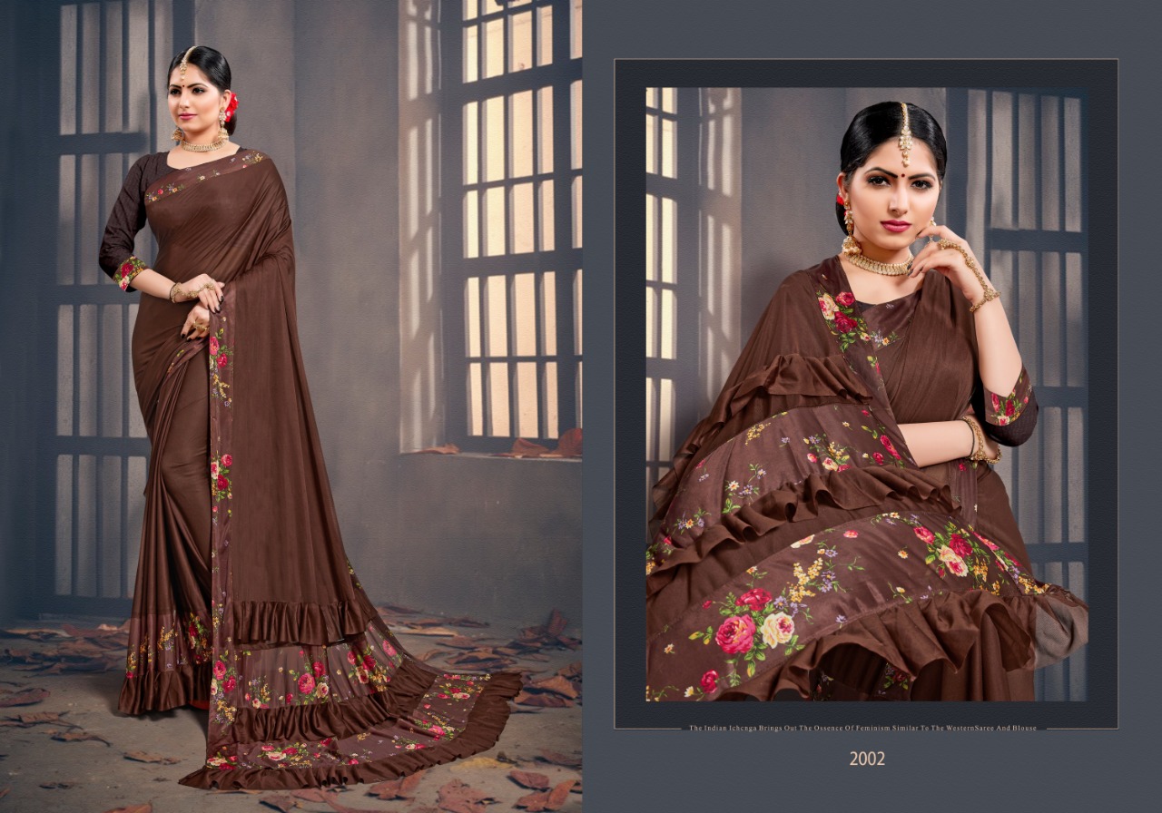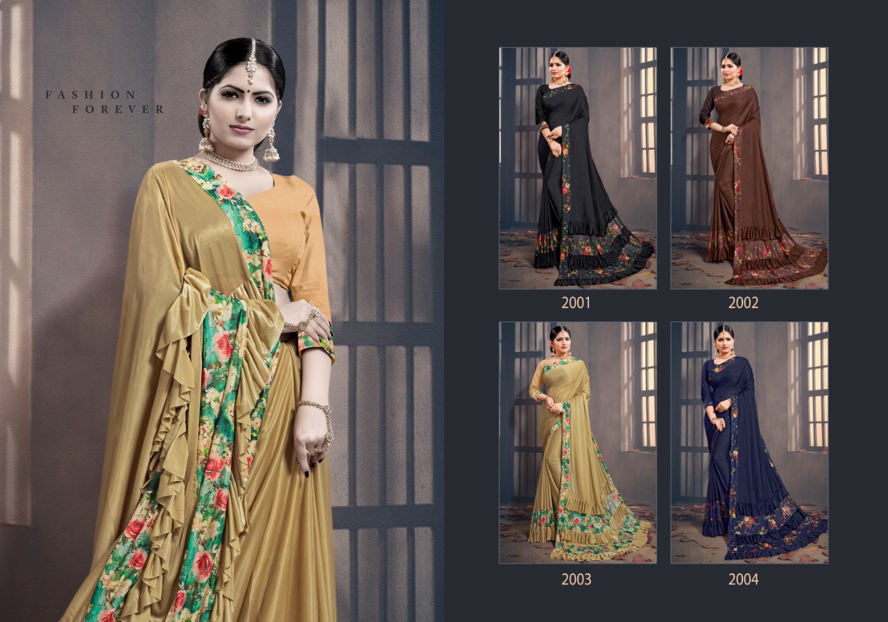 We are launching our new Saree Catalog Brand – Ranjna Sarees Catalog Name : OCCASION Fabrics – Lycra Rffule Designer Saree Cut - 6.30 Mtr * Set to set * Rate 645/- Pc – 04 GST 5 Percent Extra. Book your order now . |