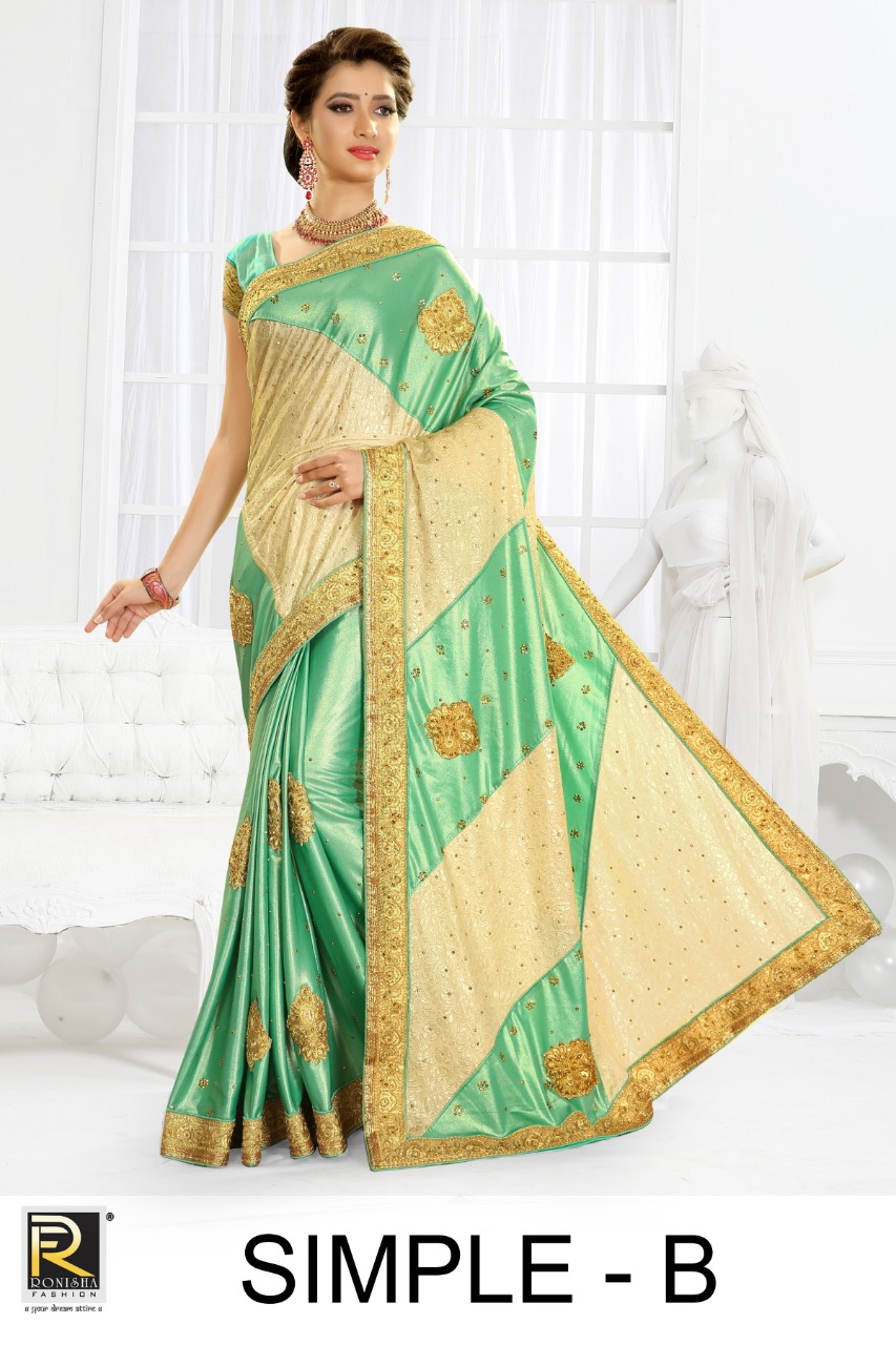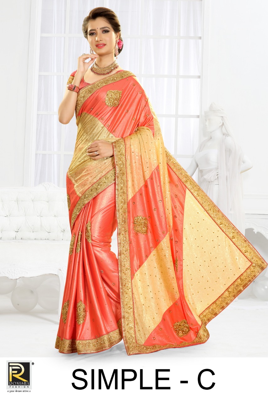We are launching our new Saree Catalog Brand – Ranjna Sarees Catalog Name : SIMPLE Fabrics – Lycra With Diamond Work Cut - 6.30 Mtr * Set to set * Rate 845/- Pc – 04 GST 5 Percent Extra. Book your order now . |
