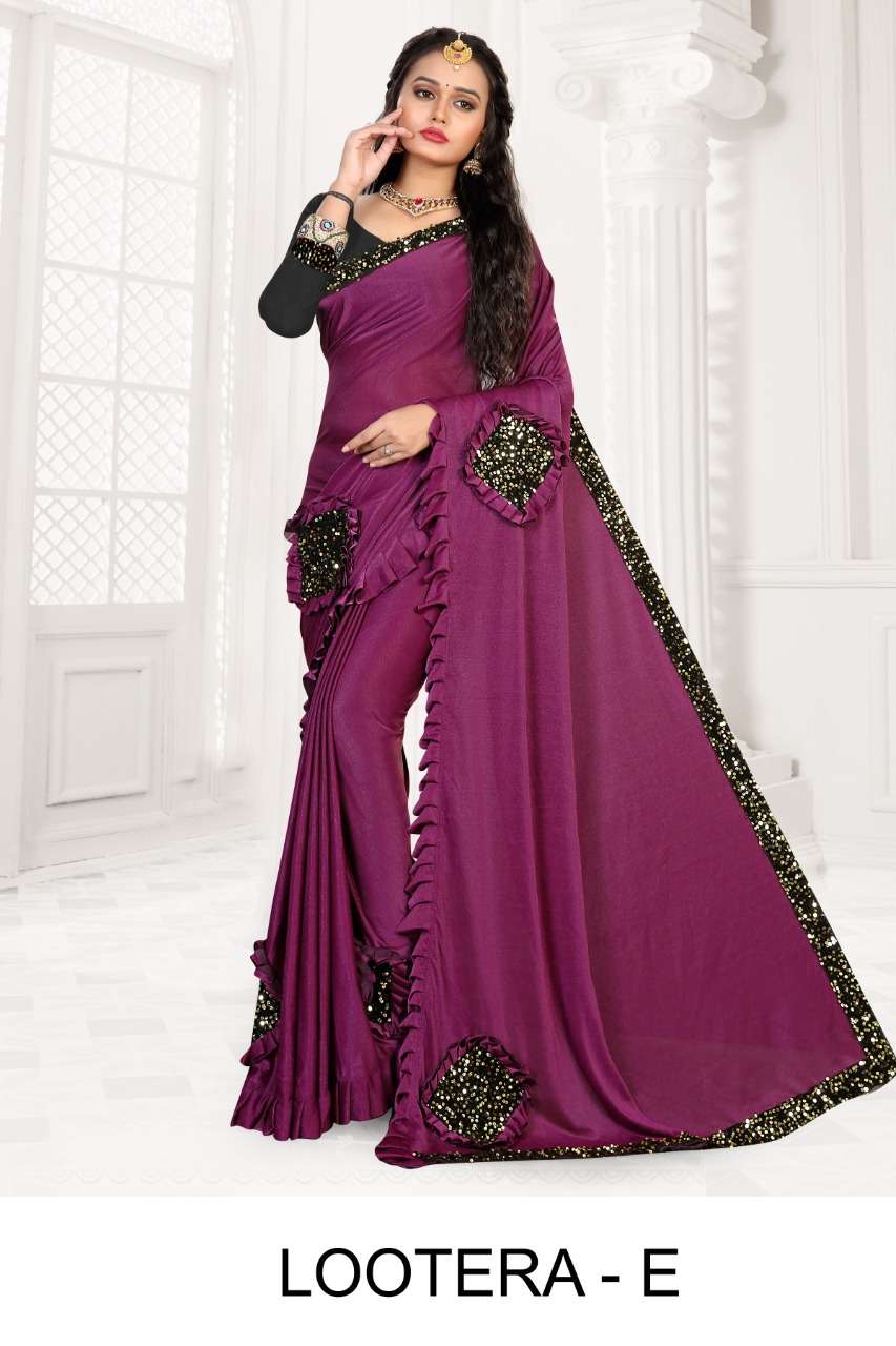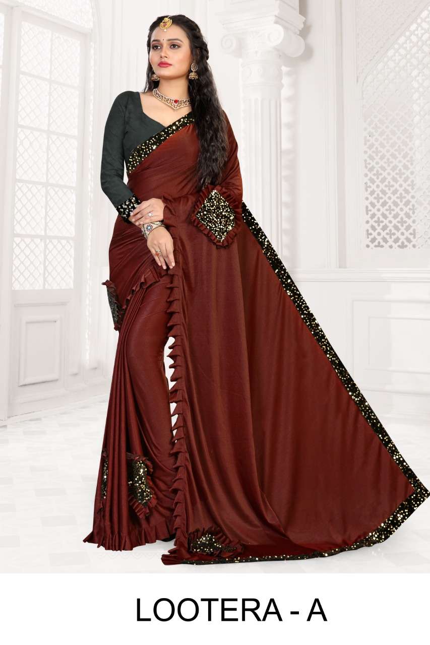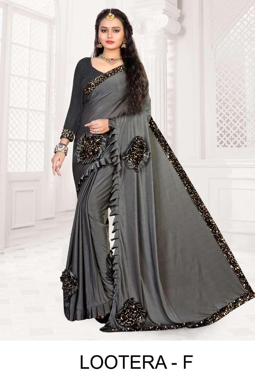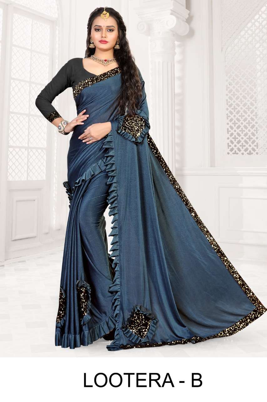 Dear Customer, We are launching our new Saree Catalog *Brand â Ranjna Sarees* *Catalog Name : LOOTERA* Fabrics â Imported Lycra bollywood style saree Cut - 6.30 Mtr * Set to set * *Rate 595/-* Pc â 06 GST 5 Percent Extra. Book your order now . |