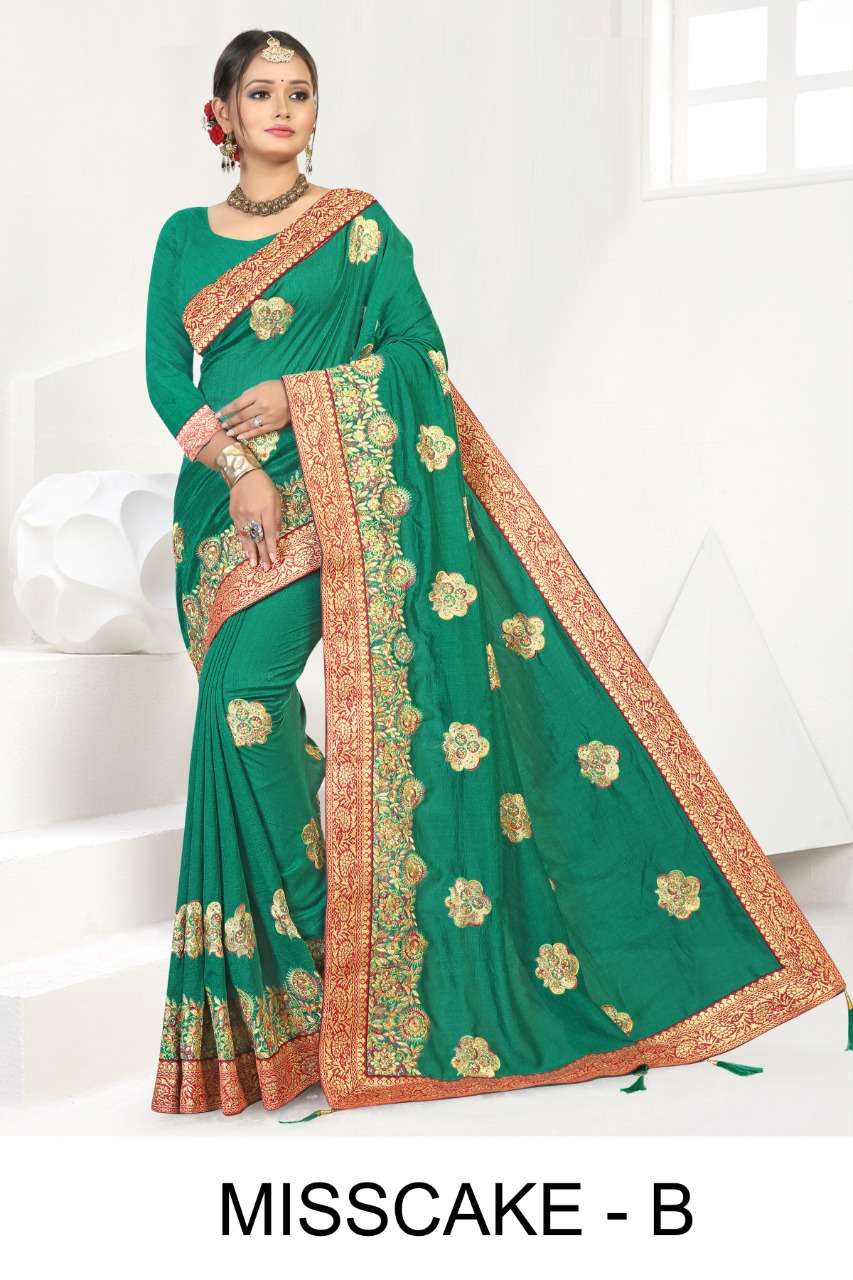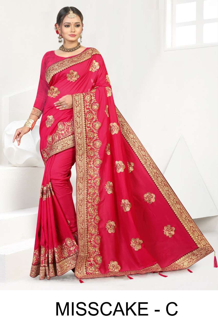 Ranjna Saree Misscake Fancy Border Embroidery Warked Saree Collection