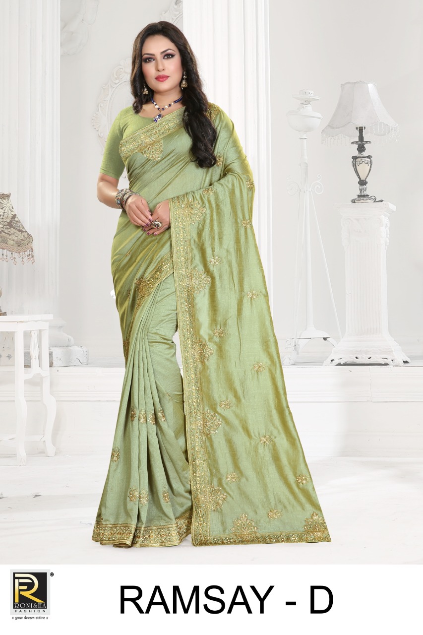 We are launching our new Saree Catalog Brand – Ranjna Sarees Catalog Name : RAMSAY Fabrics – Vichitra Silk Cut - 6.30 Mtr * Set to set * Rate 735/- Pc – 04 GST 5 Percent Extra. Book your order now . |