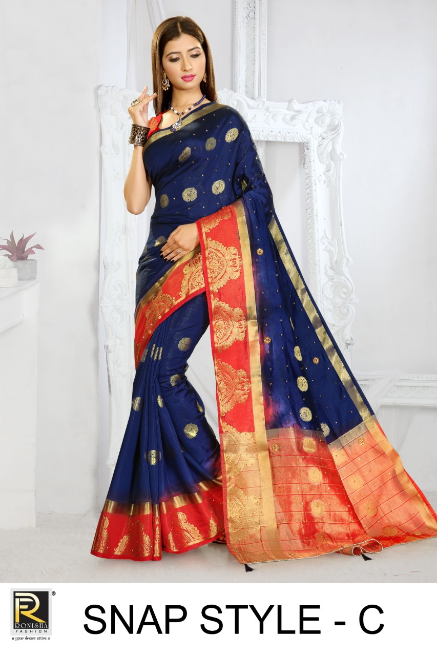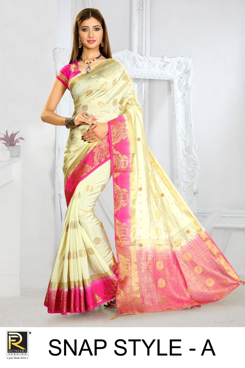 We are launching our new Saree Catalog Brand – Ranjna Sarees Catalog Name : SNAP STYLE Fabrics – Nylon Silk Cut - 6.30 Mtr * Set to set * Rate 595/- Pc – 06 GST 5 Percent Extra. Book your order now . |