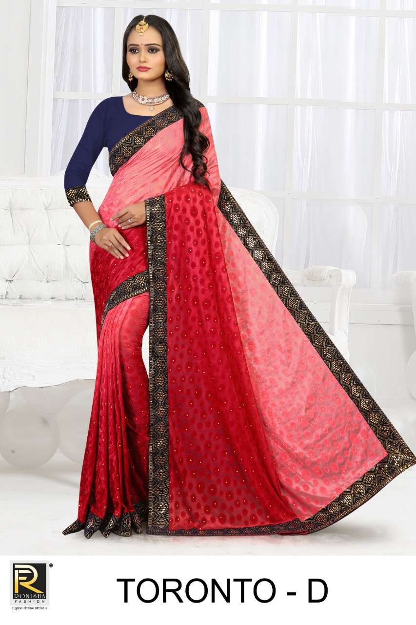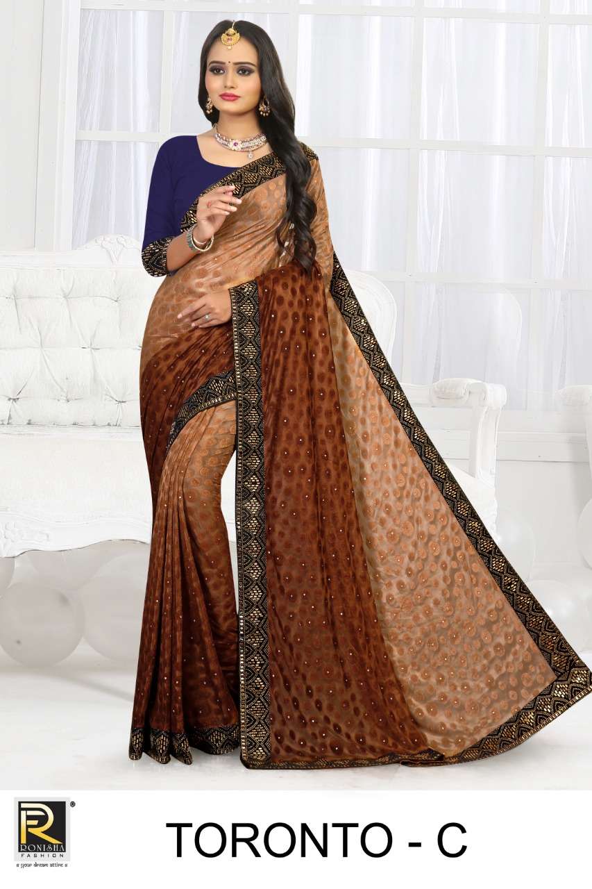 Dear Customer, We are launching our new Saree Catalog *Brand â Ranjna Sarees* *Catalog Name : TORONTO* Fabrics â TERI BRASSO TRADITIONAL WEAR SAREE COLLECTIONÂ Cut - 6.30 Mtr * Set to set * *Rate 965/-* Pc â 05 GST 5 Percent Extra. Book your order now . |