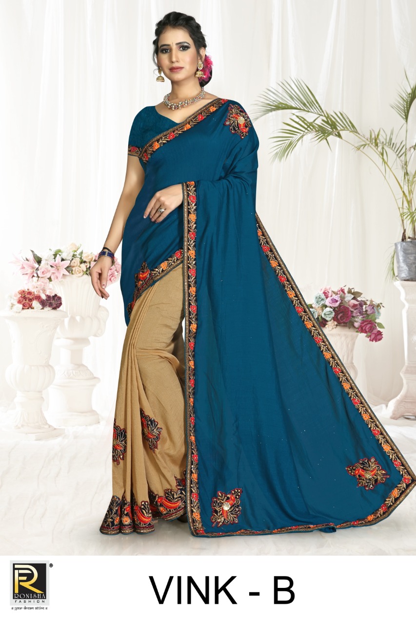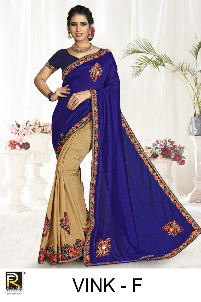 Ranjna Saree Vink Exclusive Vichitra Silk Half Half Style Saree Seller