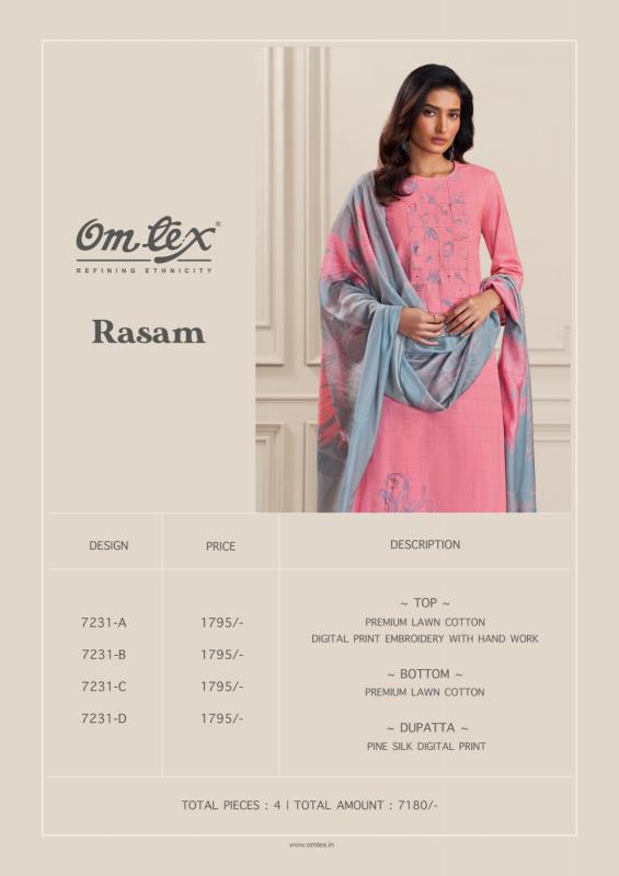 Om Tex Presents Latest Collection Launched on 11-03-2025. Presenting Beautiful collection of 4 PCS with Unstitched .