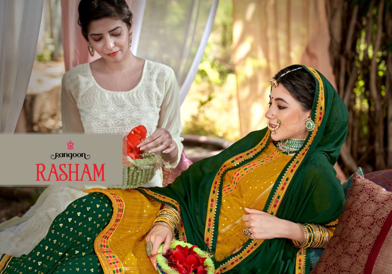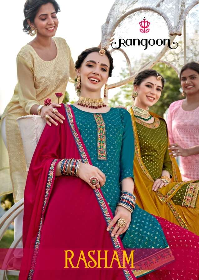 Rangoon (Kessi Group) hitting market with exclusively trending series of Catalogs RASAM 👇🏻Fabric Details 👇🏻 👗 Top: - Pure Upada Silk with Fancy Sequence Work and Heavy Cotton Mal Inner. 👖 Bottom:- Chinon Sequence Work with Heavy Shantoon Inner Sharara 🧣 Dupatta:-Chinon Silk with Fancy Embroidery Lace Work Border. 👜No. of Design: - 6 🔻Price: 💸 1549/- + *GST 📏Size: M, L, XL, XXL, 3XL |