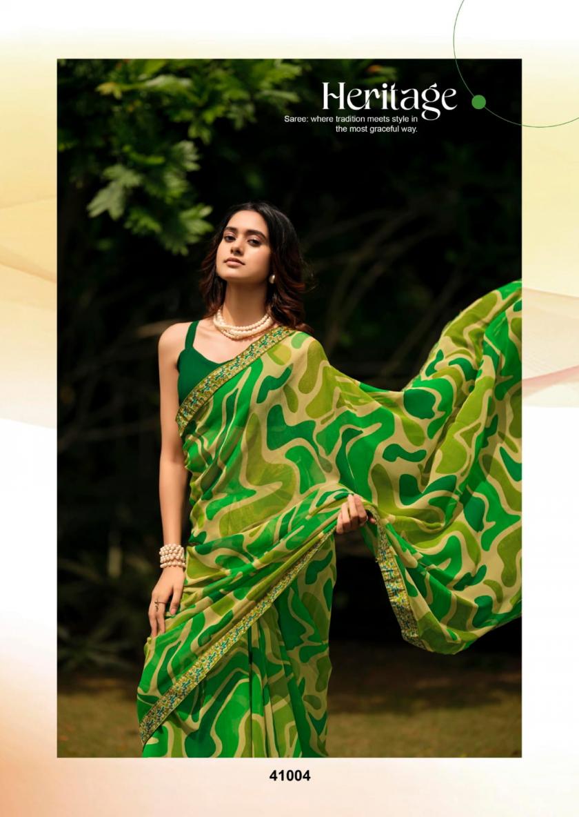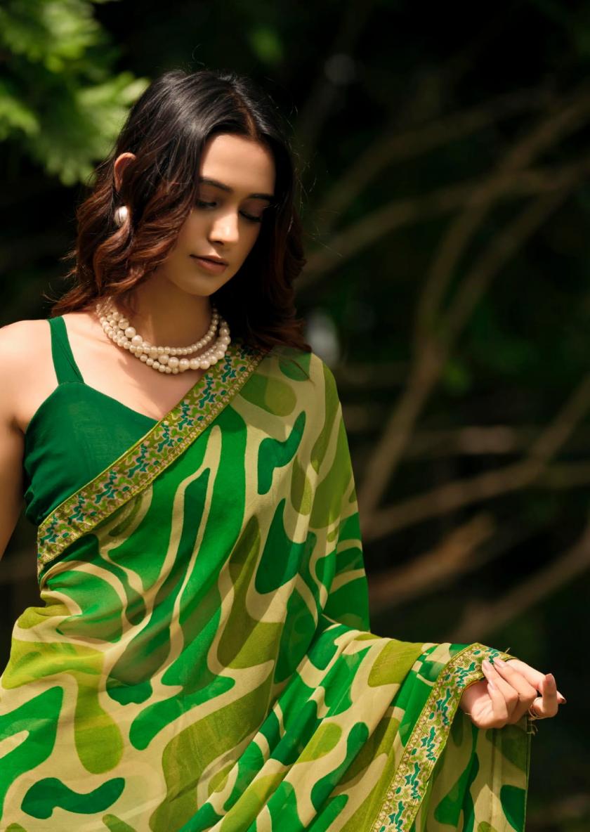 Sanskar Tex Prints Pvt Ltd CATLOUGE- RASHMIKA Fabric- Georgette print with all different work border Qty- 8 dis (8 set each bale) RATE - 515₹ |