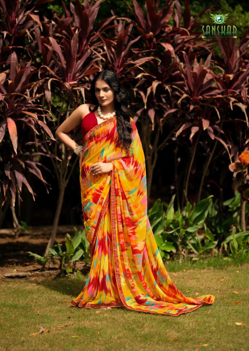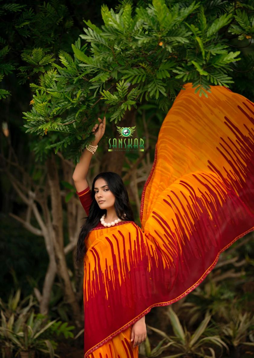 rashmika by sanskar tex prints georgette daily wear saree supplier