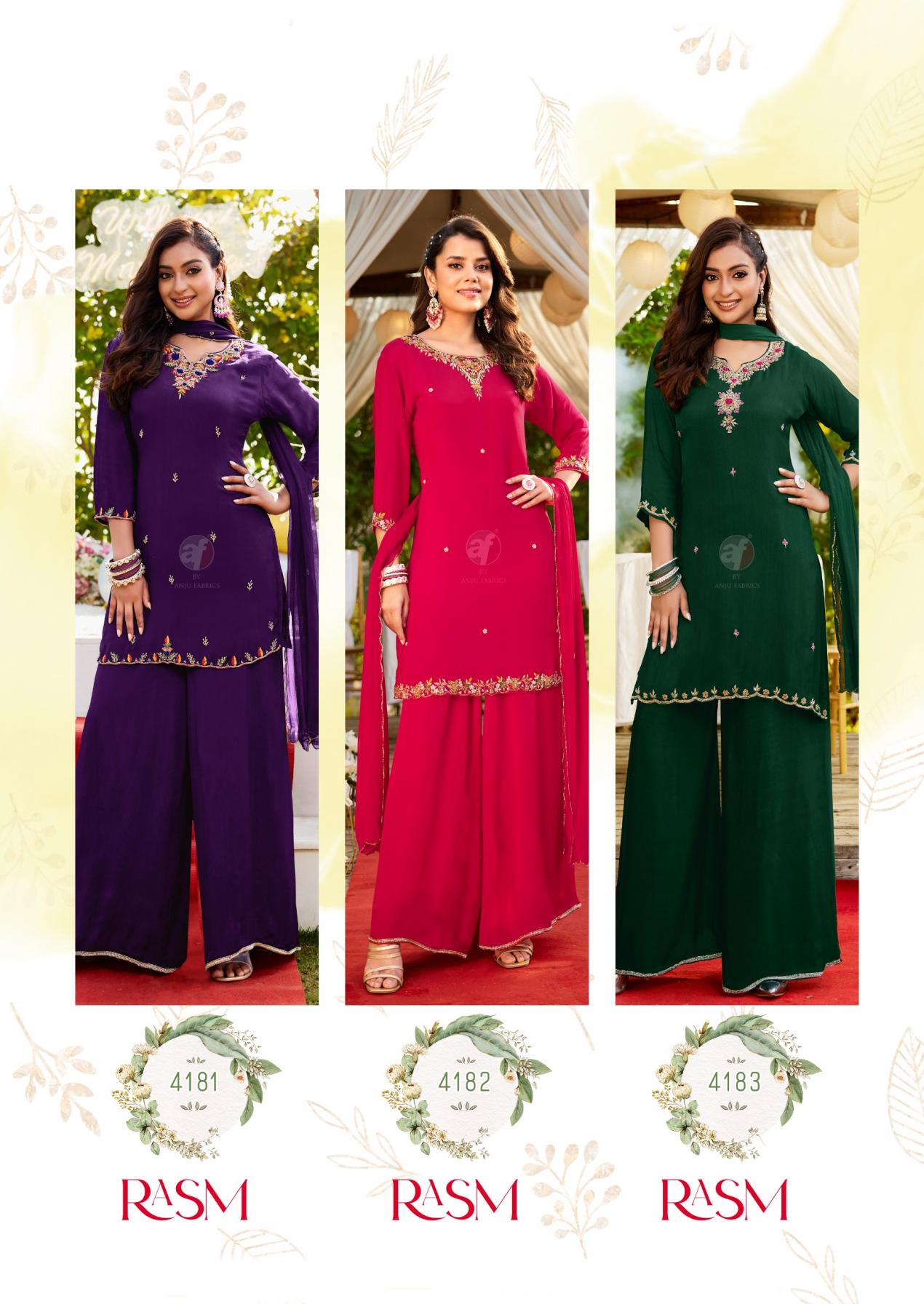 rasm vol 7 by anju fab chinon chiffon fullstitch Kurti with plazo and dupatta