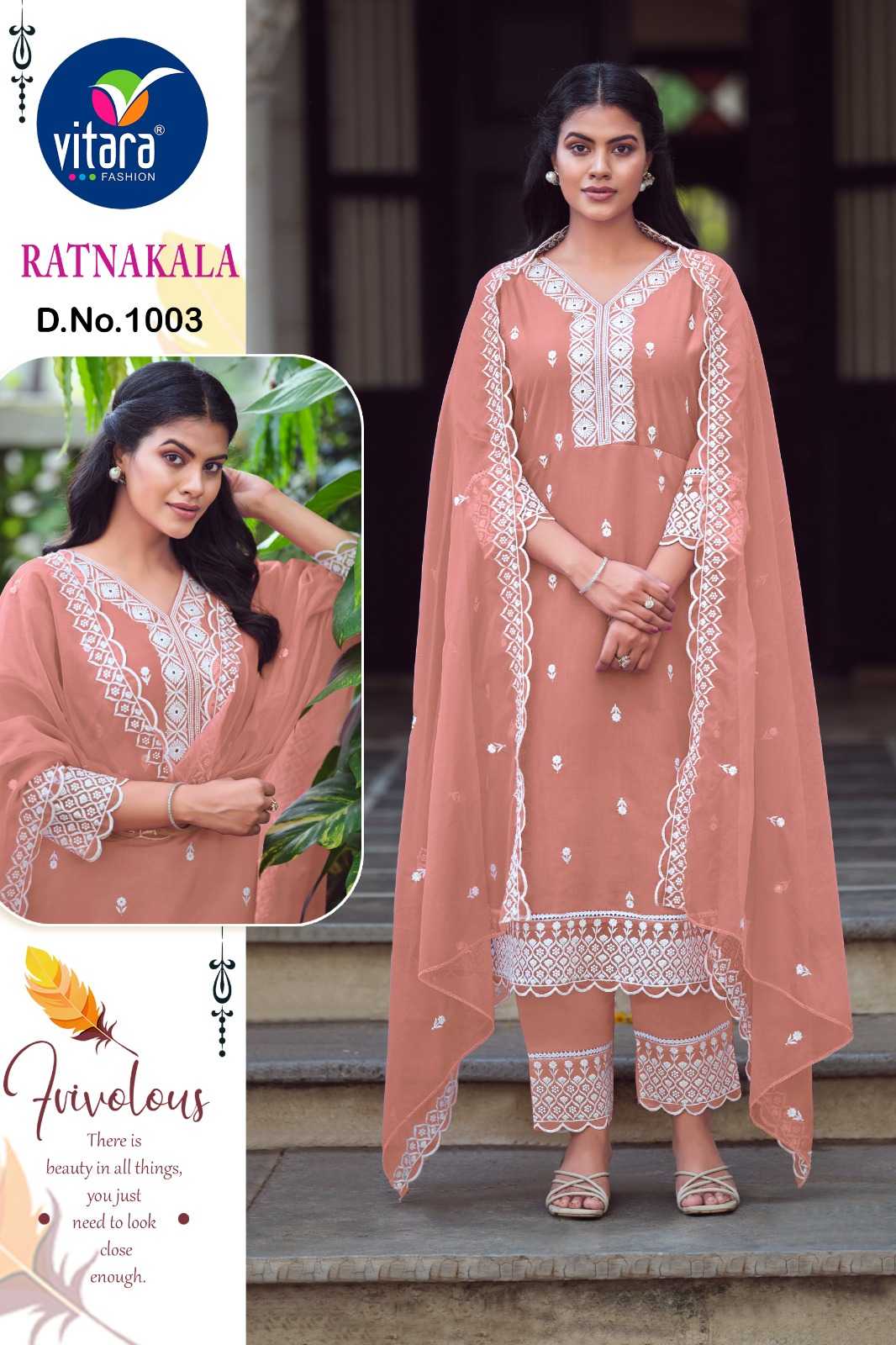 ratankala by vitara fashion stylish roman silk embroidery work classic full stitch combo set salwar suit
