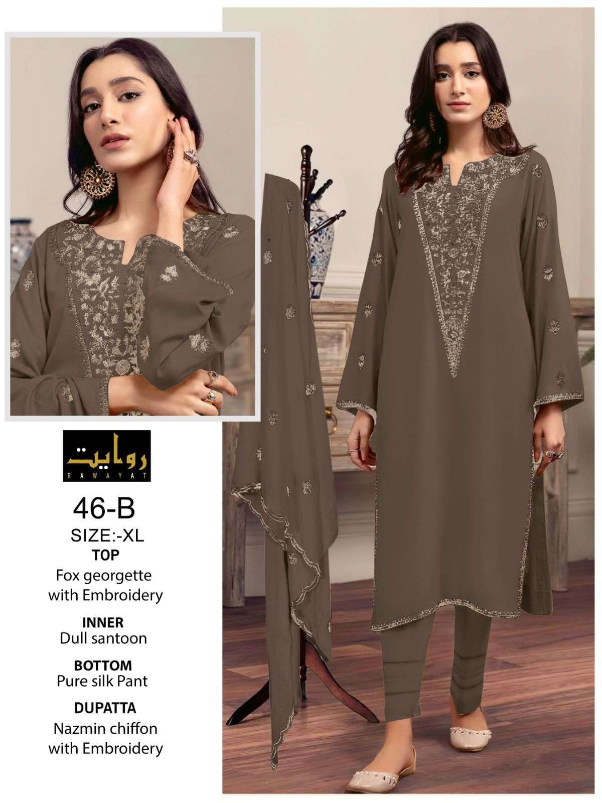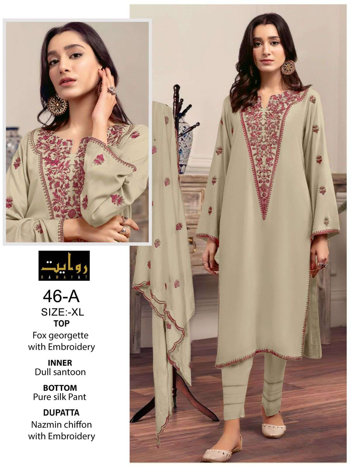Rawayat Presents Latest Collection Launched on 11-09-2023. Presenting Beautiful collection of 3 PCS with Full Stitched XL,XXL .