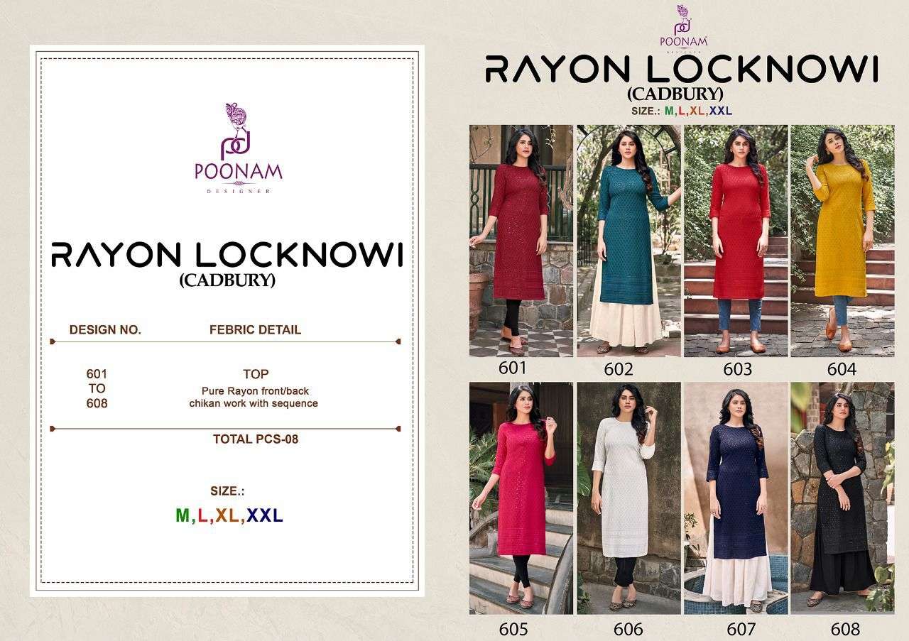rayon lucknowi cadbury by poonam chikan work ladies fancy kurti