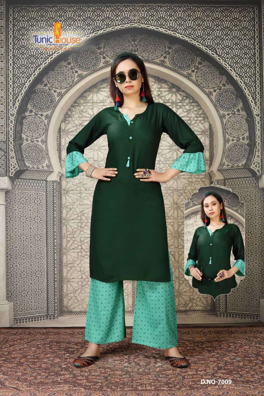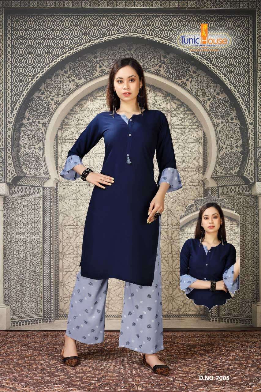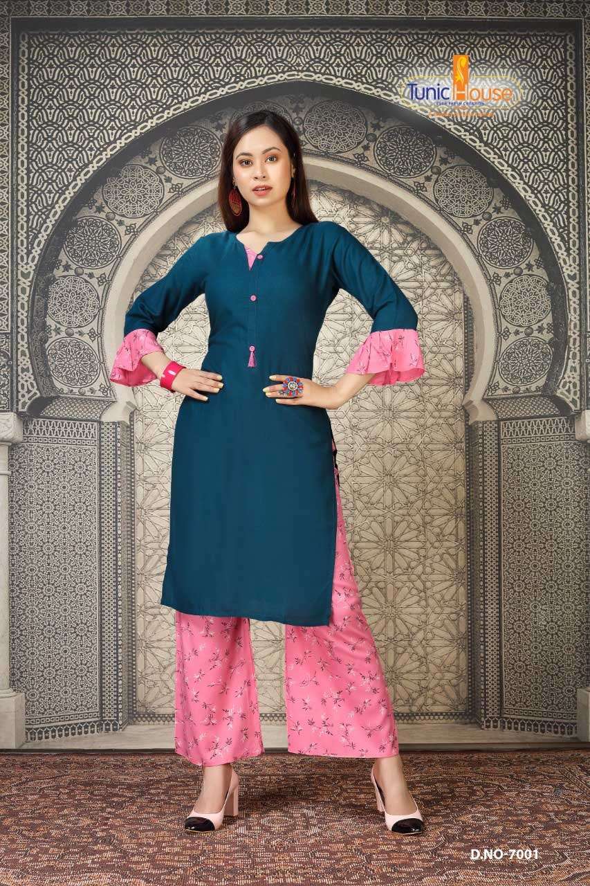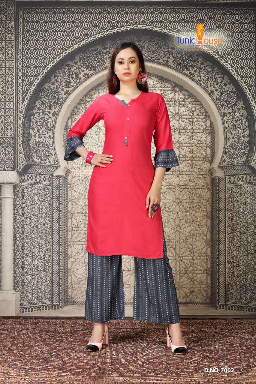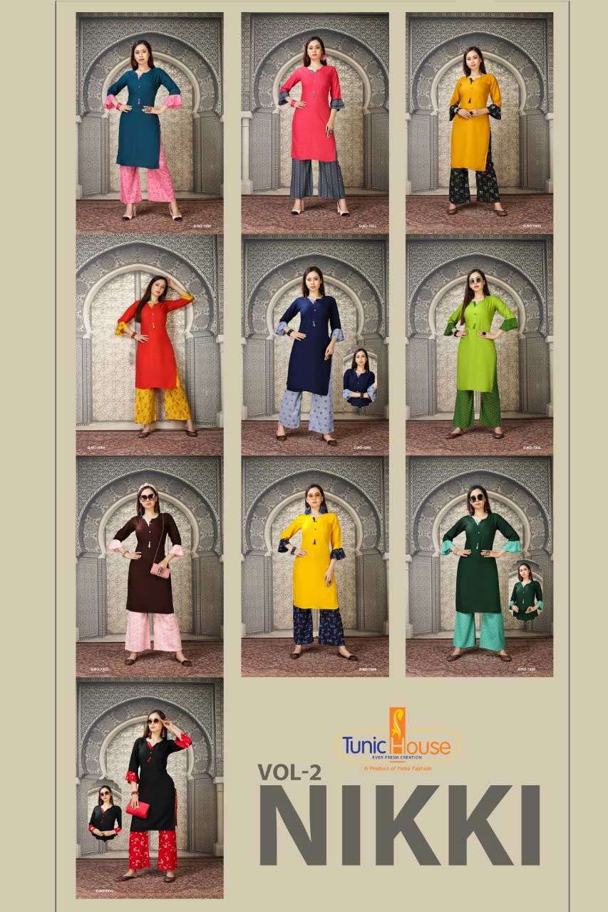 Tunic House Kurti (A GROUP OF NEHA FASHION)  Launches Our New Cataloge       NIKKI VOL-2       FABRIC TOP :- VISCOUSE RAYON   PLAZO.    :-VISCOUS RAYON PRINT Size -  M(38), L (40), XL(42), XXL(44), 3XL(46) Rate â   399.00 Gst-5%extra Design : 10 Set to set. Book your order Dispatch :- READY DELIVERY |