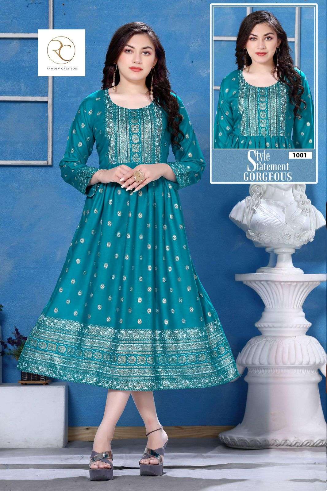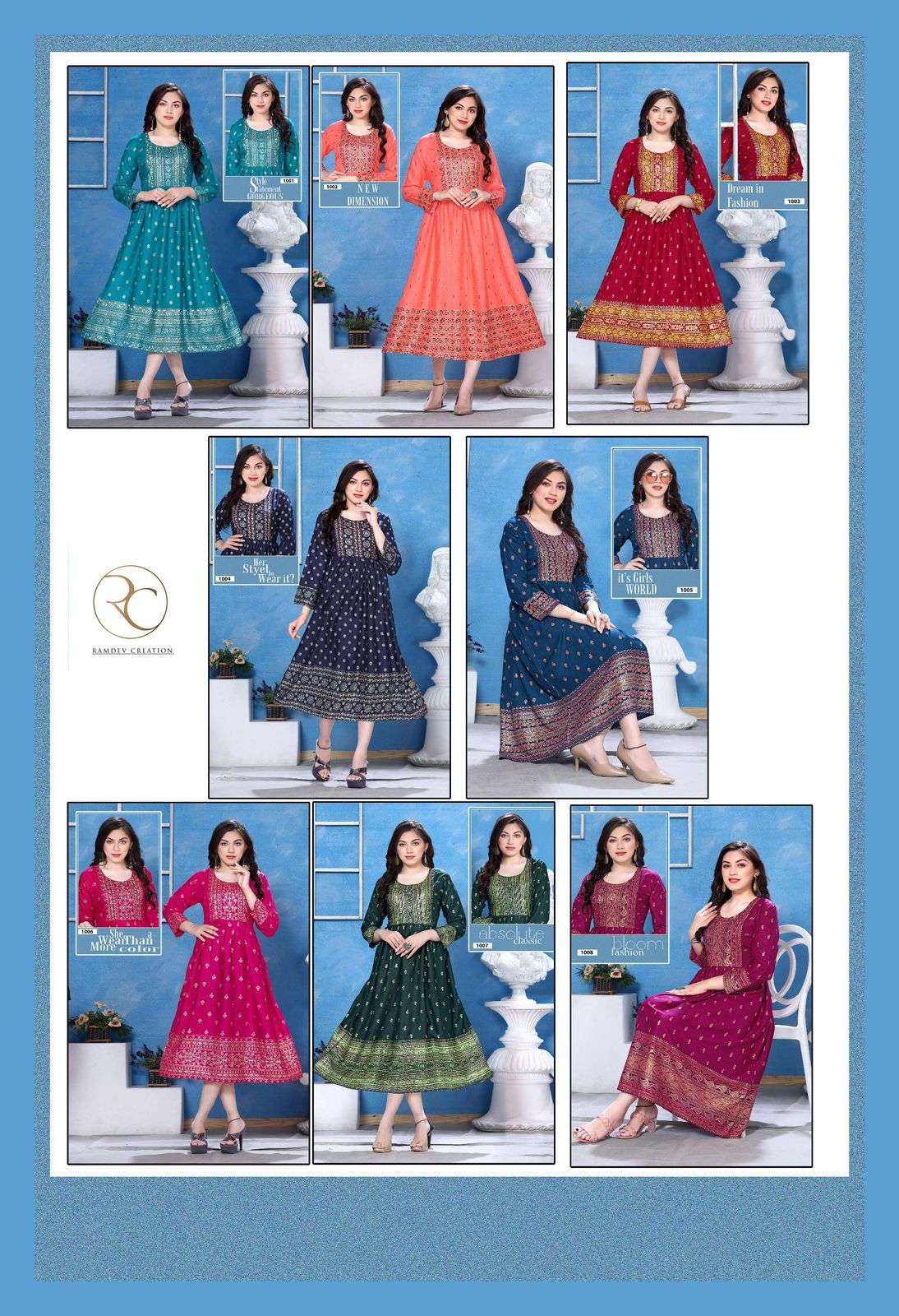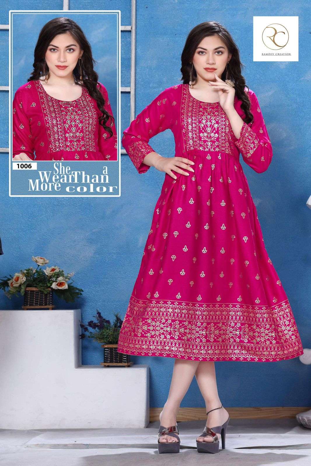 RC presents its new catalog 📒Name: LAKME VOL.2 👗 Fabric Heavy Rayon 14 kg screen print ✨ Concept: Ghera Manual Sequence Work Sillai Pattern Kurtis ✨ Colours: 8 ✨Sizes: M, L, XL, XXL, 3XL Rate: 360/- |