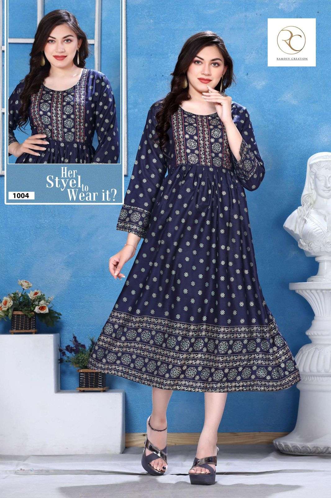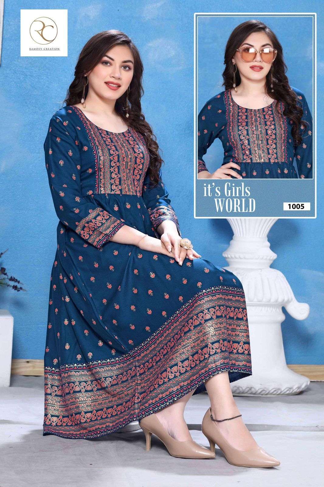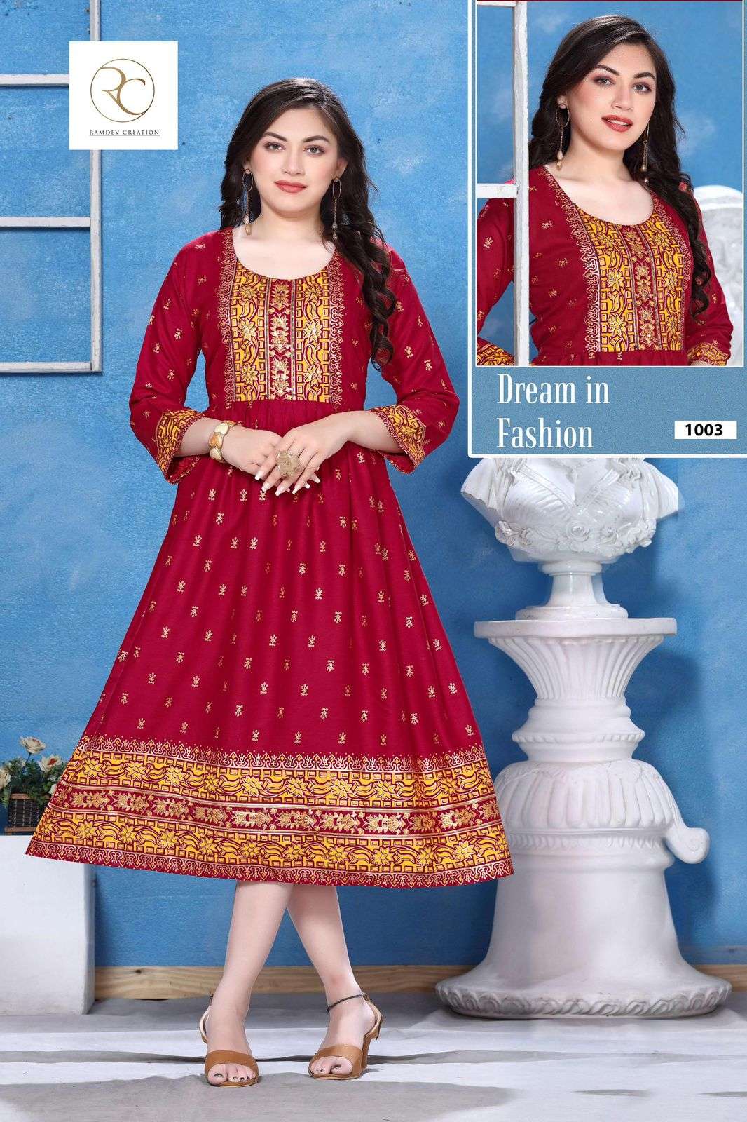 RC presents its new catalog 📒Name: LAKME VOL.2 👗 Fabric Heavy Rayon 14 kg screen print ✨ Concept: Ghera Manual Sequence Work Sillai Pattern Kurtis ✨ Colours: 8 ✨Sizes: M, L, XL, XXL, 3XL Rate: 360/- |
