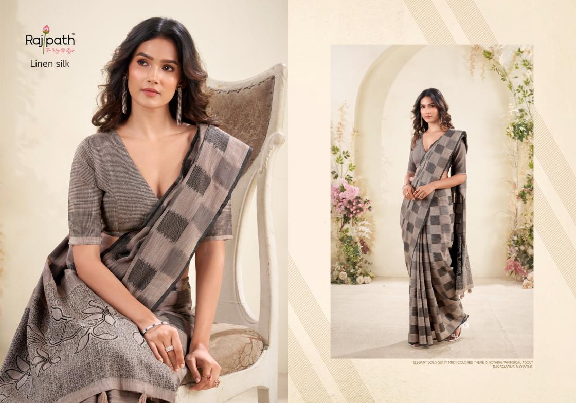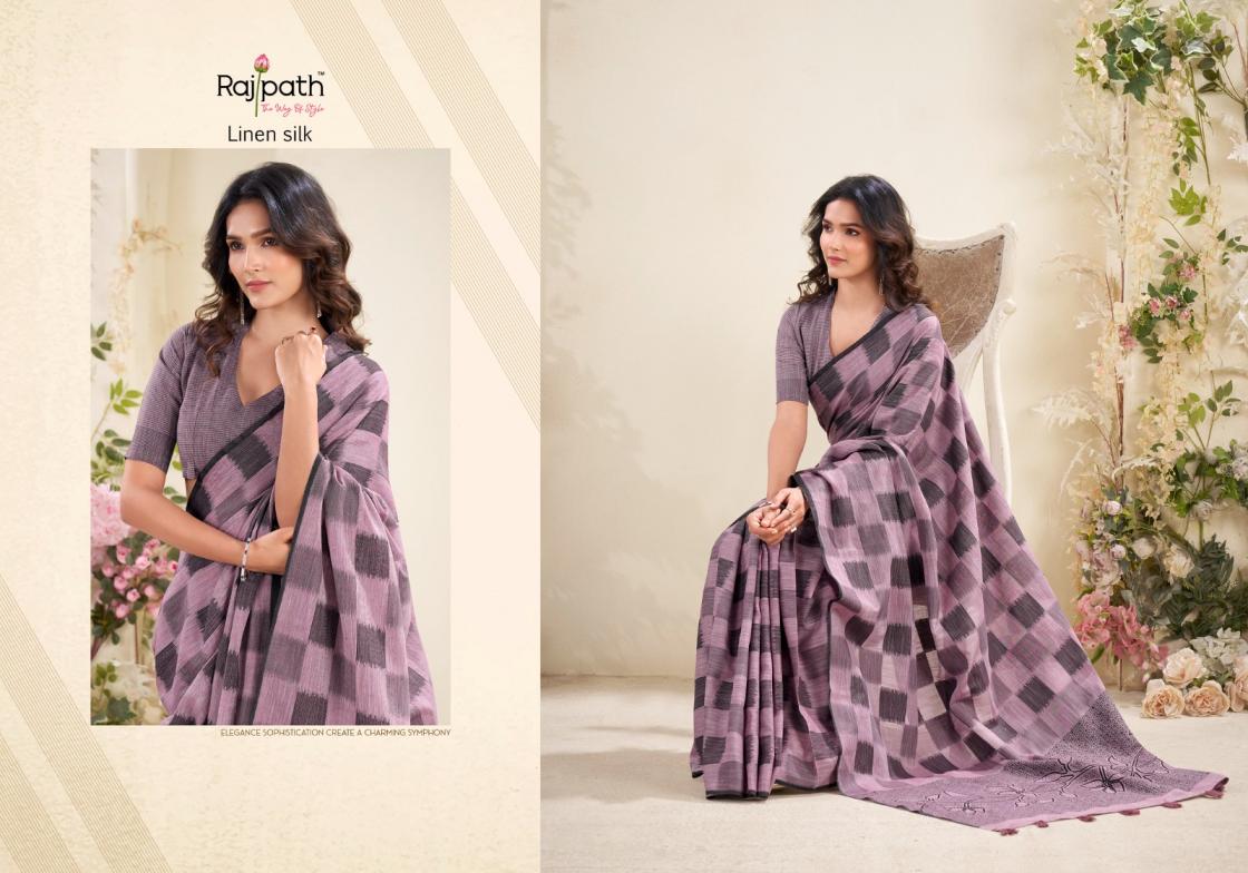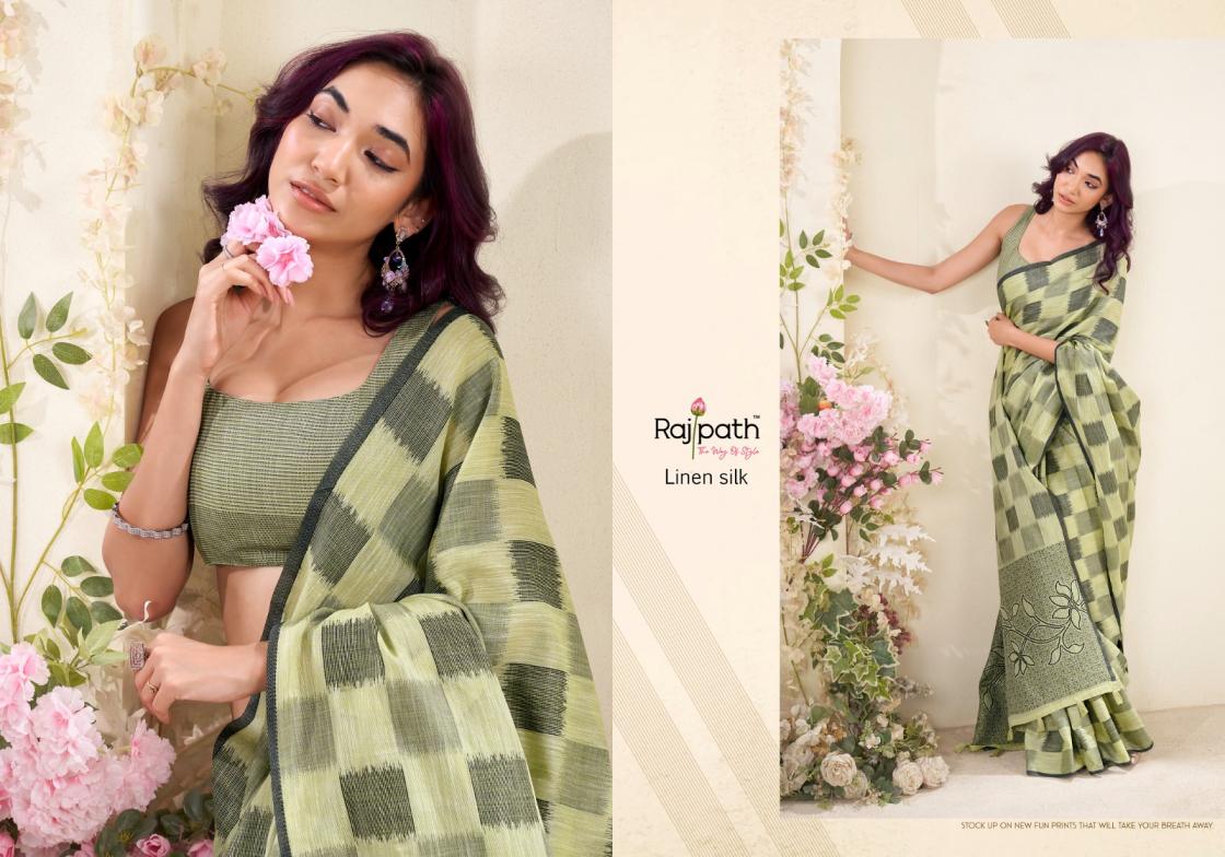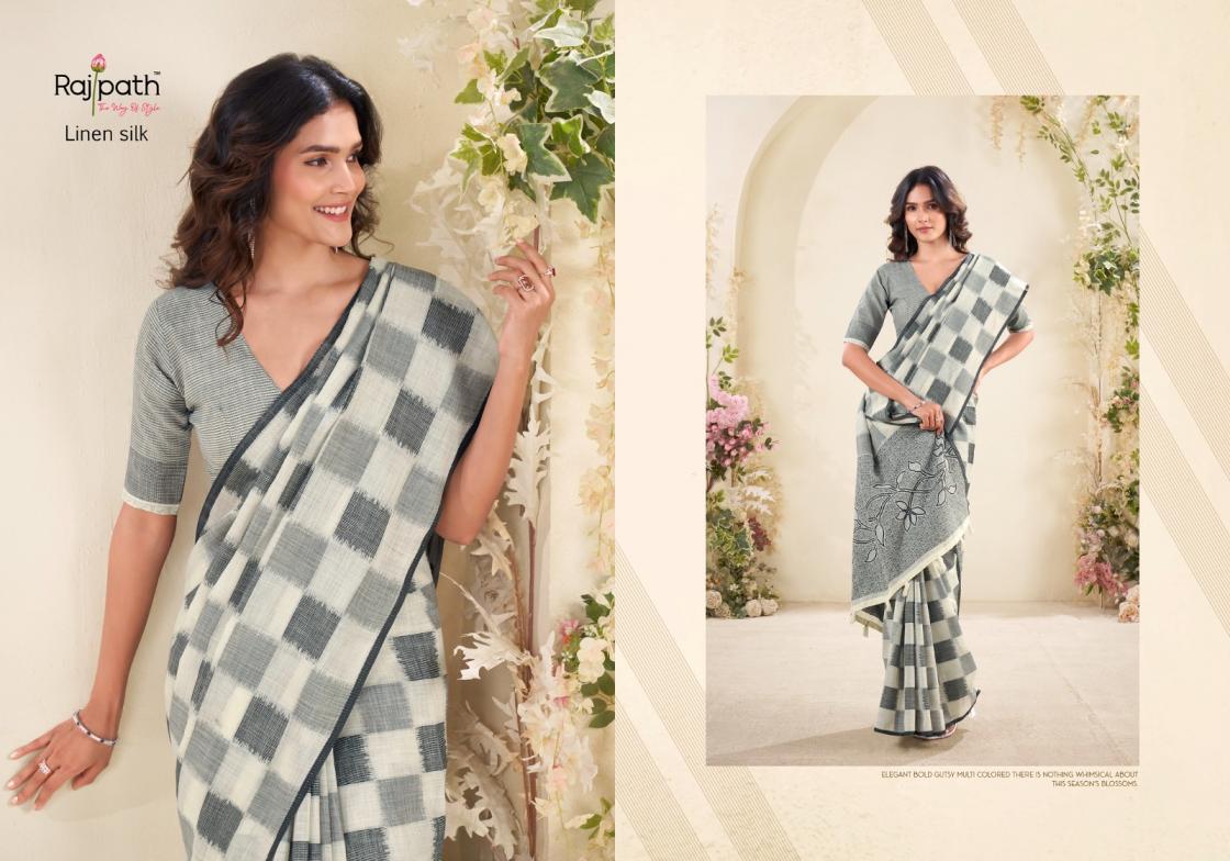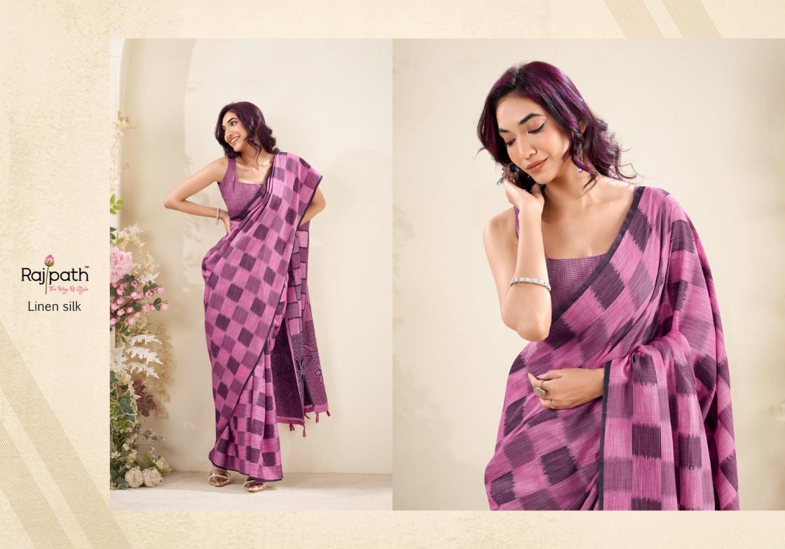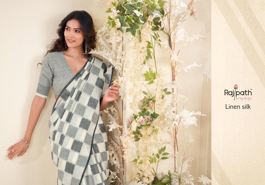 redium silk by rajpath pretty linen silk checks print sarees