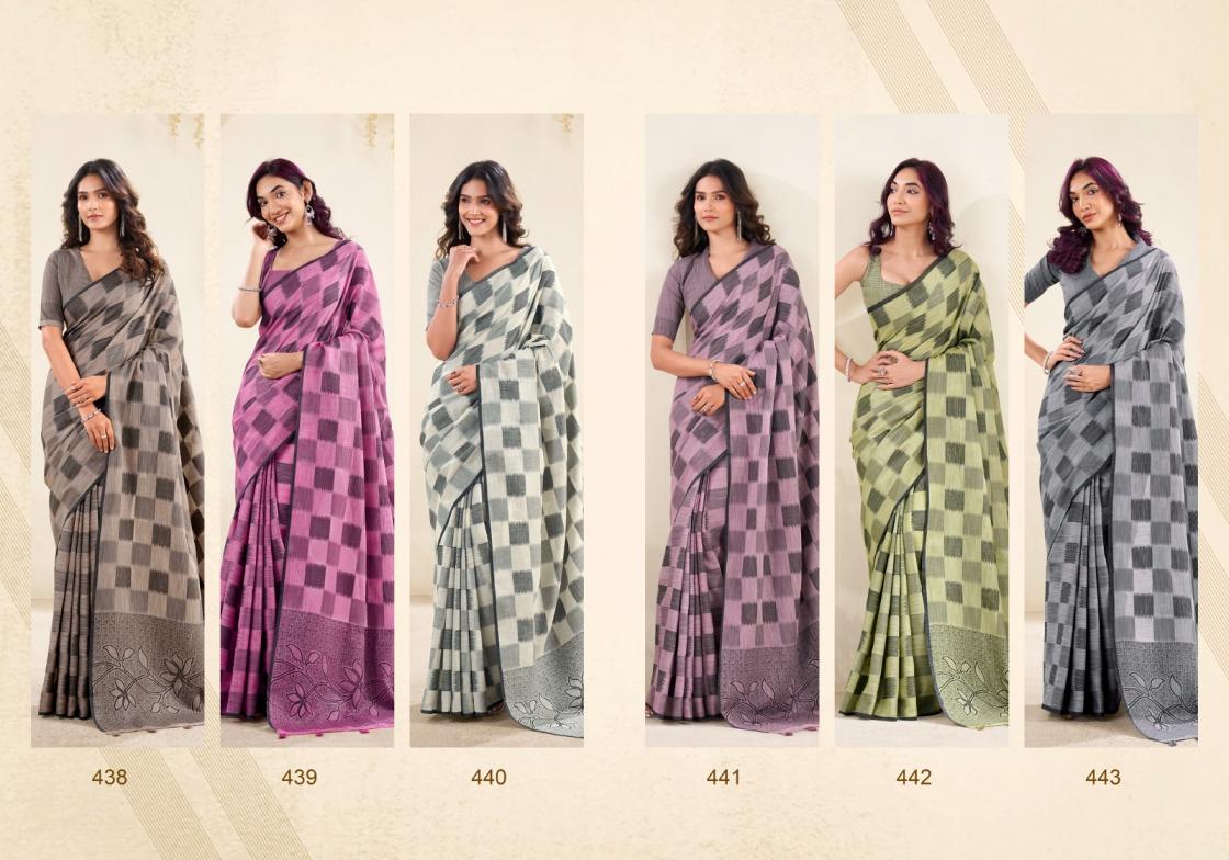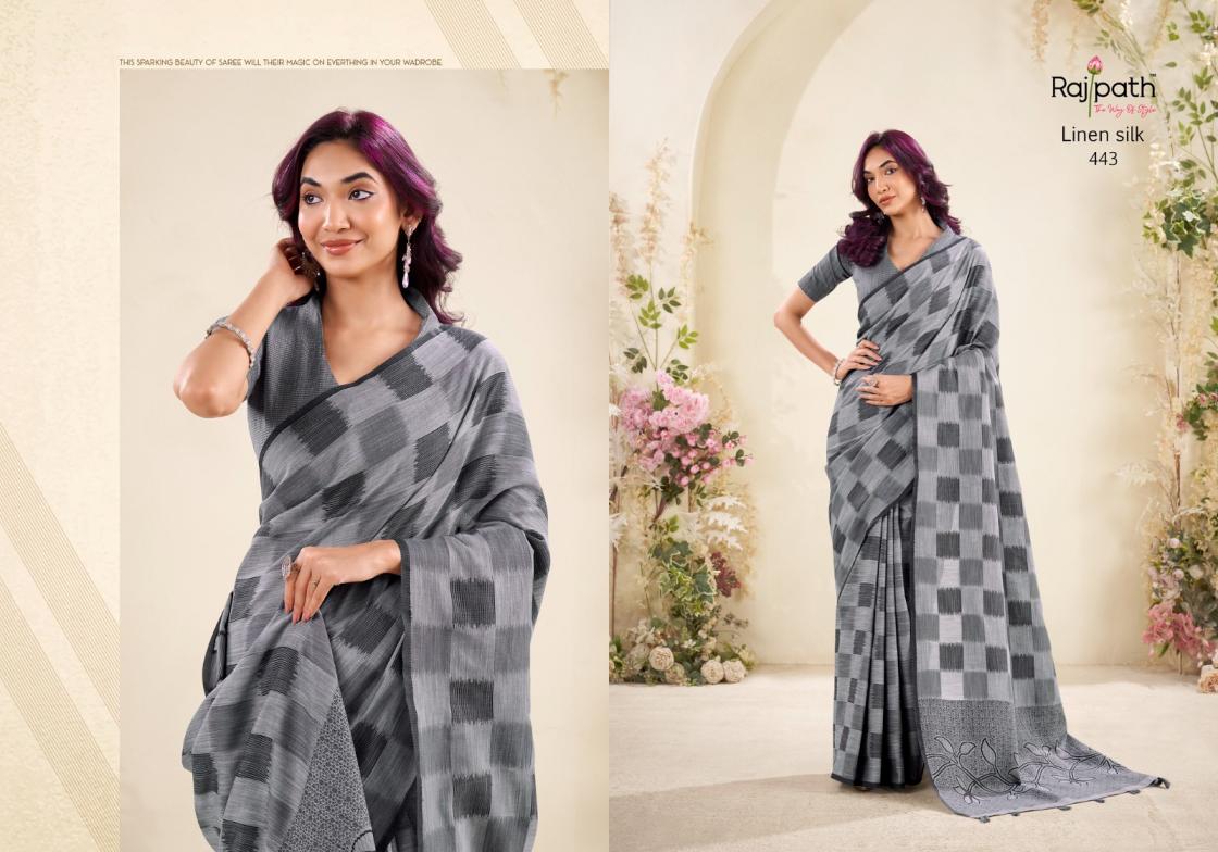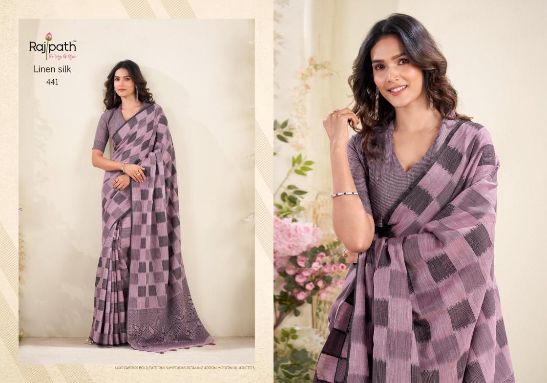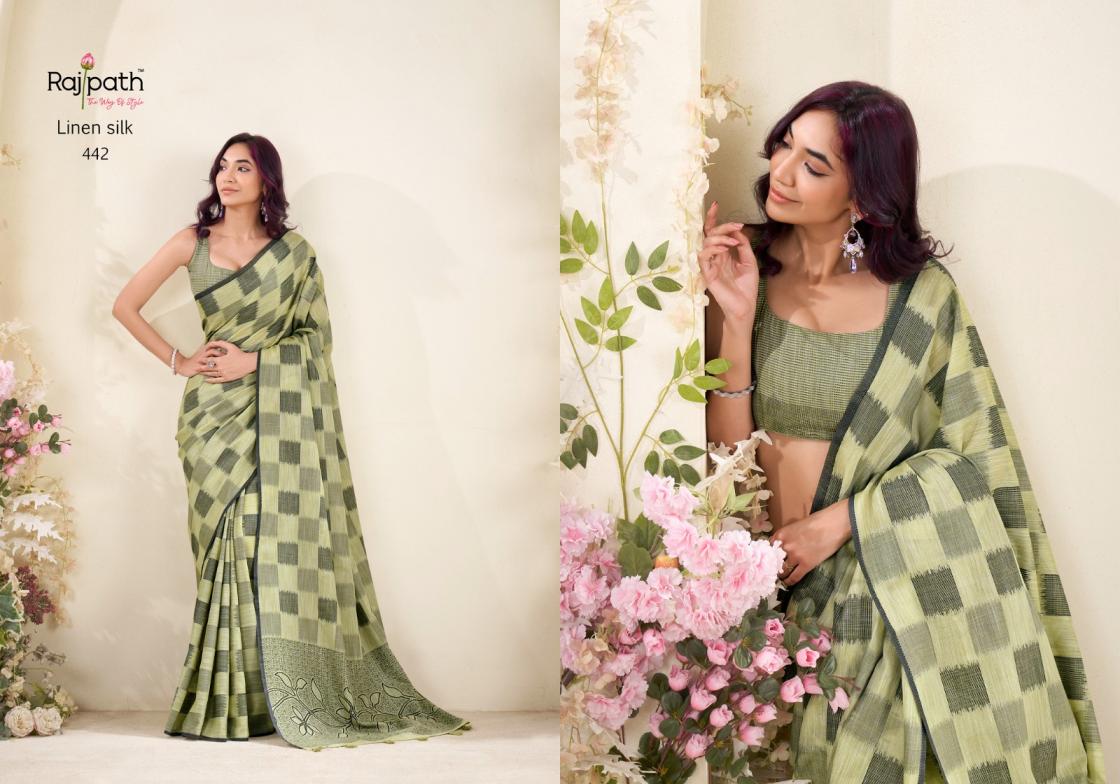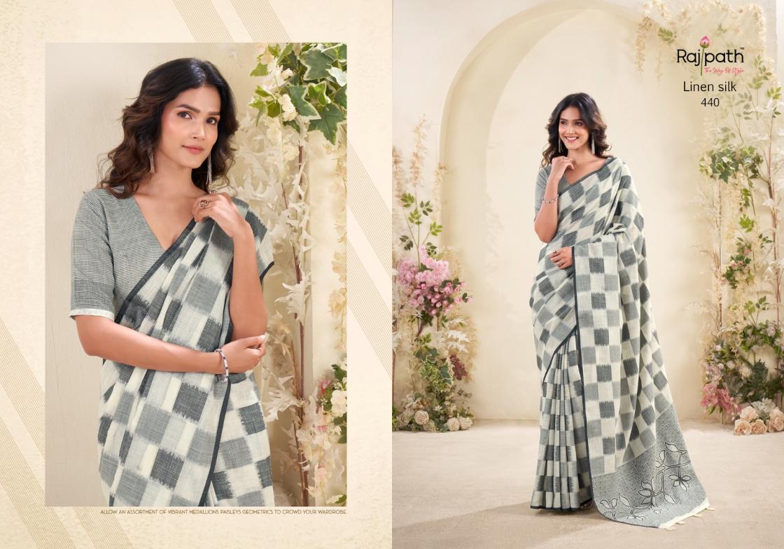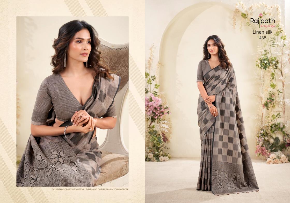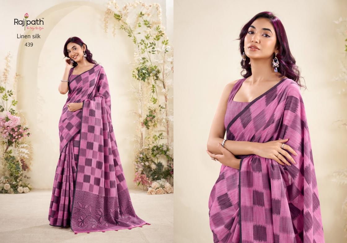 Brand : Rajpath Catalog Name : Redium Silk Series: 438 to 443 Saree Fabric : Linen Silk Checks Print Blouse Fabric : Linen Silk Checks Print Occasion : Daily Wear, Uniform Wear,Casual Wear |