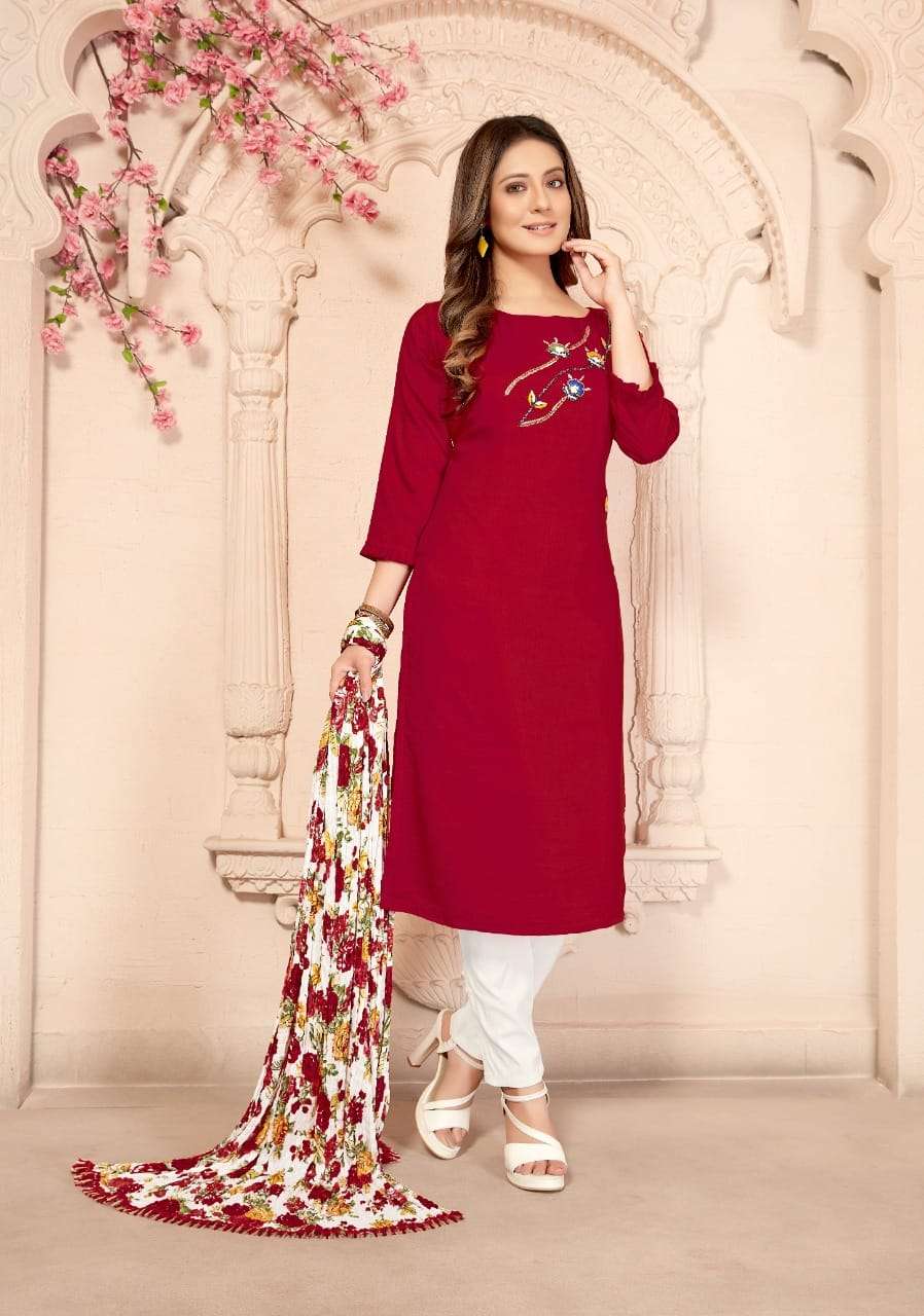 Reeti Vol 4 By Jhala Impex Maslin Silk Kurti With Dupatta