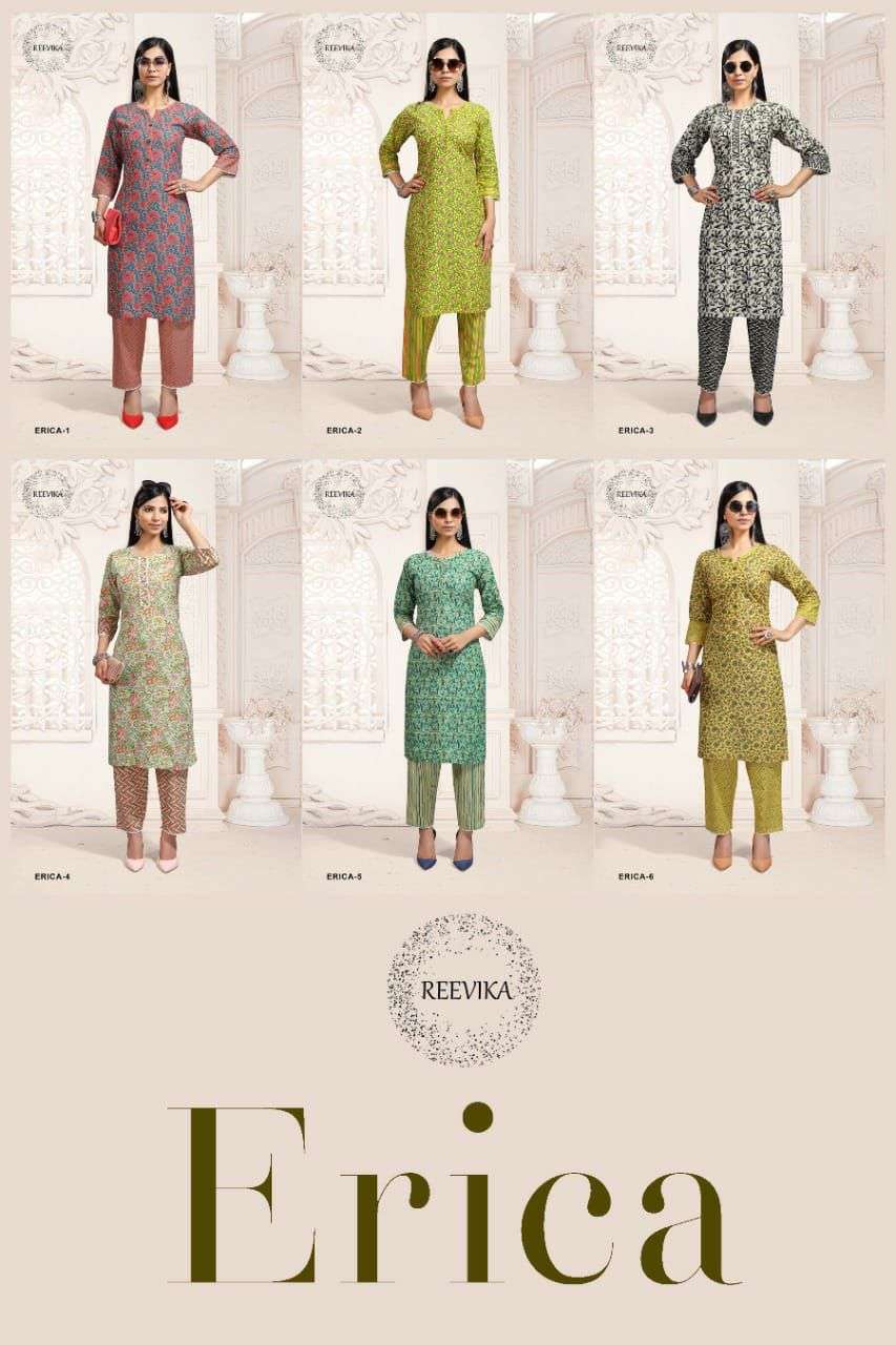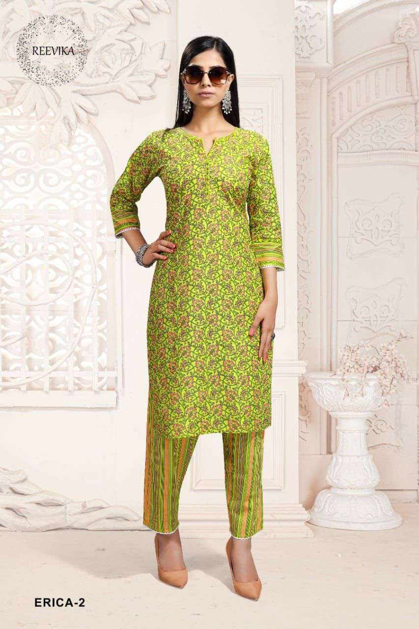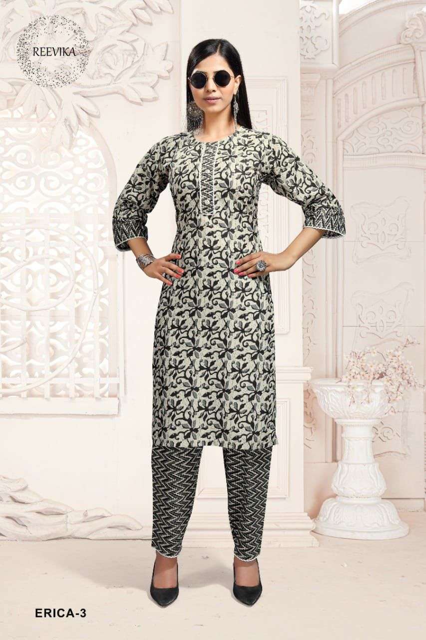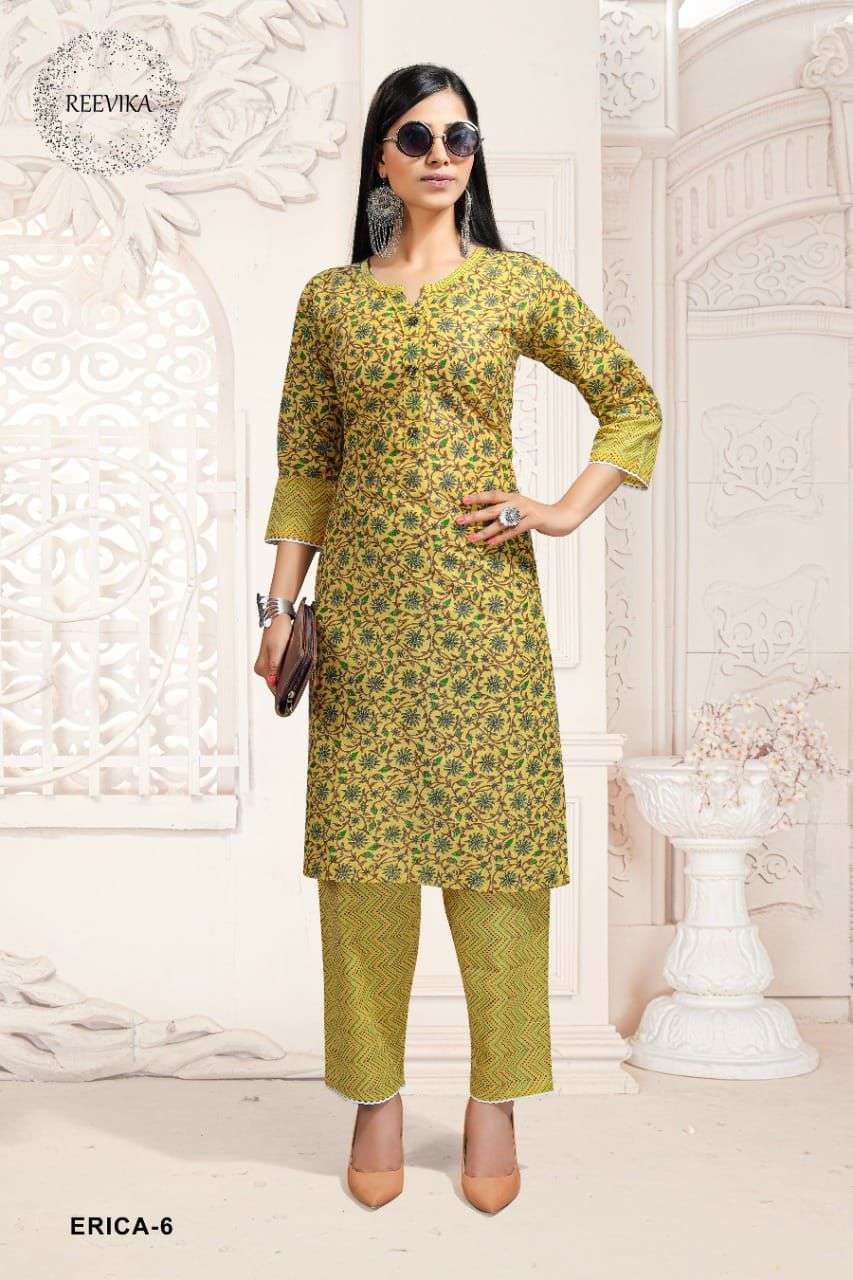 reevika erica cotton print kurti with pant set