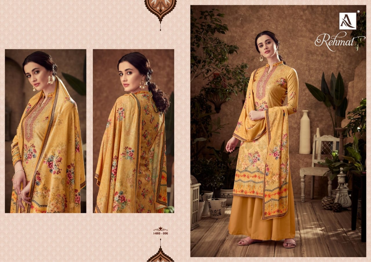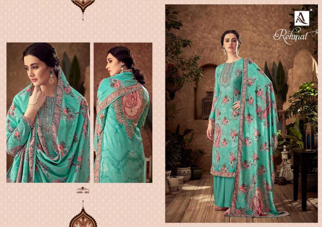 👗 Alok Suit - Make in India 👗 Launches its New Pure Pashmina Suits : REHMAT 🔸 Fabric Details 🔸 👚 Top: Pure Viscose Velvet Digital Print with Swarovski Diamond Work 👖 Bottom: Pure Wool Pashmina Solid 🏳️ Dupatta: Pure Viscose Velvet Digital Box Pallu Print Dupatta with Four Side Piping 8️⃣ Pcs in One Set RATE: 1️⃣0️⃣9️⃣9️⃣ + 5️⃣%GST |