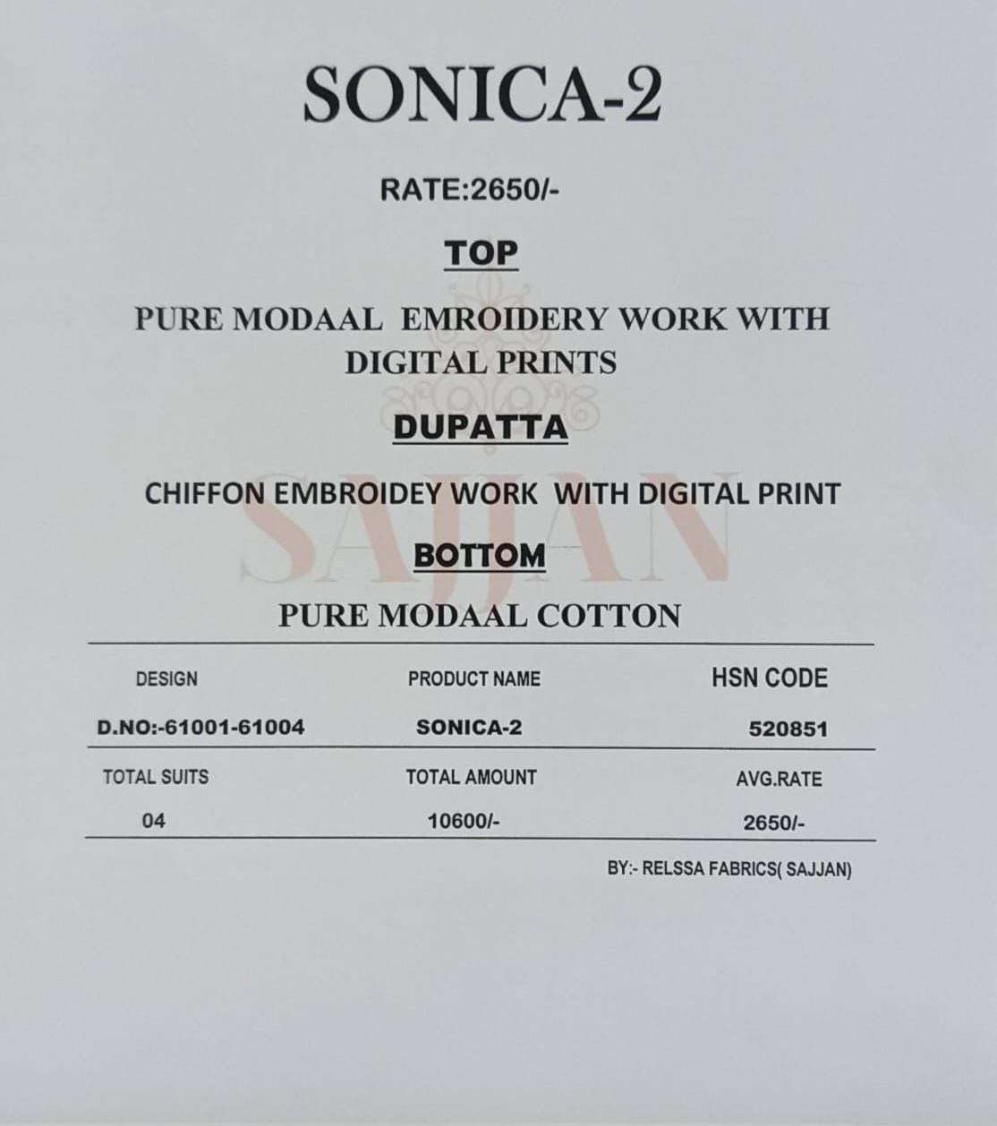 Sonica-2 by Relsaa Rate List attached Book now New book |