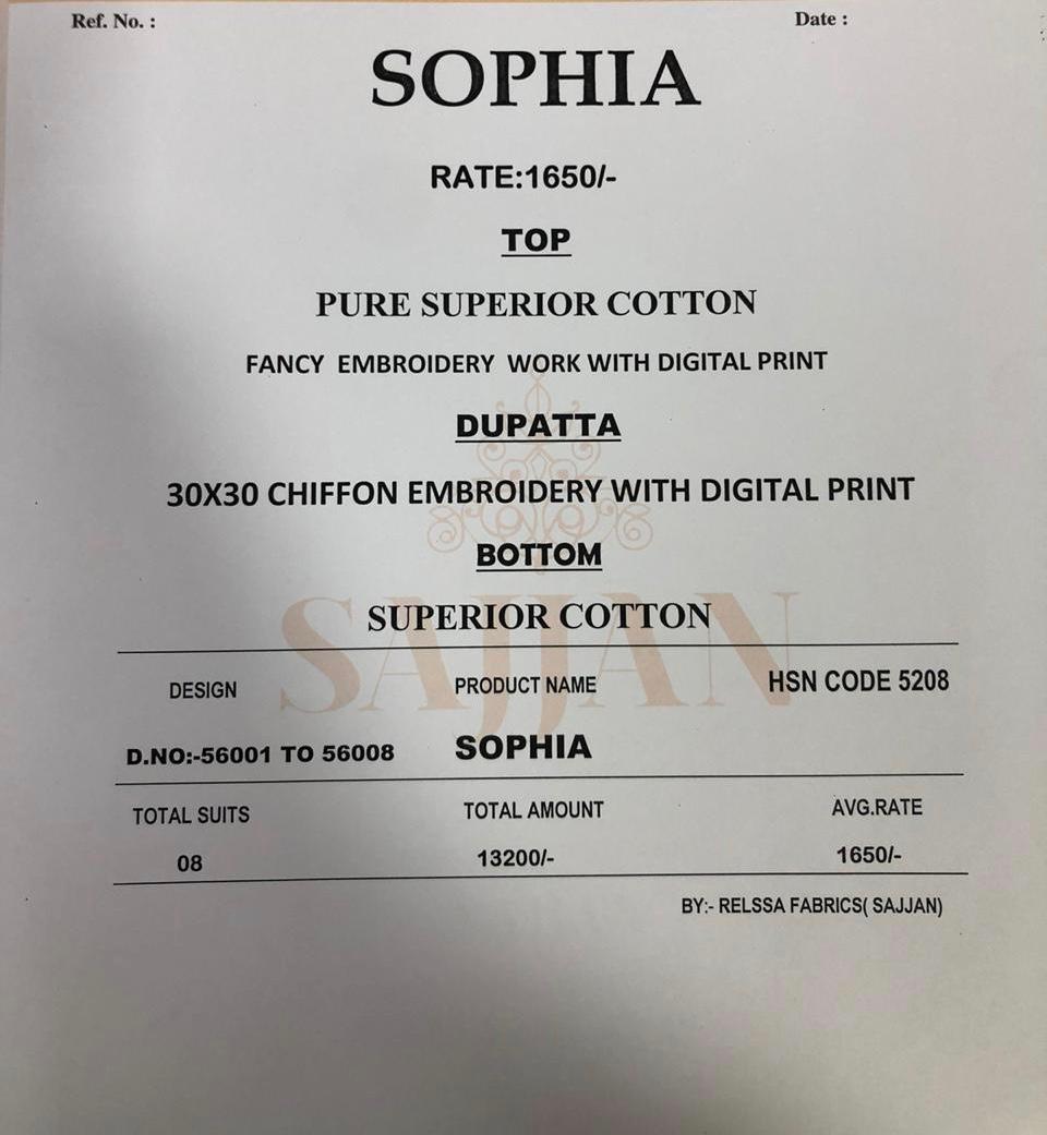 Brand - Relssa Catlog name - SOPHIA . Rate- 1650 per Pcs . Set to set. GST 5 Percent Extra. Delivery from today |