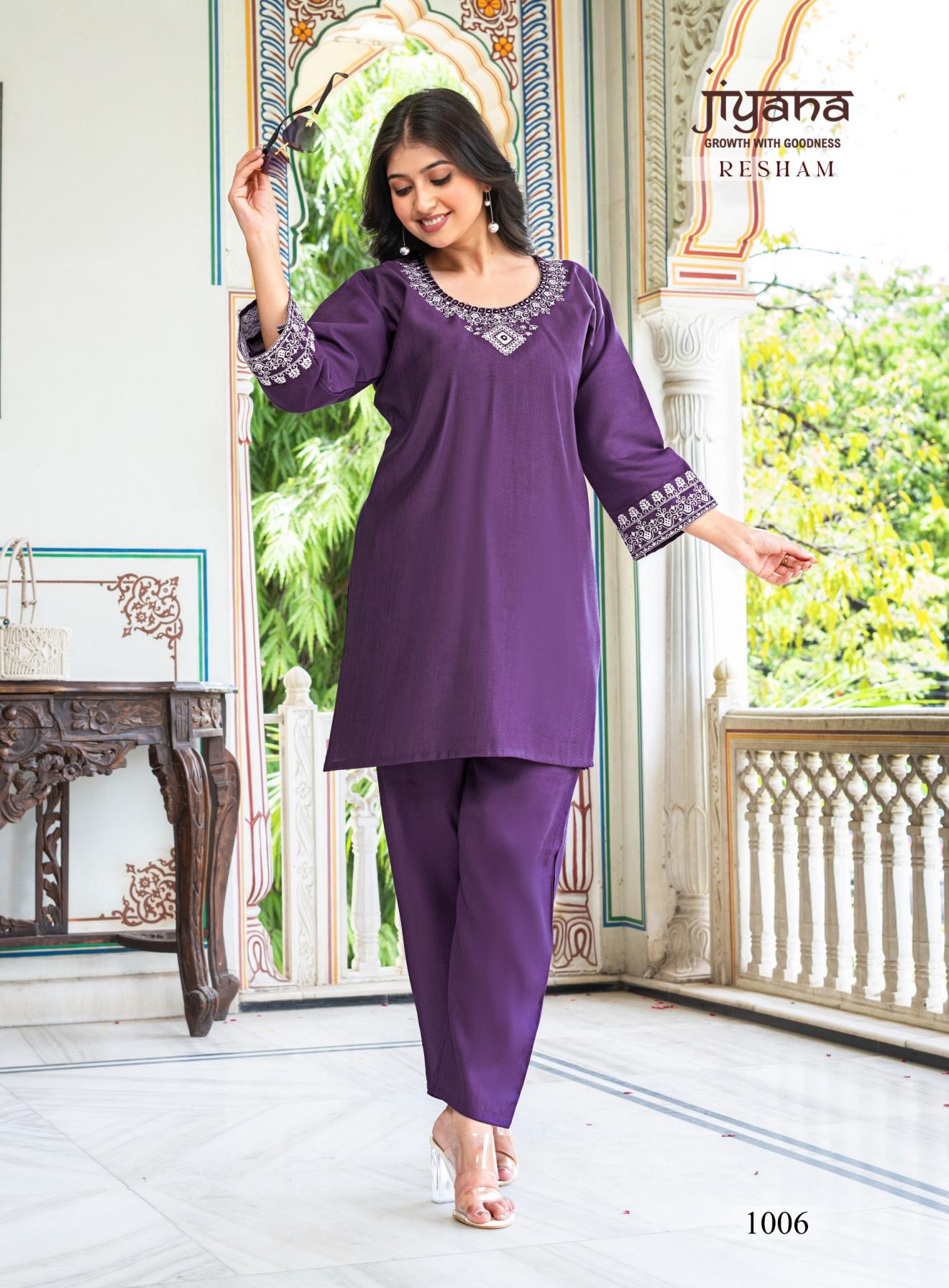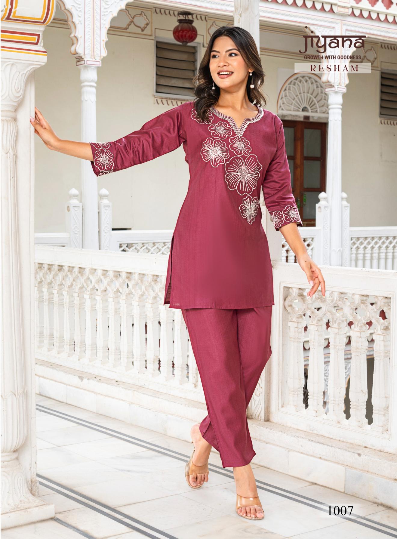 🙏🏻JIYANA🙏🏻 (REDYMADE CATALOGUE) 👗RESHAM👗 COARD SET ✅TOP: VARTICAN FABRIC ✅BOTTOM: VERICAN FABRIC PENT ✅SIZE: M,L,XL,XXL ✅SUPER QUALITY FABRICS |