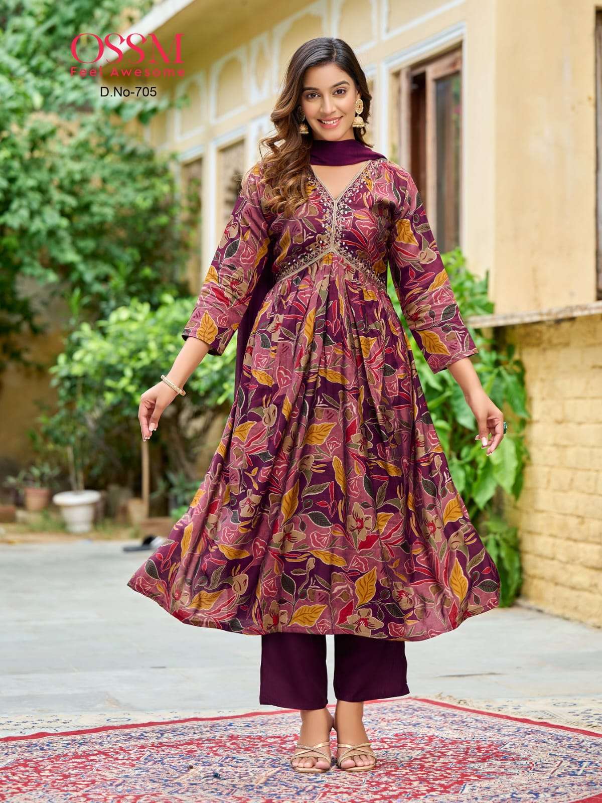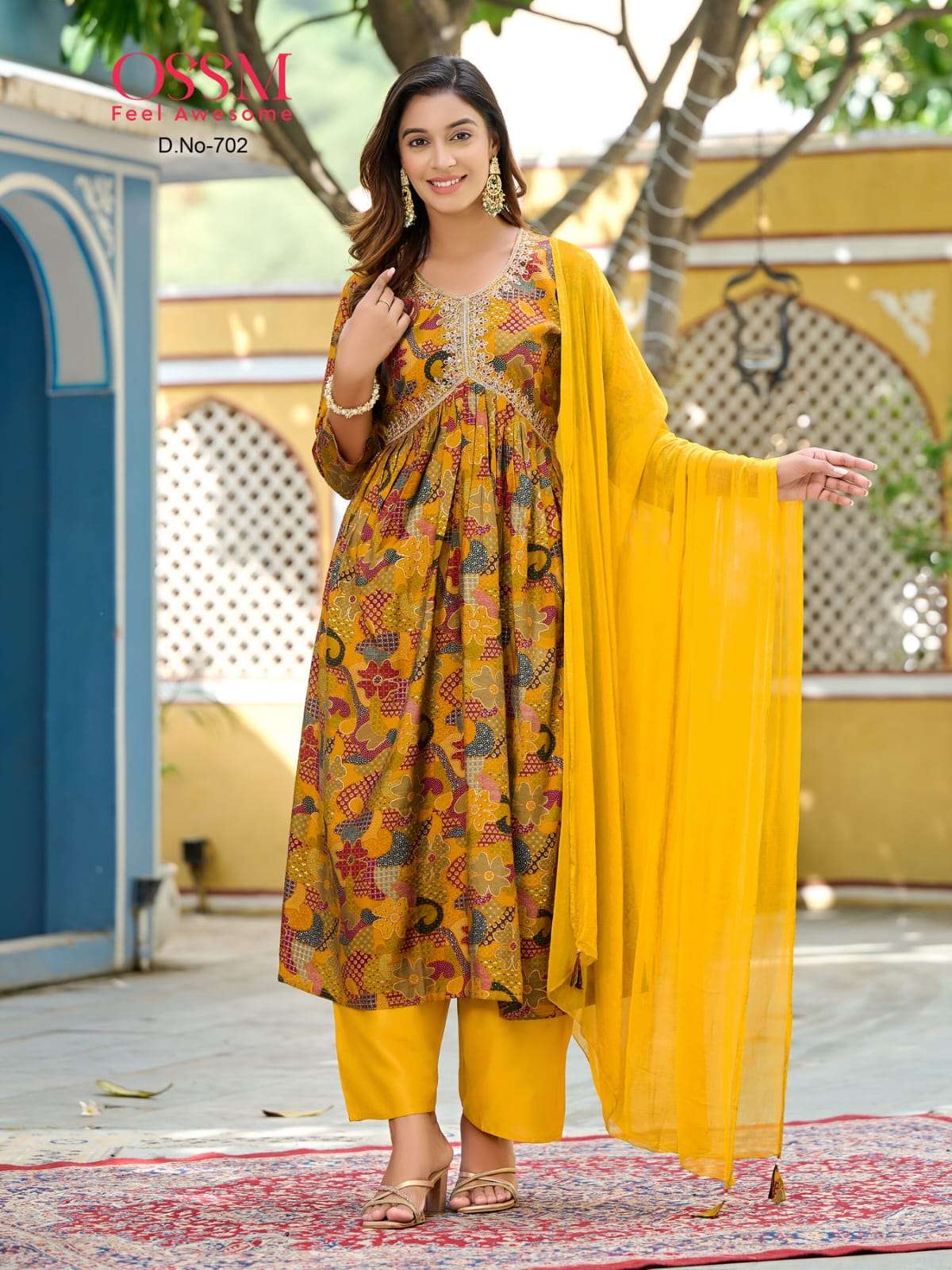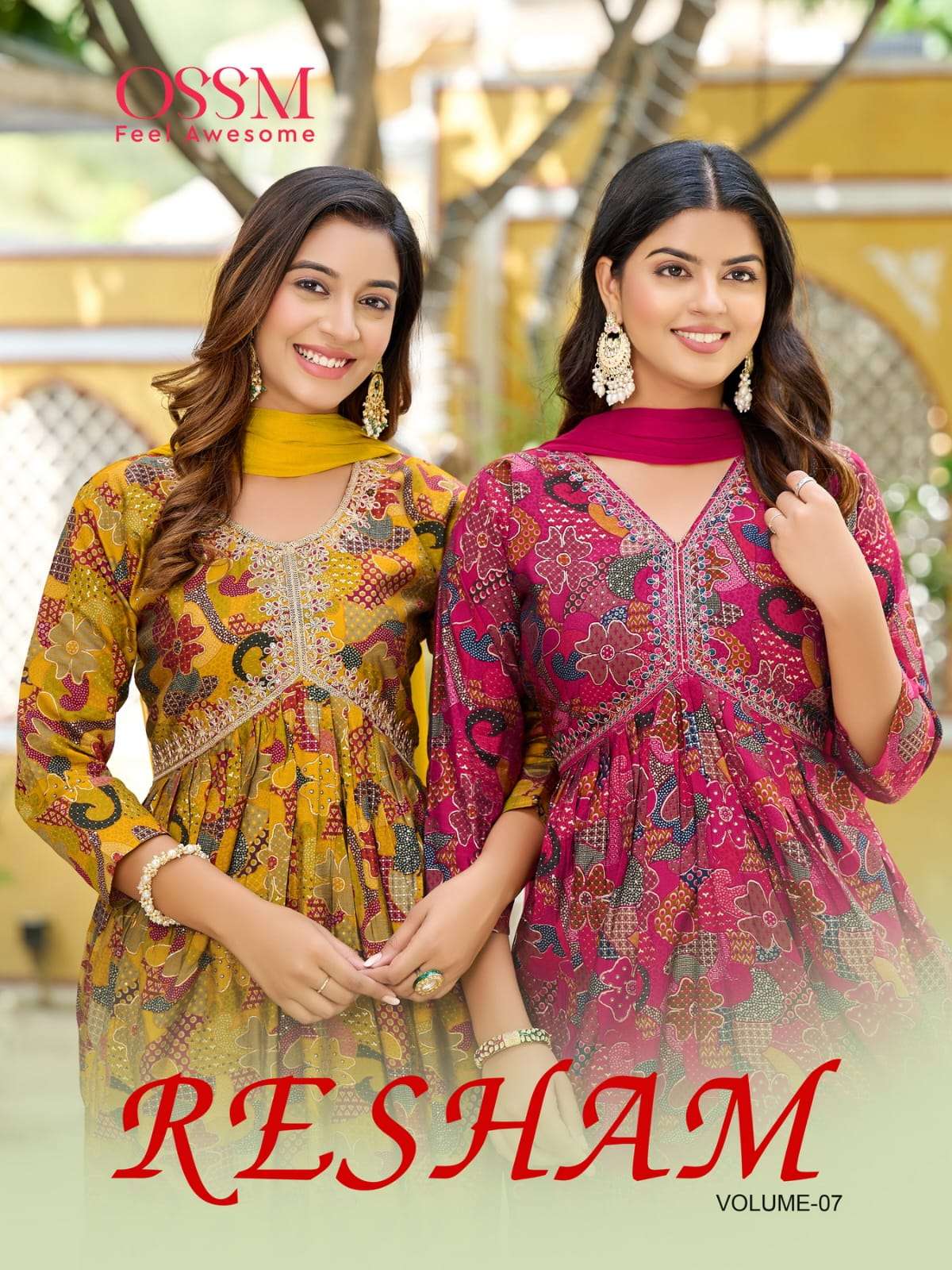 resham vol 7 by ossm fancy alia cut kurti with pant and nazneen dupatta catalog