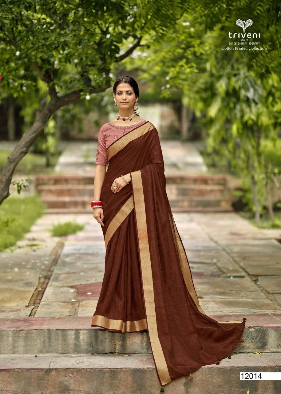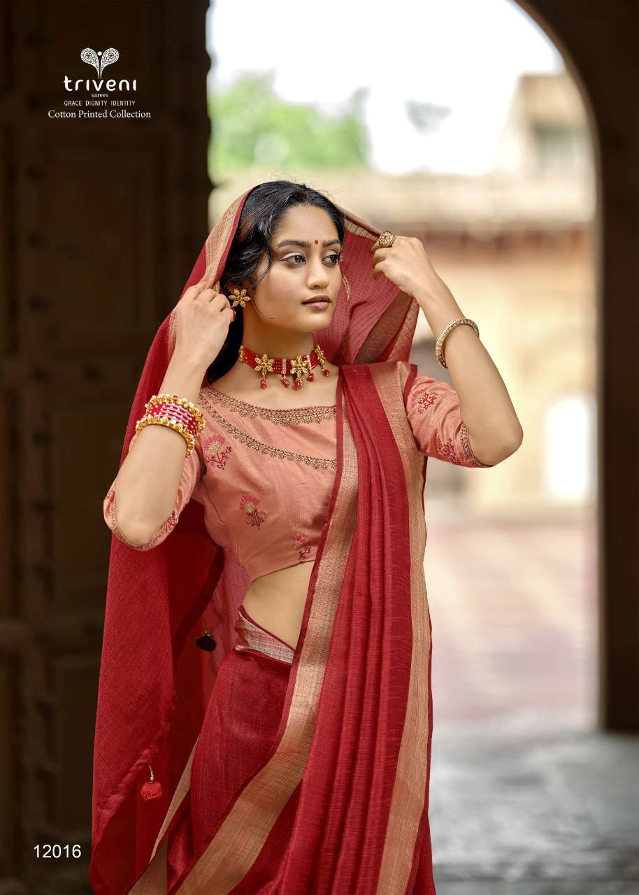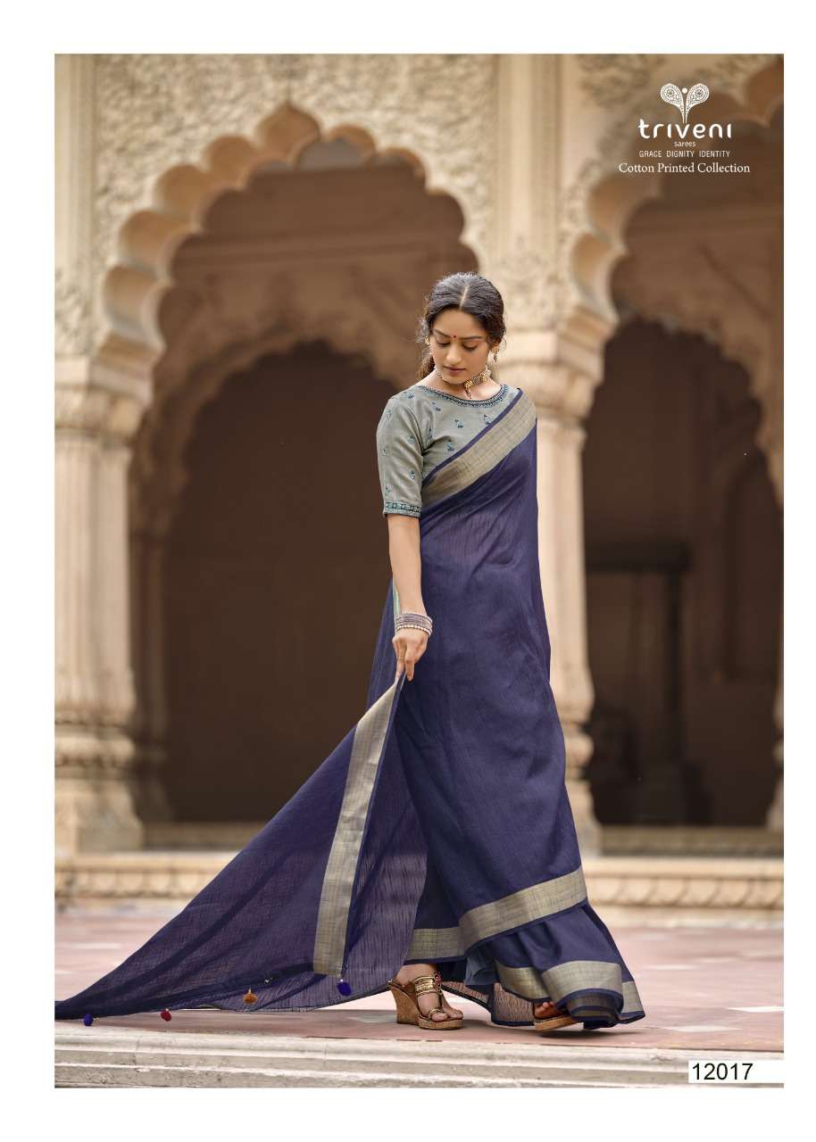 Triveni Sarees Catalogue - Reshma Fabric - Cotton Linen Print, Embroidered blouse Rate - per PCâs  - 621 Set to set |