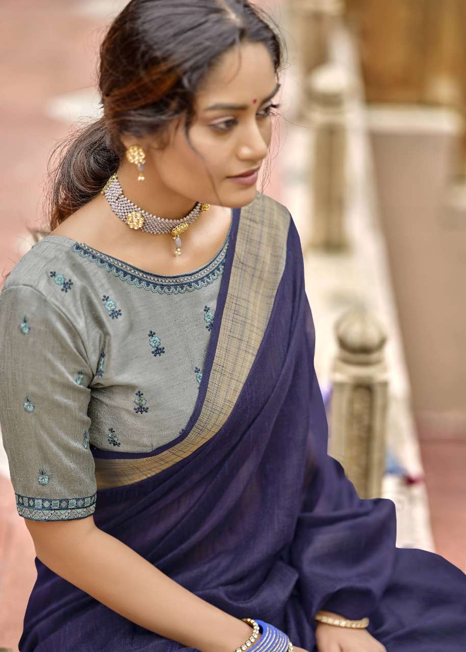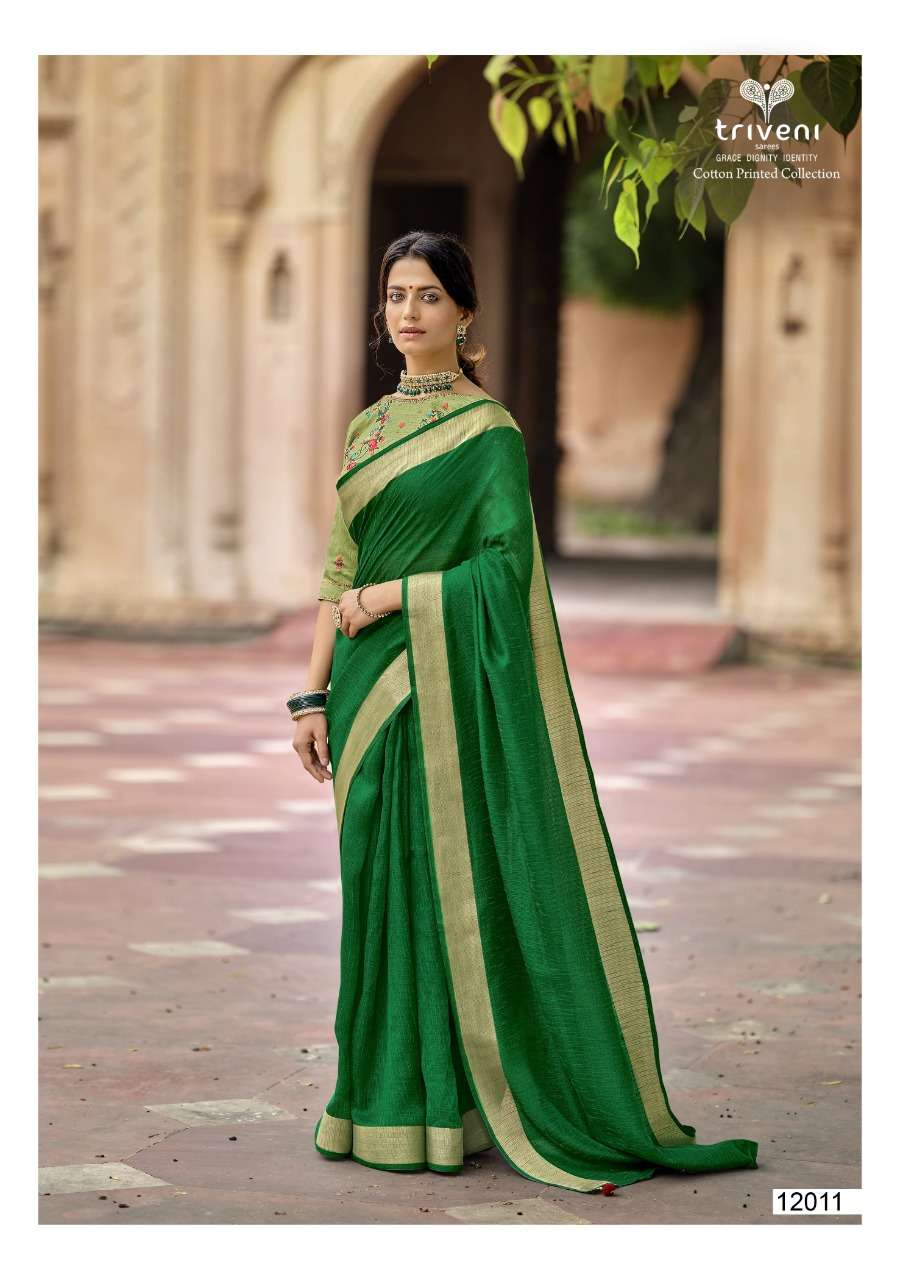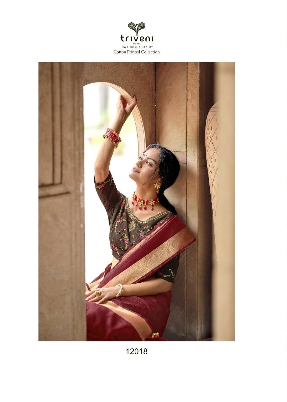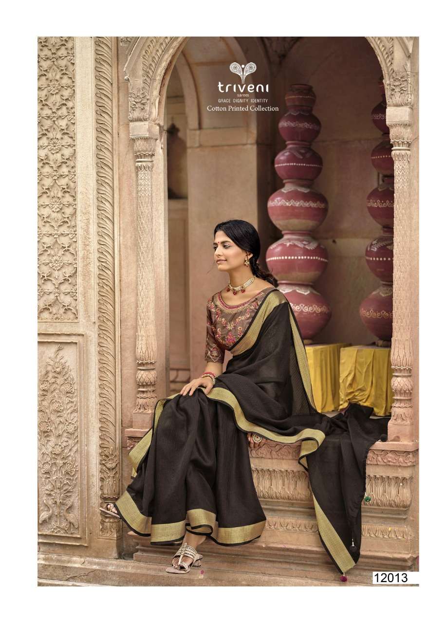 Triveni Sarees Catalogue - Reshma Fabric - Cotton Linen Print, Embroidered blouse Rate - per PCâs  - 621 Set to set |
