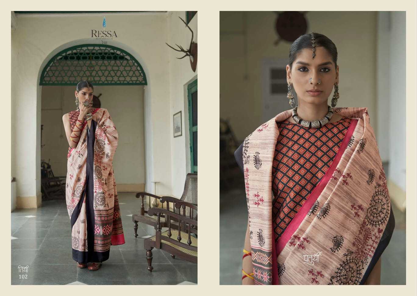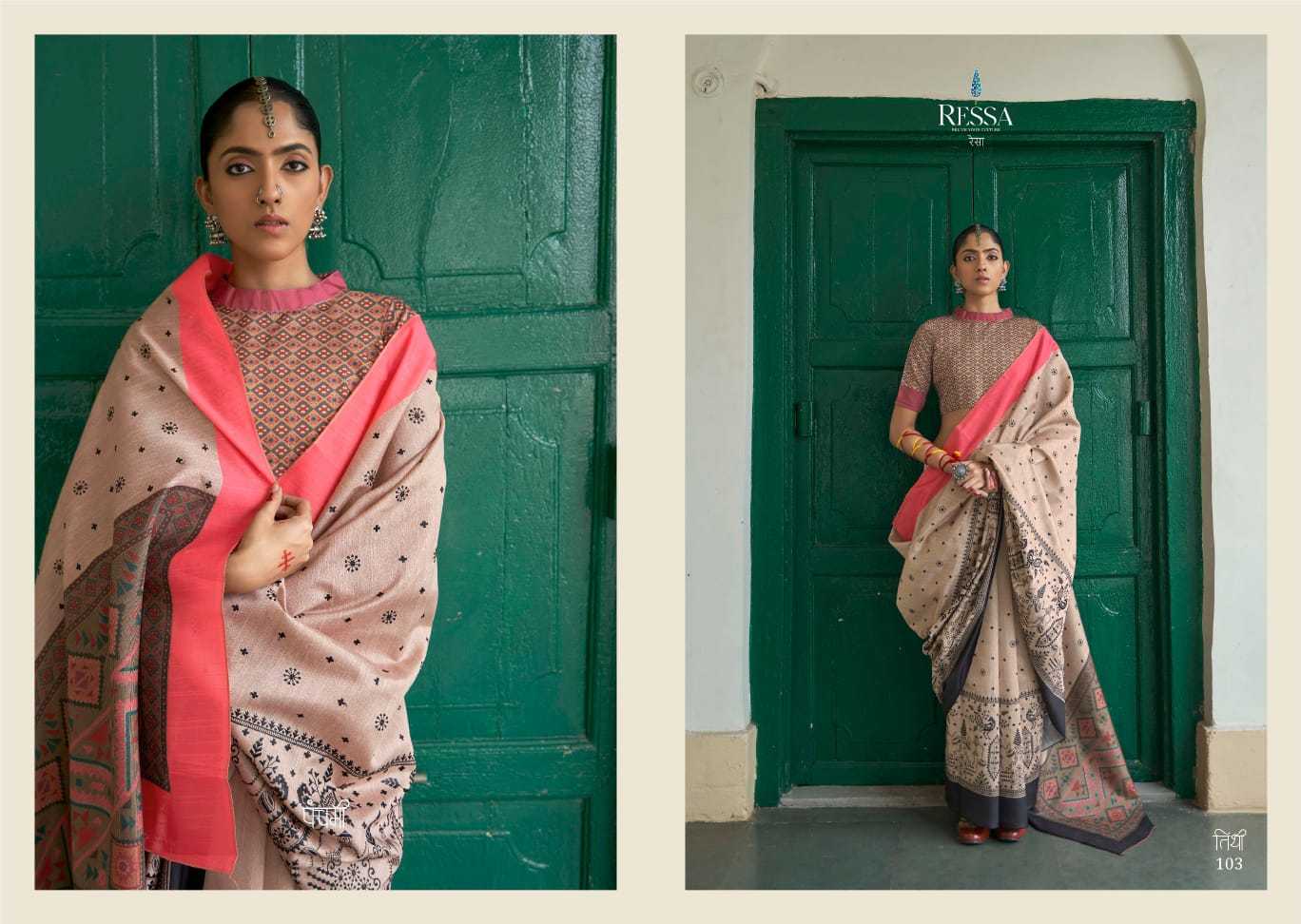 ressa presents tithi fancy mikora silk exclusive designer saree wholesaler