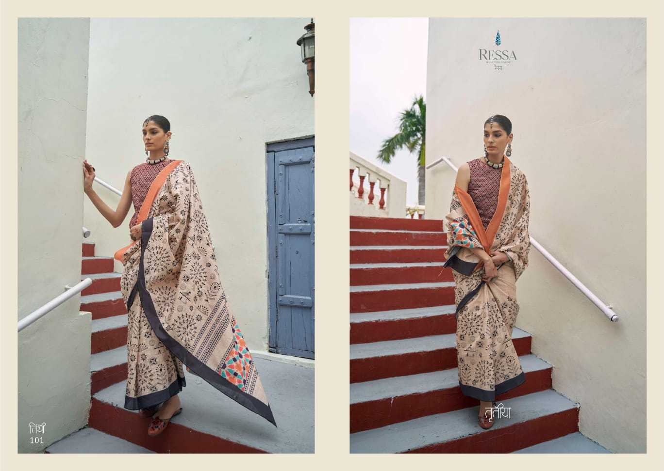 🇮🇳 Premium saree collection by Launched new catalogue - Tithi Fabric - Mikora Silk Classic colour combinations with perfection!! Relive with Ressa RATE - 1575/- per pcs GST EXTRA Set to set |