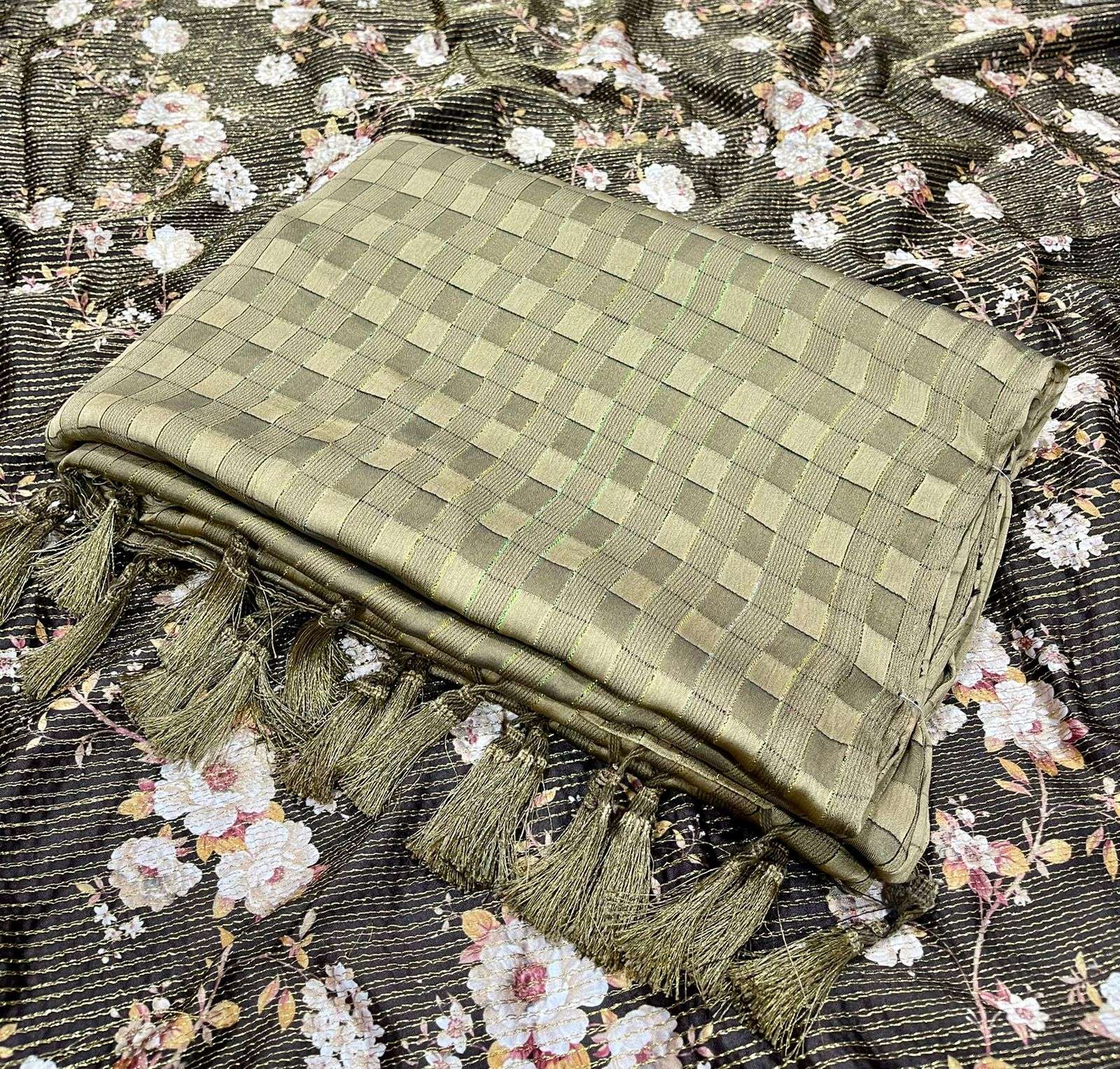 REVANTA COMBO 🌻 LOTUS 🌻 RATE - ₹595/- FABRIC - *Rainbow Jari Checks With Digital Zari Blouse * Set to set Set - 10 pc 🌻 आपका विश्वास हमारी पहचान 🌻 |