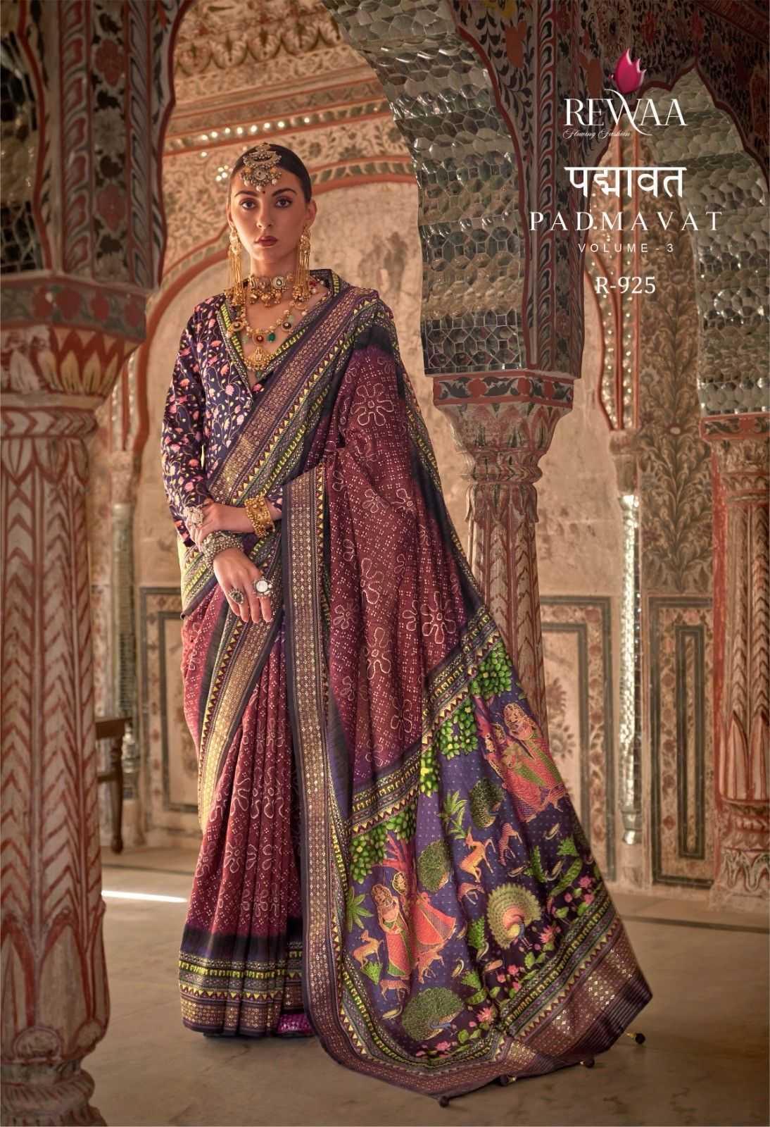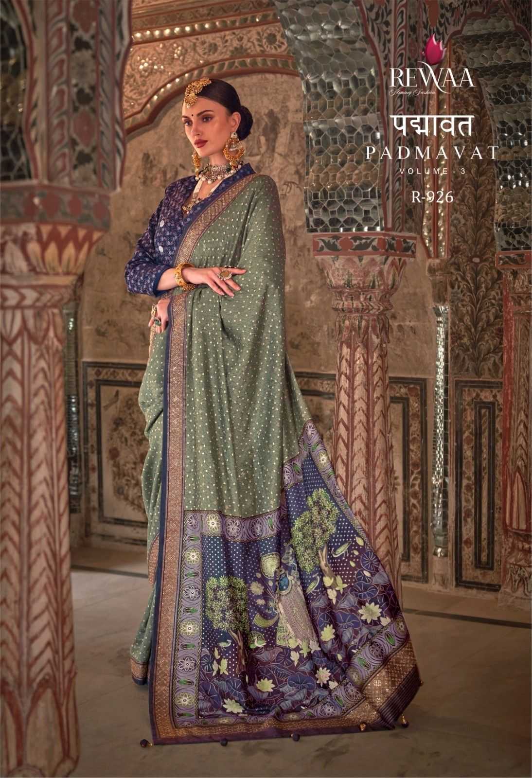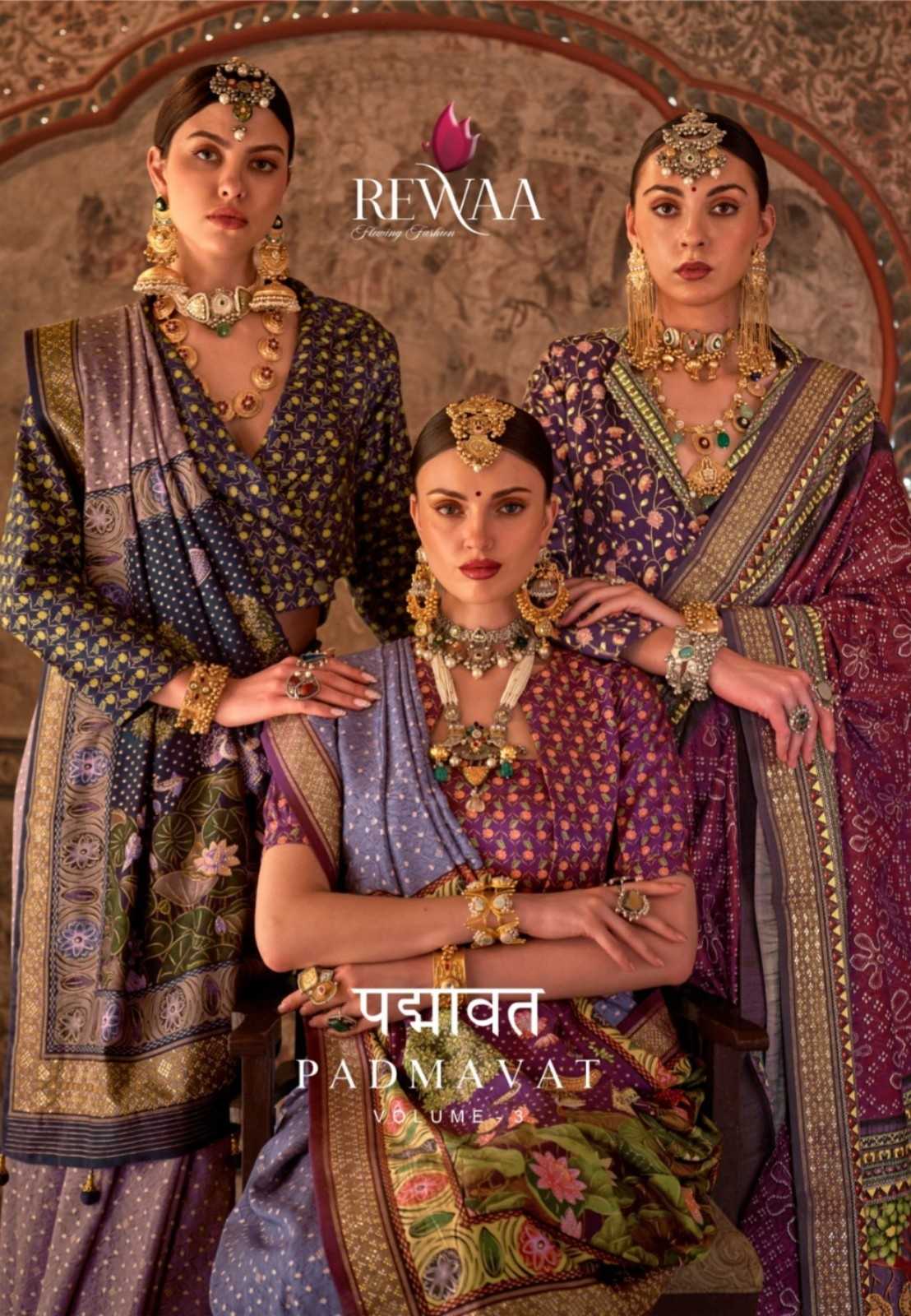 rewaa padmavat vol 3 hit design viscose silk party wear saree supplier