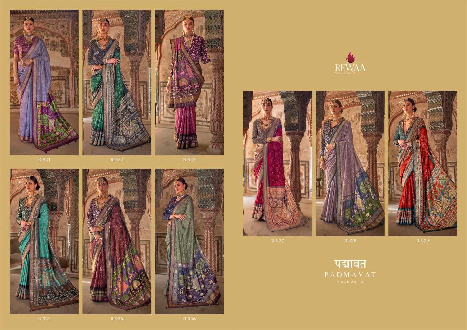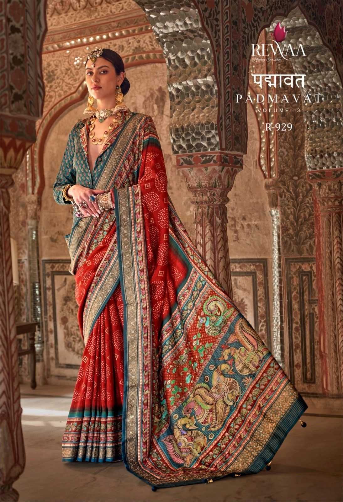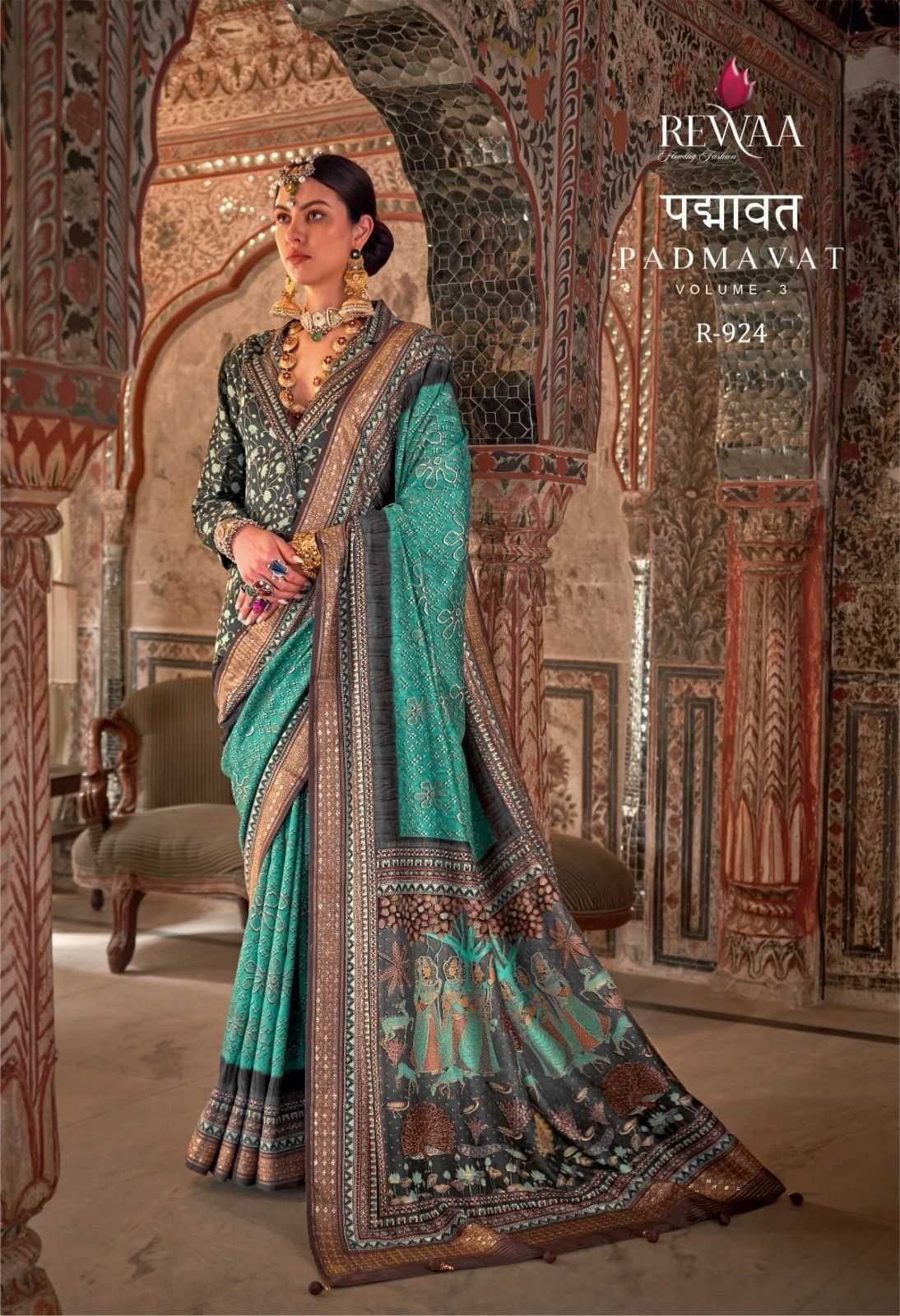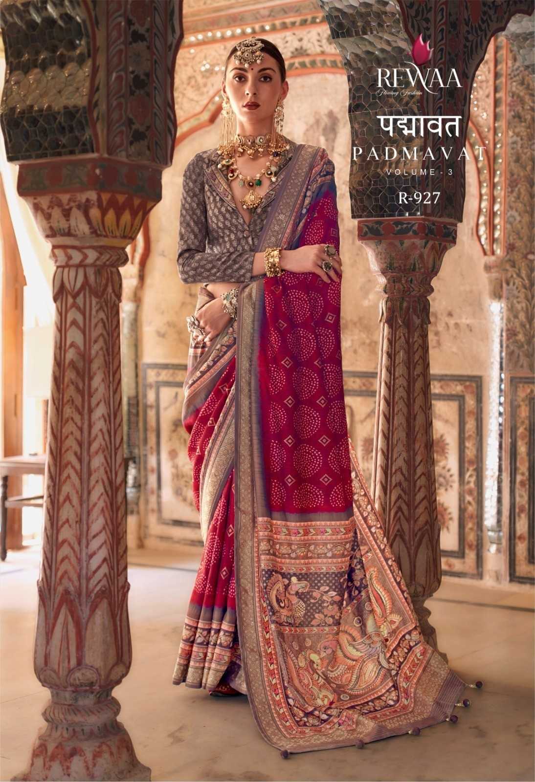 rewaa padmavat vol 3 hit design viscose silk party wear saree supplier