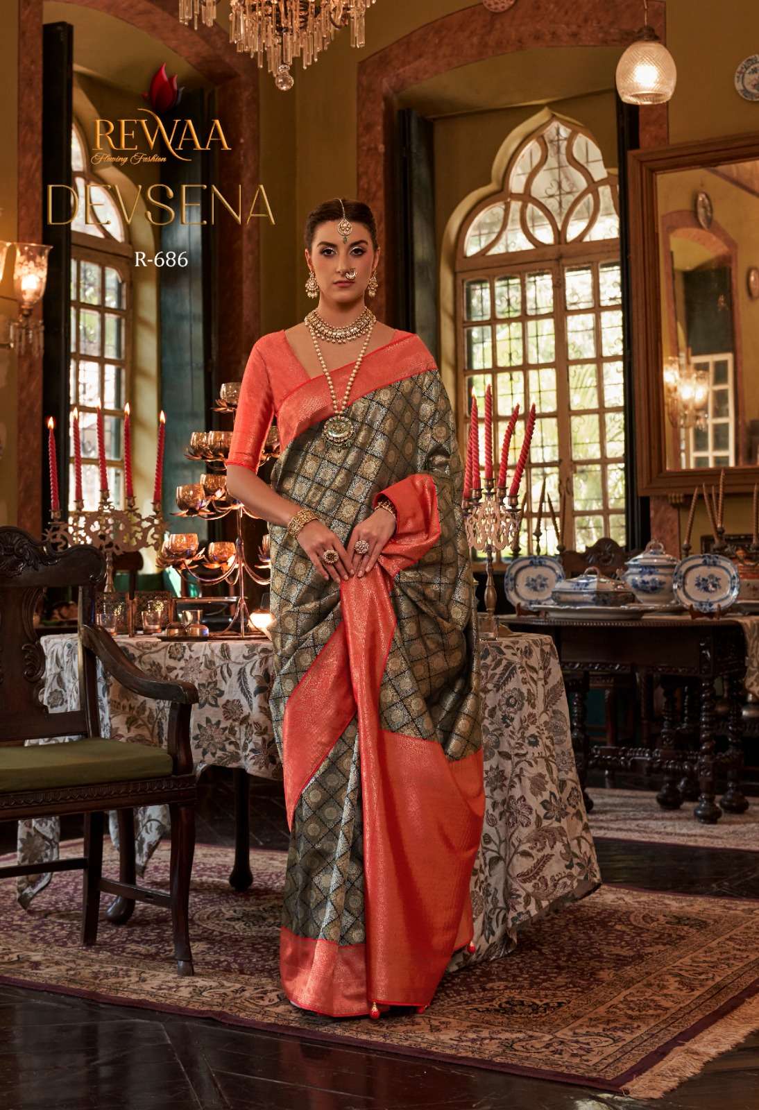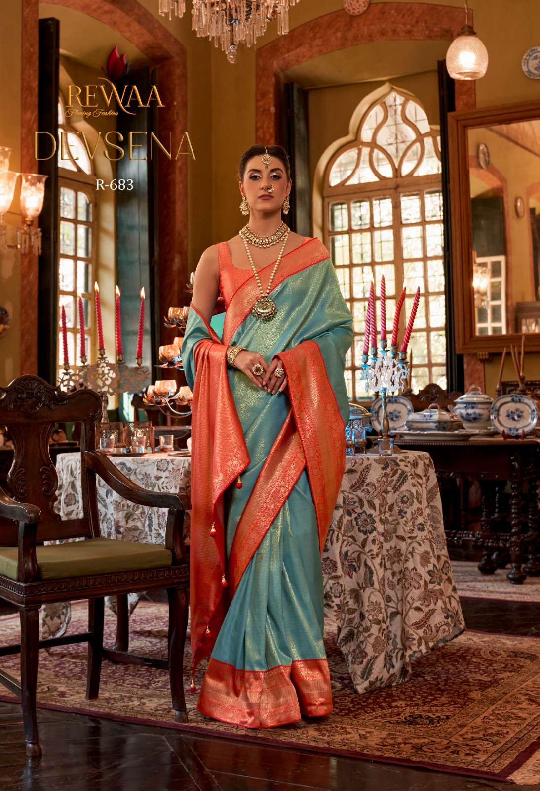rewaa present devsena 680-688 wedding wear kanjivaram silk sarees supplier