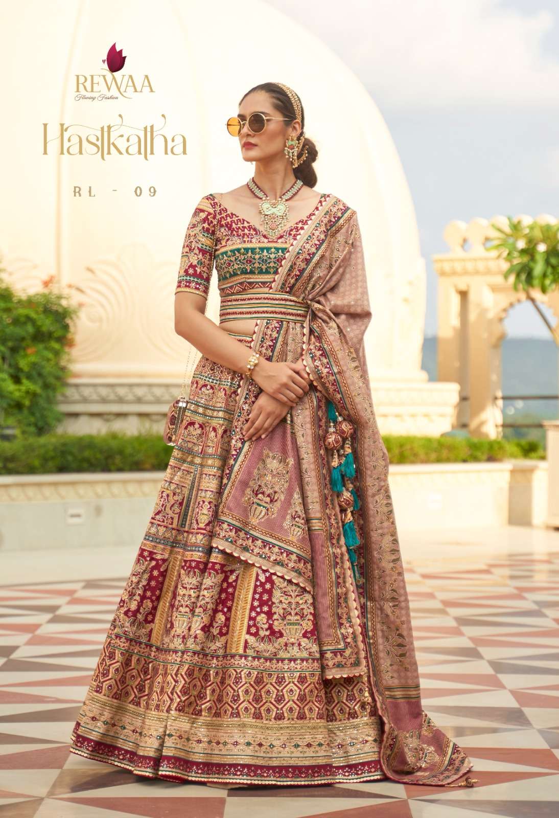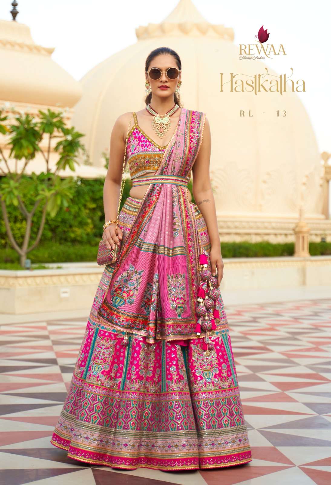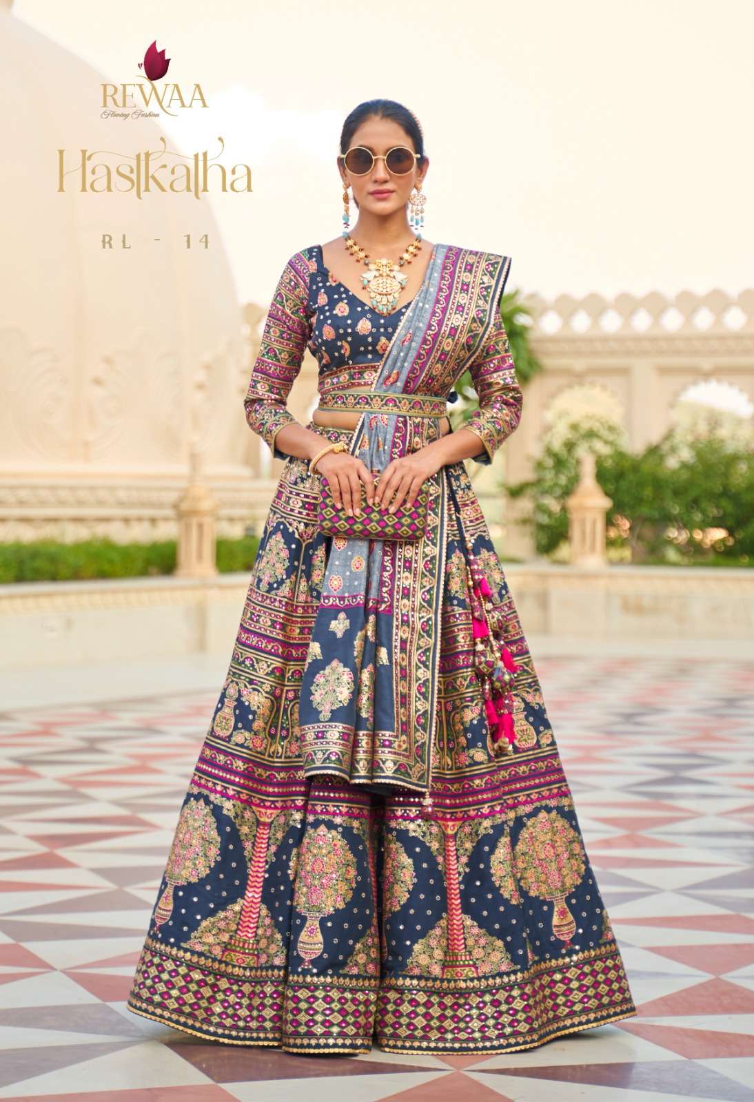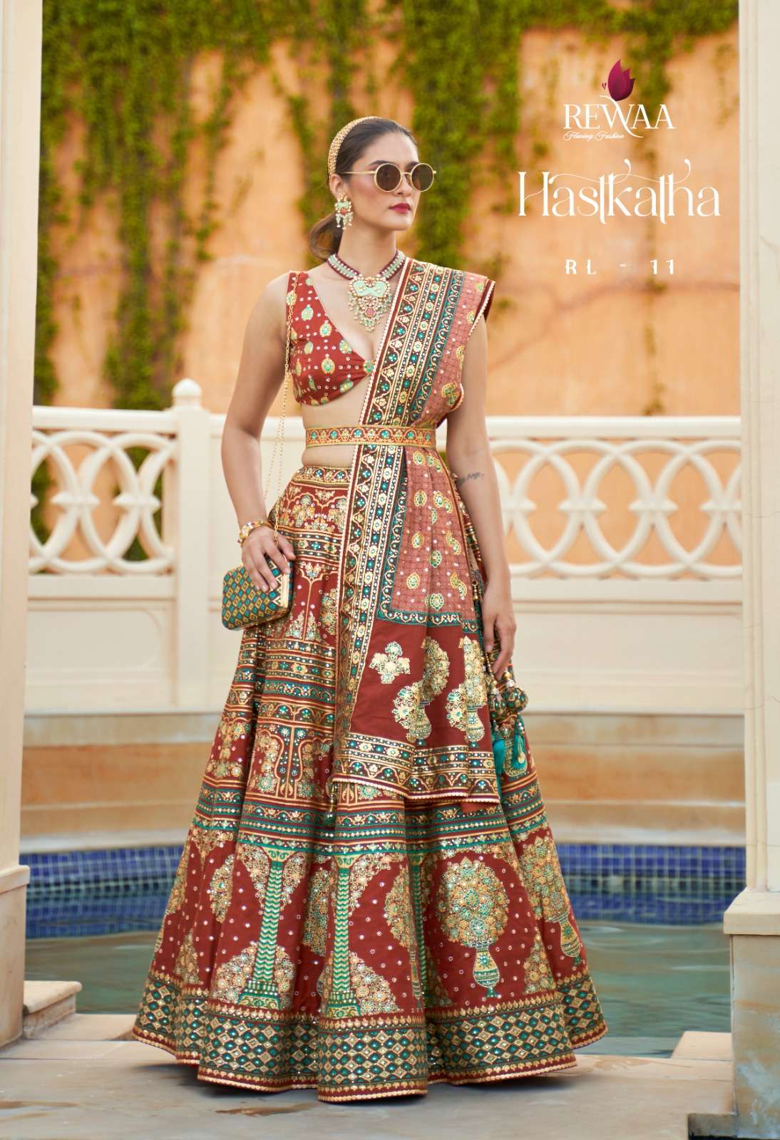 rewaa present hastkatha designer work readymade lehenga with unstitch blouse and dupatta