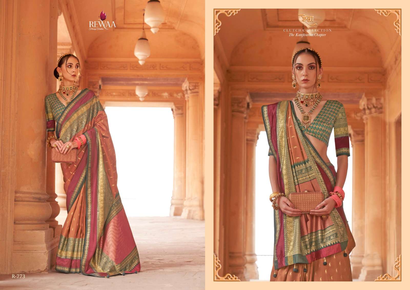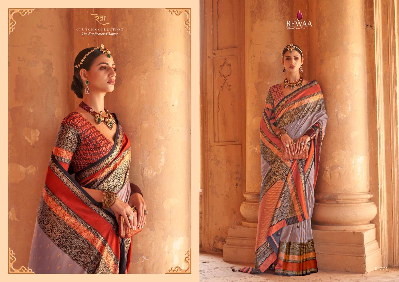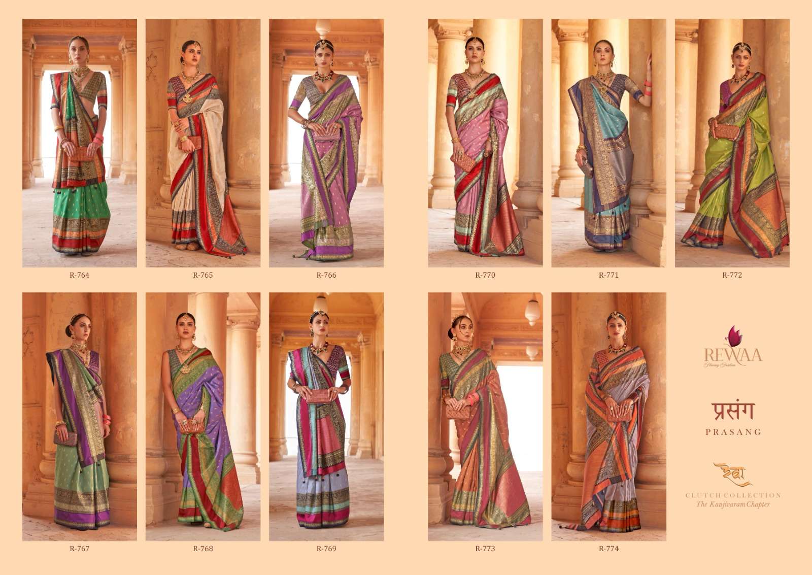 BRAND : REWAA CATLOG : PRASANG ITS A KANJIVARAM LOOK SAREES FABRIC : SUPER V.B SILK WITH ELITE GOLD FINISH* ︎WITH UNIQUE KANJIVARAM DESIGN WITH PATOLA BLOUSE AND ELEGANT GOLD PRINT WITH EXCLUSIVE MATCHING CLUTCH AND SAREE BROOCH WITH EXCLUSIVE BOX PACKING PRICE :- 2995 +5% GST EXTRA CATALOGUE DETAILS:- ︎11 PCS CATALOGUE |