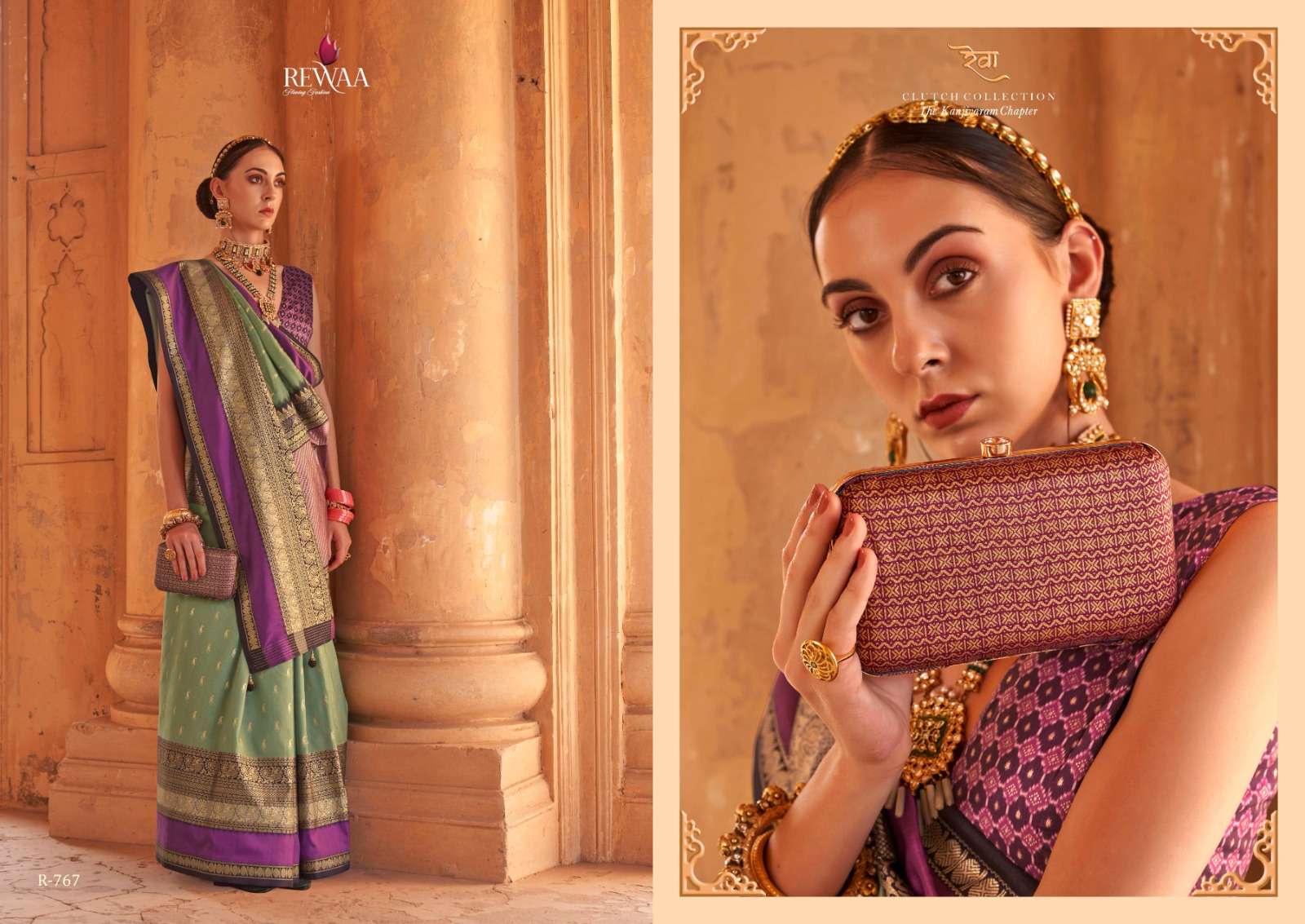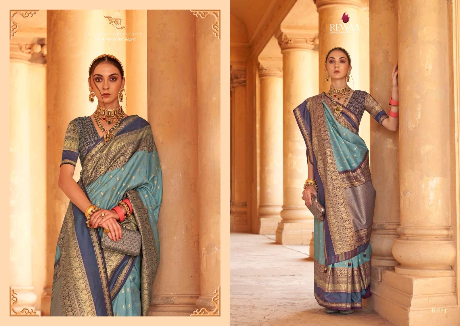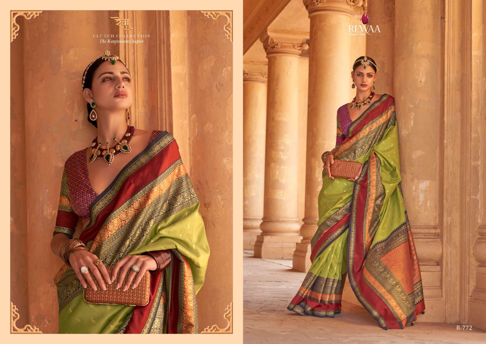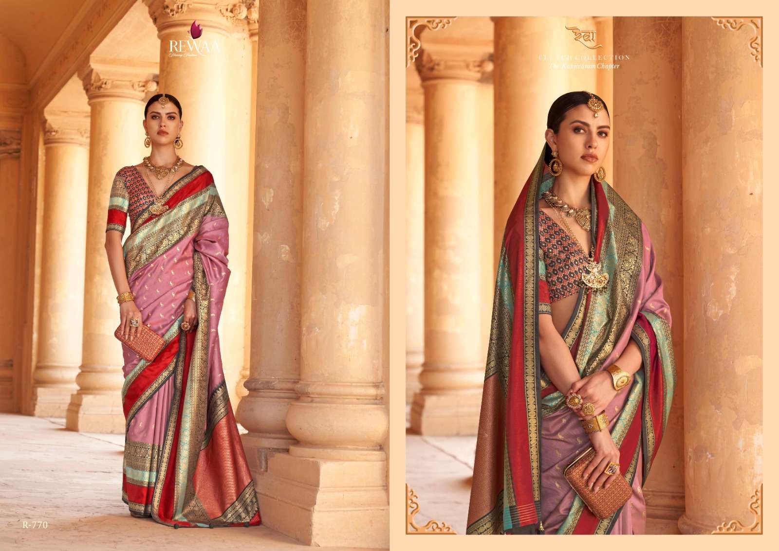 BRAND : REWAA CATLOG : PRASANG ITS A KANJIVARAM LOOK SAREES FABRIC : SUPER V.B SILK WITH ELITE GOLD FINISH* ︎WITH UNIQUE KANJIVARAM DESIGN WITH PATOLA BLOUSE AND ELEGANT GOLD PRINT WITH EXCLUSIVE MATCHING CLUTCH AND SAREE BROOCH WITH EXCLUSIVE BOX PACKING PRICE :- 2995 +5% GST EXTRA CATALOGUE DETAILS:- ︎11 PCS CATALOGUE |
