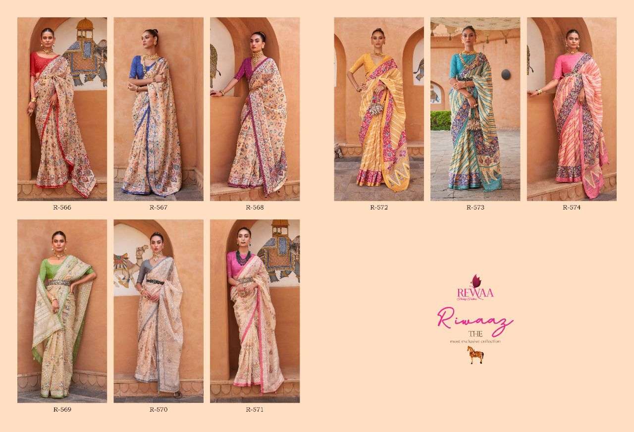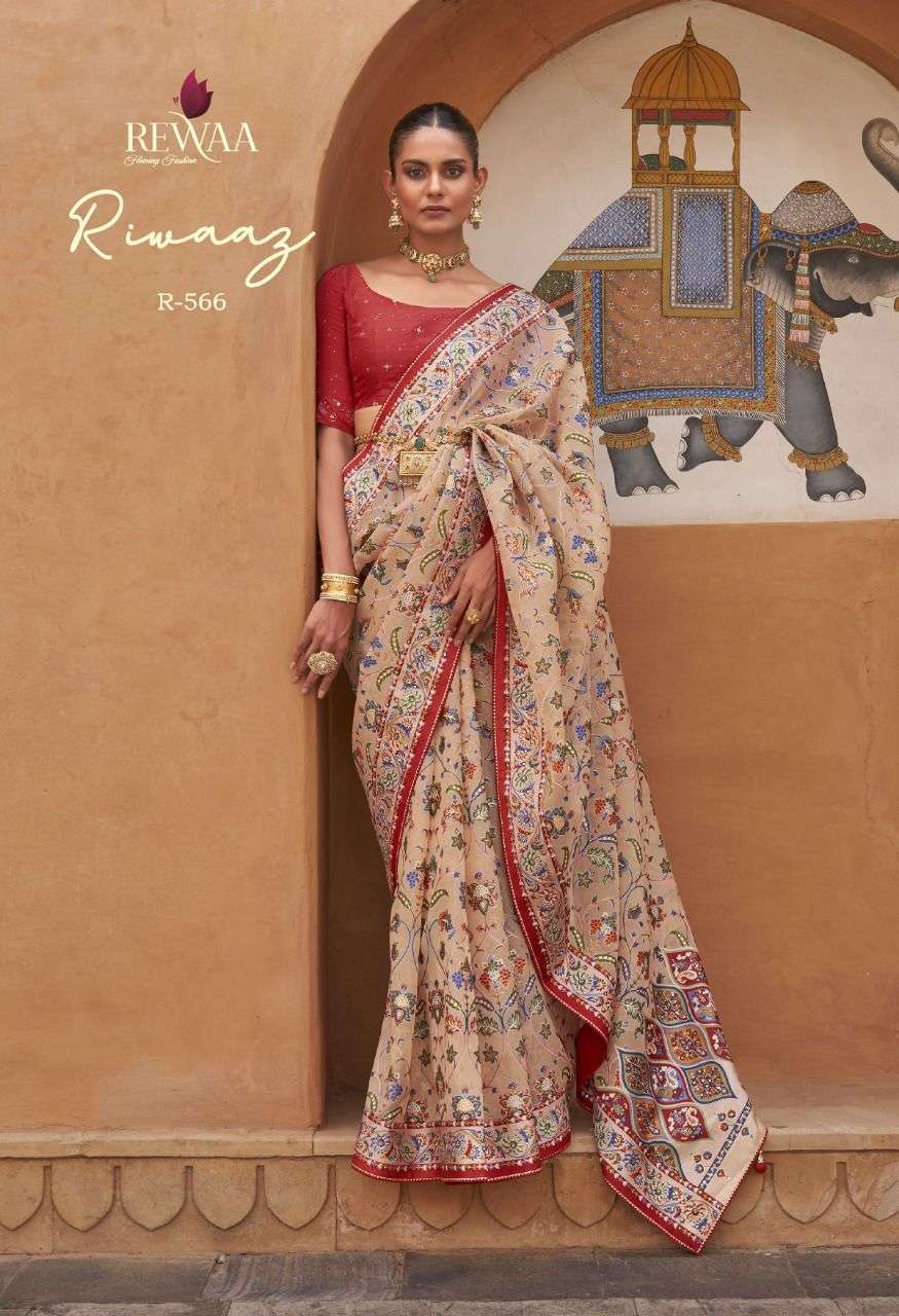 BRAND : REWAA CATLOG : RIWAAZ FABRIC : PURE BARASOO WITH HAND WORK BLOUSE - SMOOTH SILK HAND WORK PRICE :-2655/- +5% GST EXTRA |