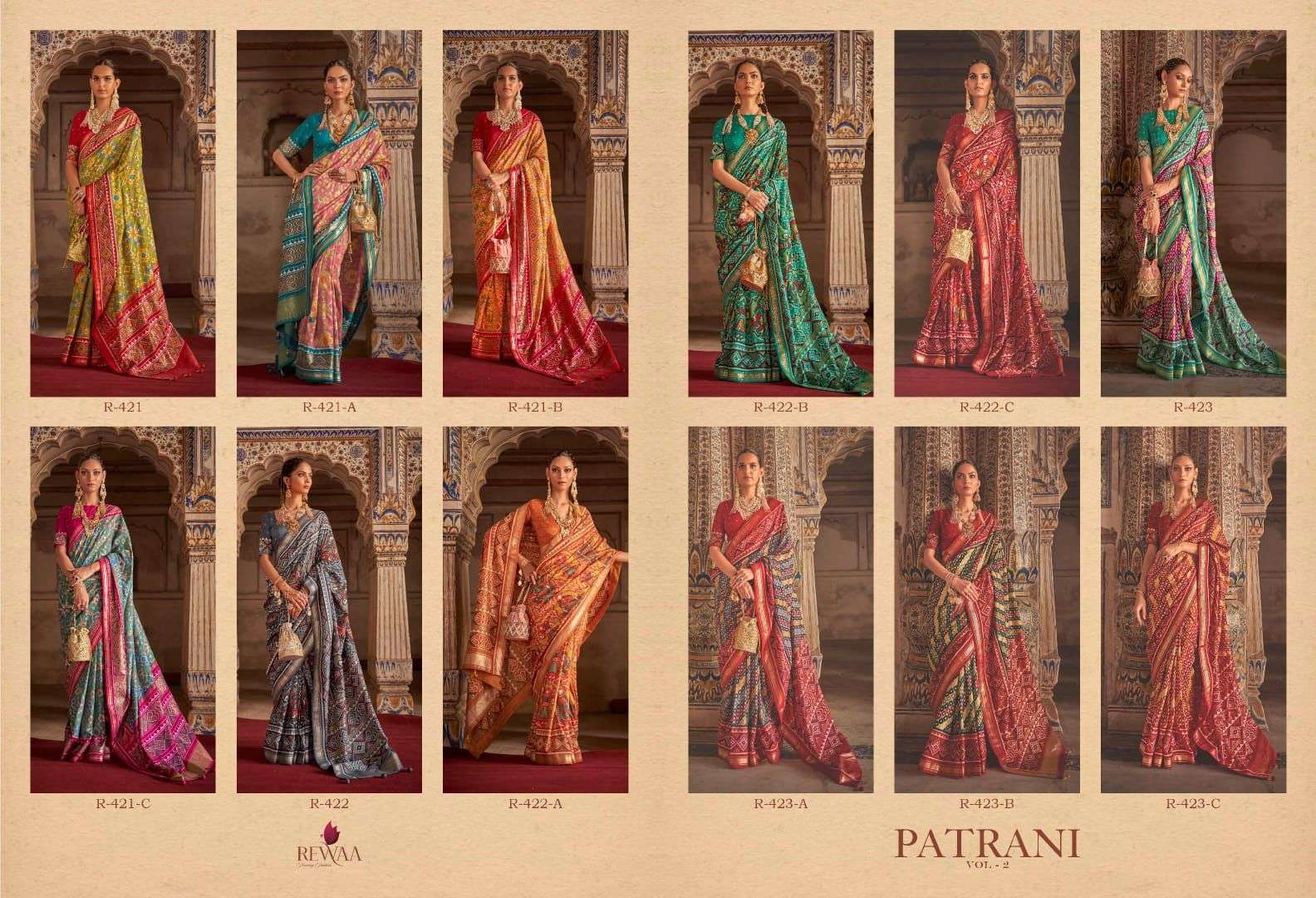 rewaa sarees wholesaler in surat patrani vol 2 421-423 series dola silk sarees