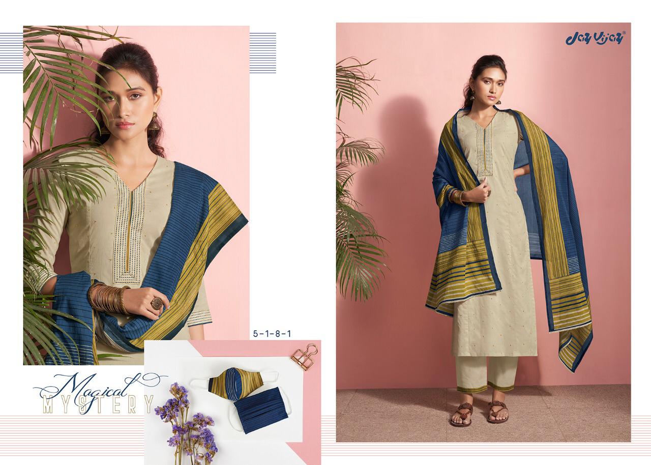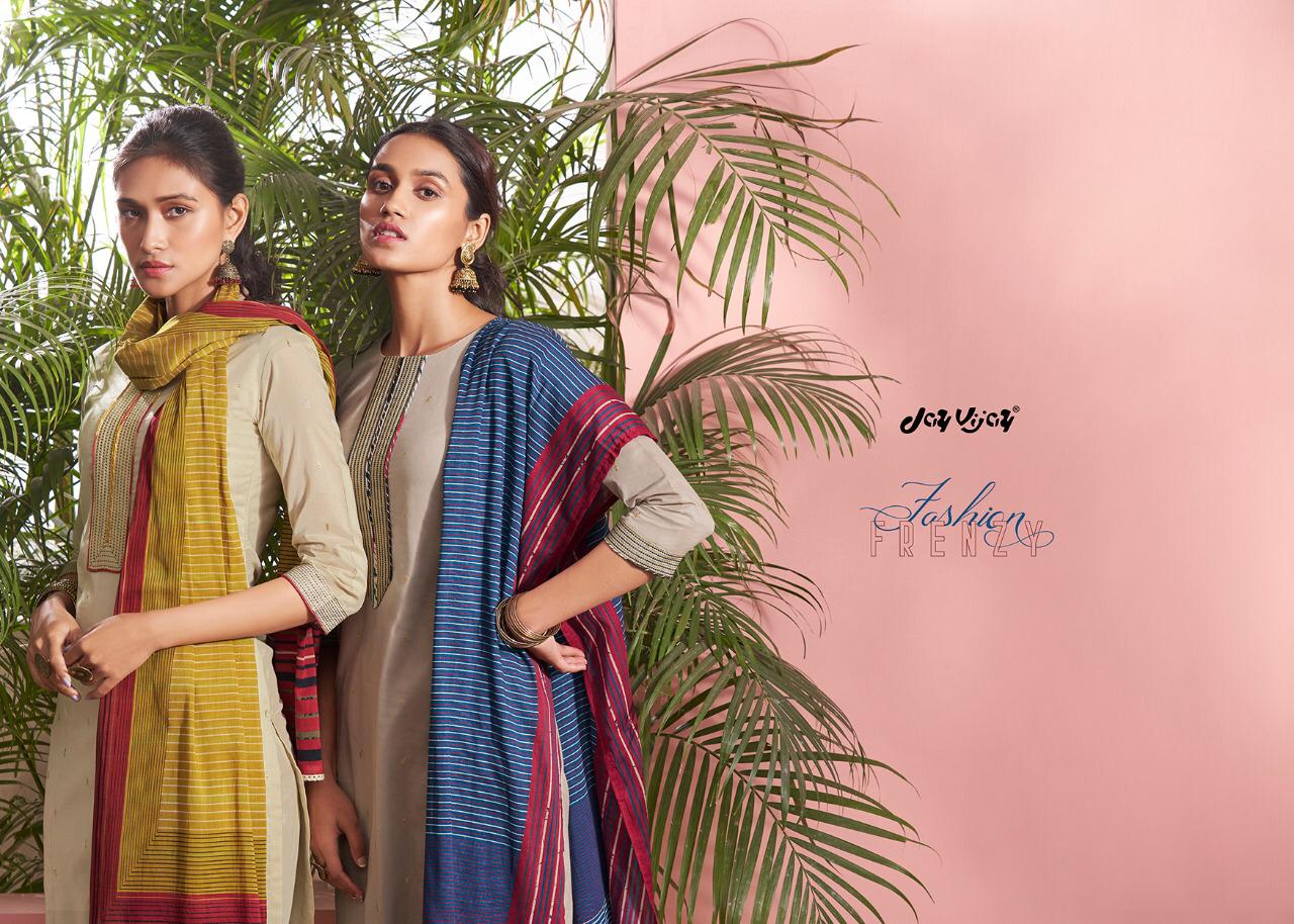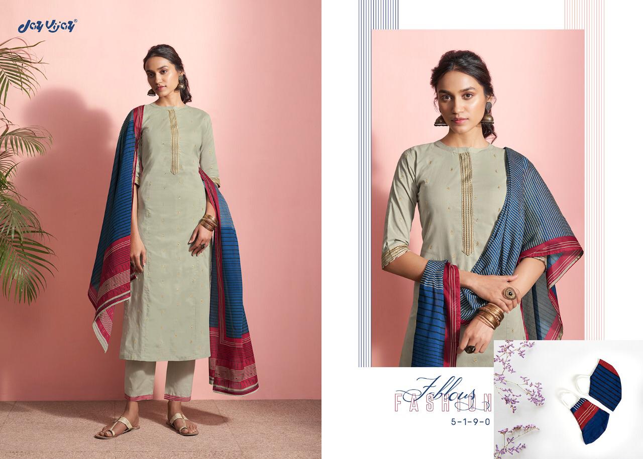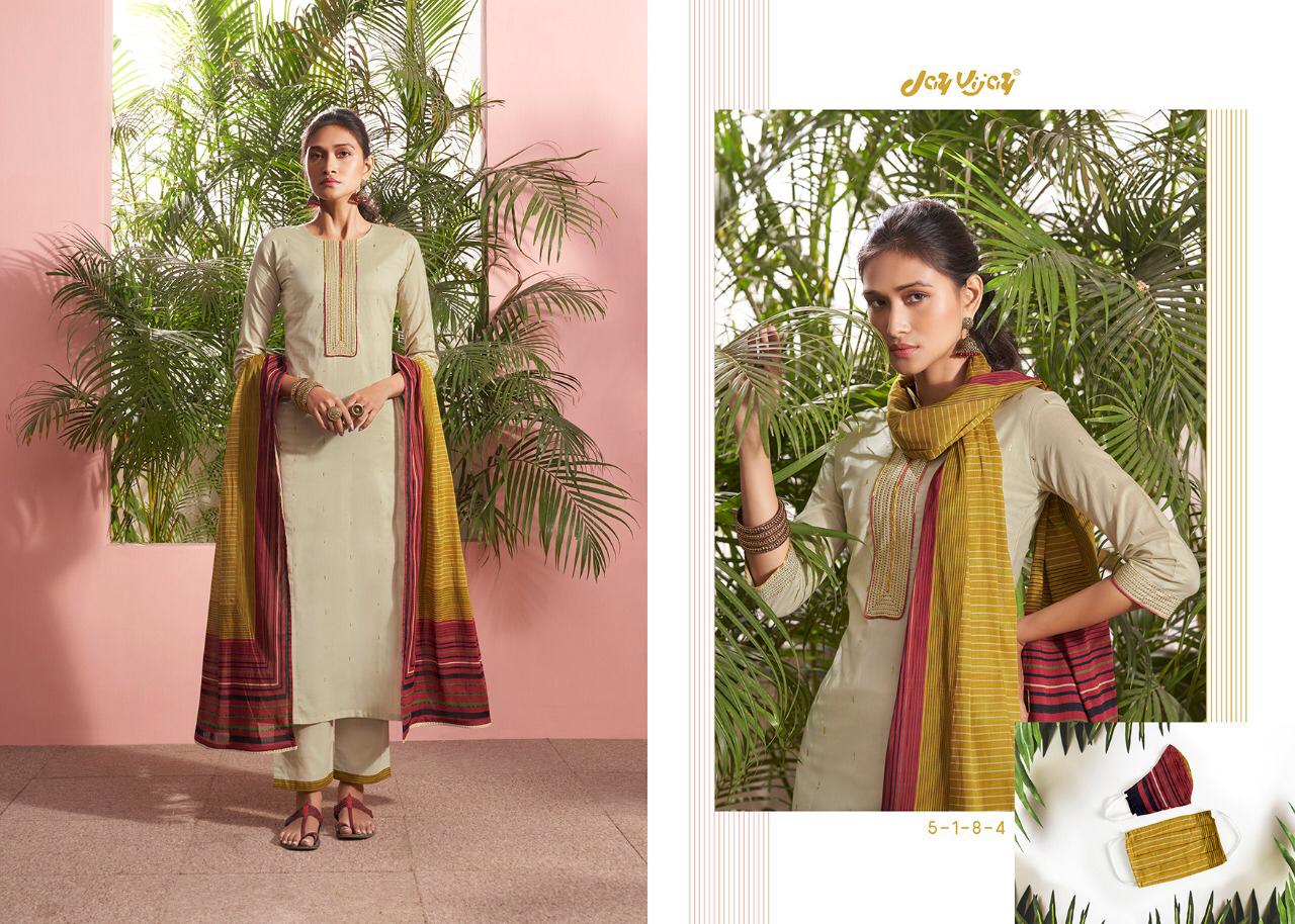 REYNA-a GANGA product Presents its latest catalogue PANACHE Top- cotton cambric print with embroidered neck. Bottom- cotton cambric print. Dupatta- solid bemberg chiffon with 4 side printed border RATE - ASK 5% GST Only set to set. |
